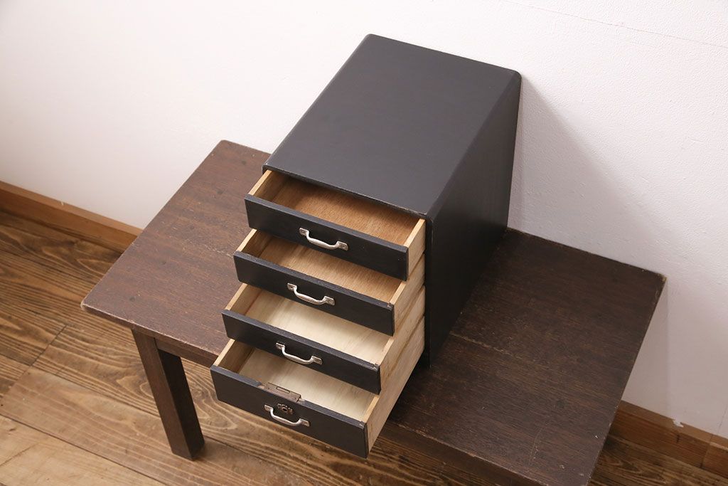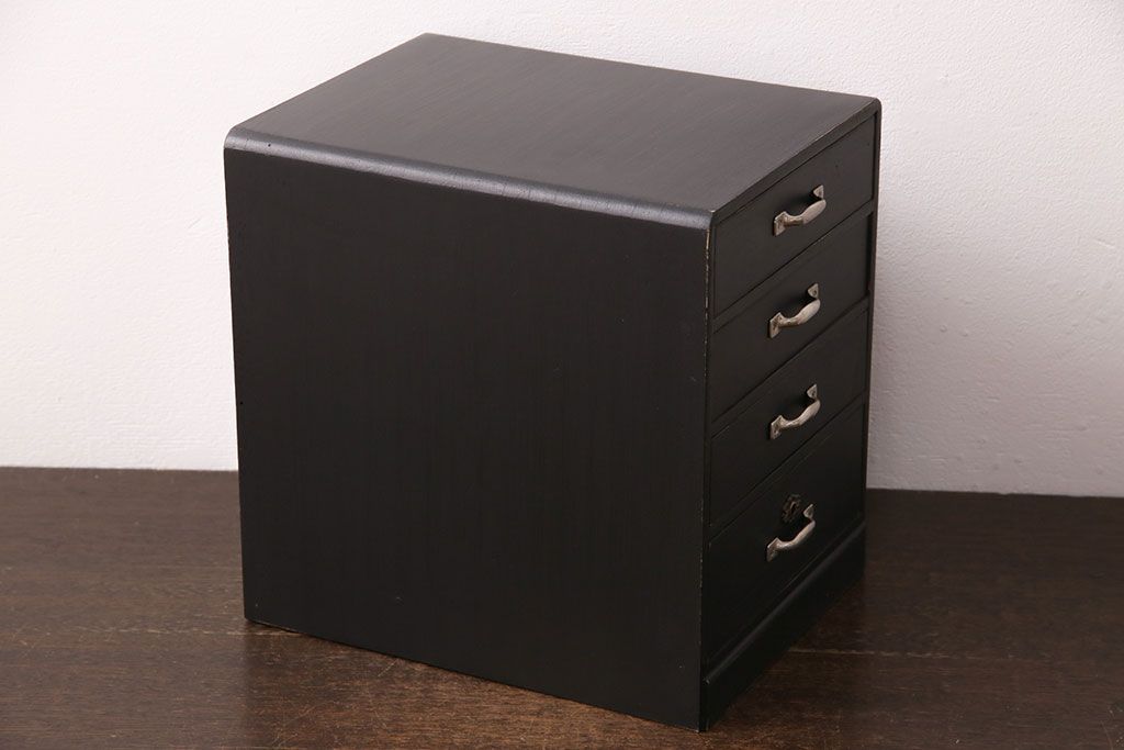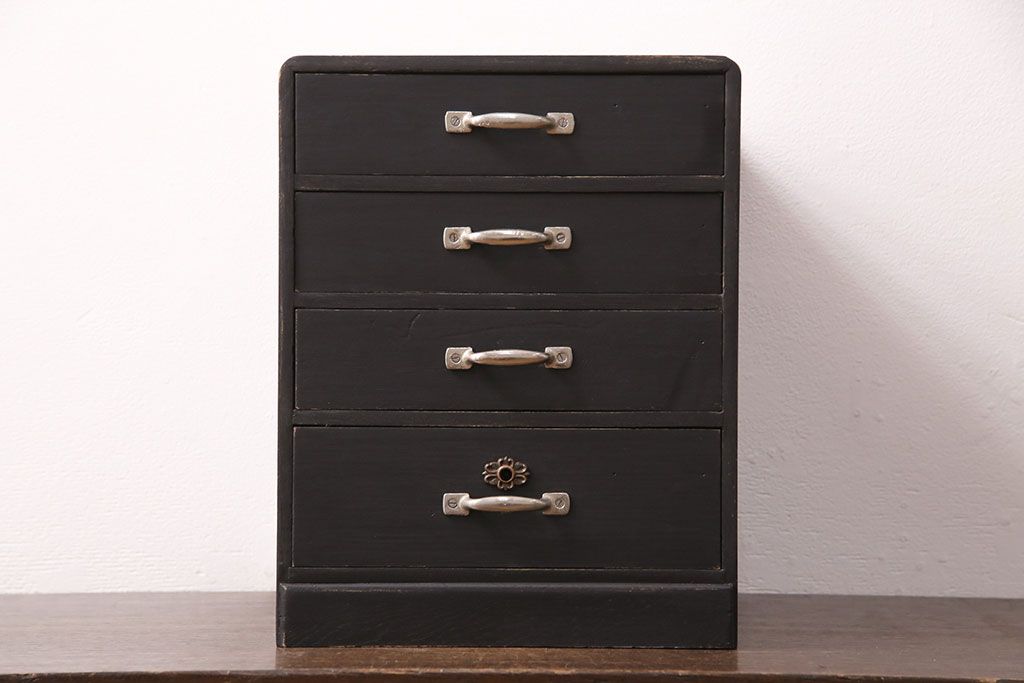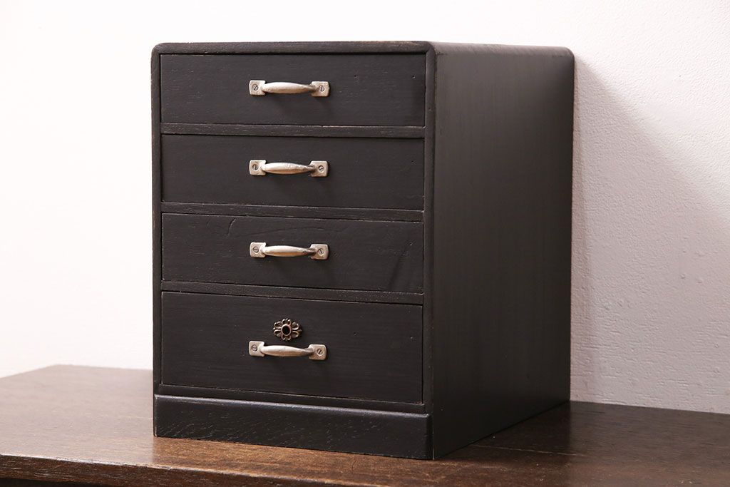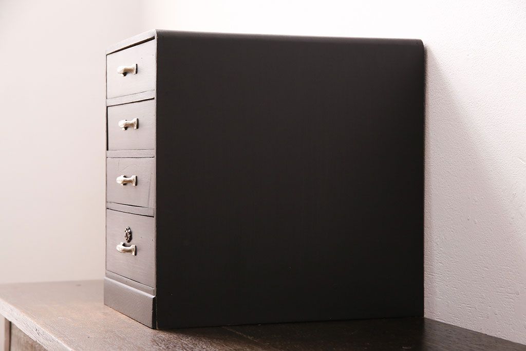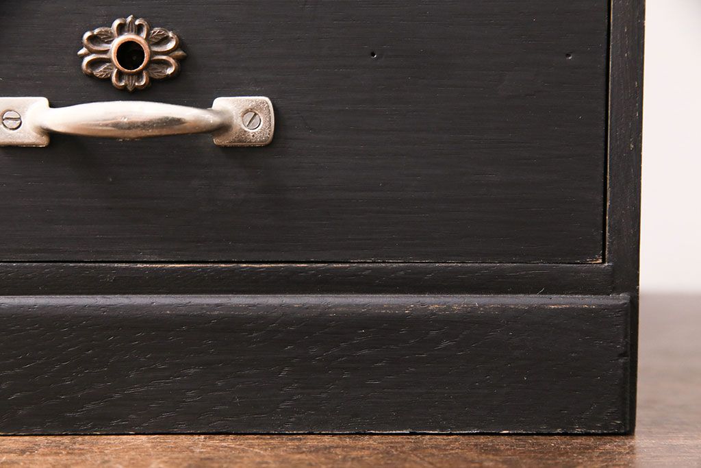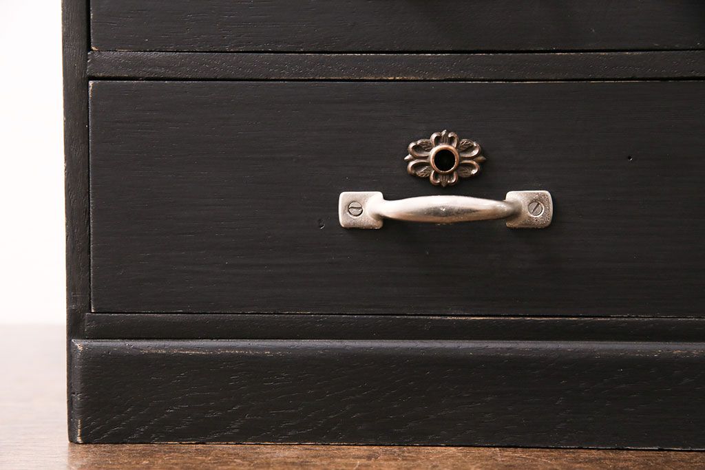 和製アンティーク 品の良さを感じさせる、マットブラックペイントの小引き出し(小物収納、卓上収納)(R-049085)