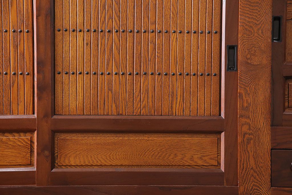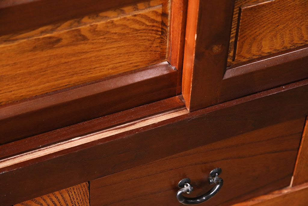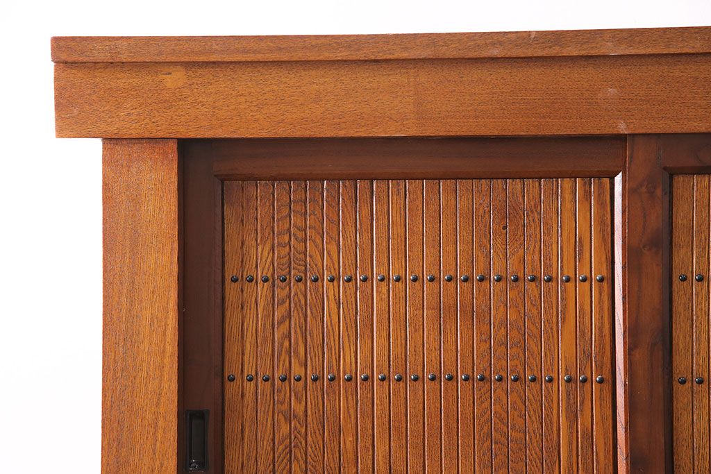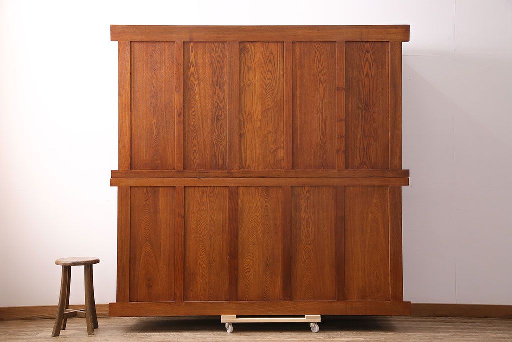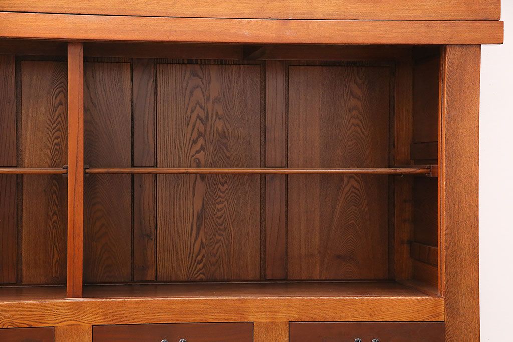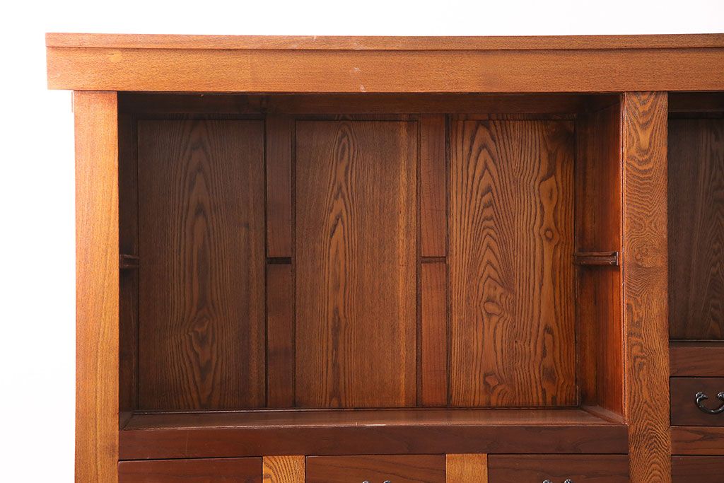 ラフジュ工房> 民芸家具 > 中古 民芸家具 総ニレ無垢材 凛とした佇まいが魅力的な水屋箪笥(重ね箪笥、収納棚、戸棚)(R-048815)