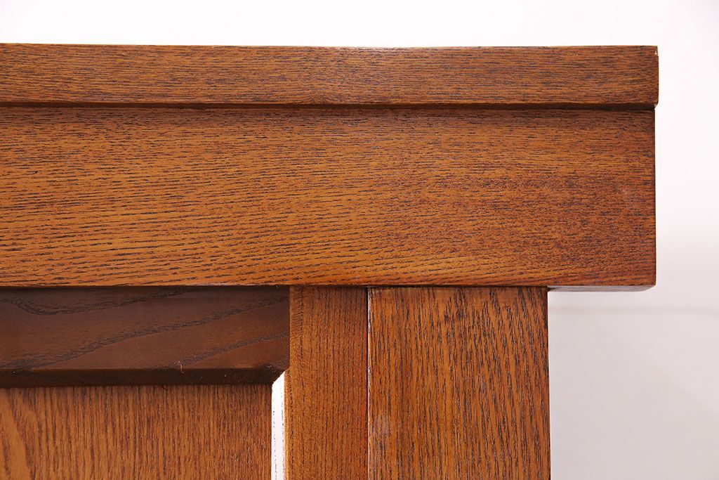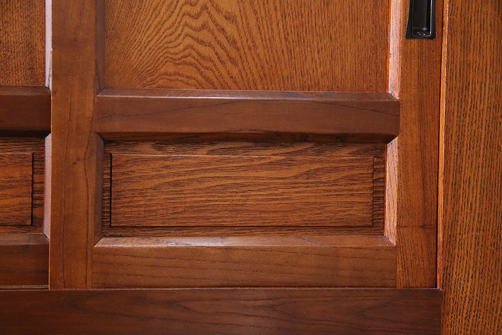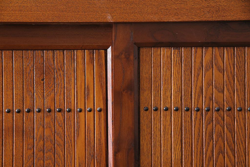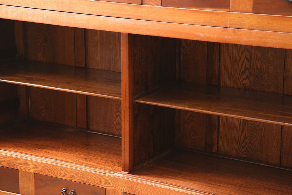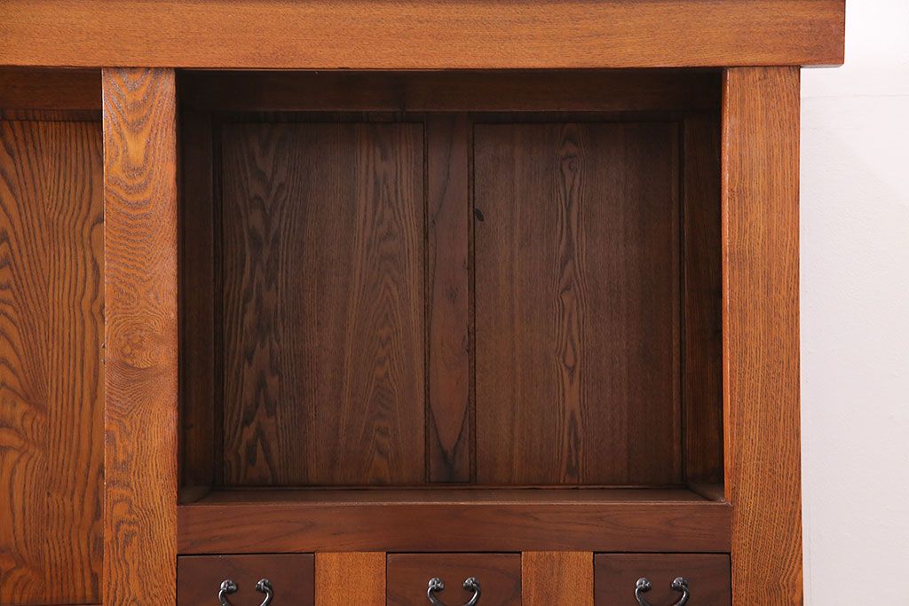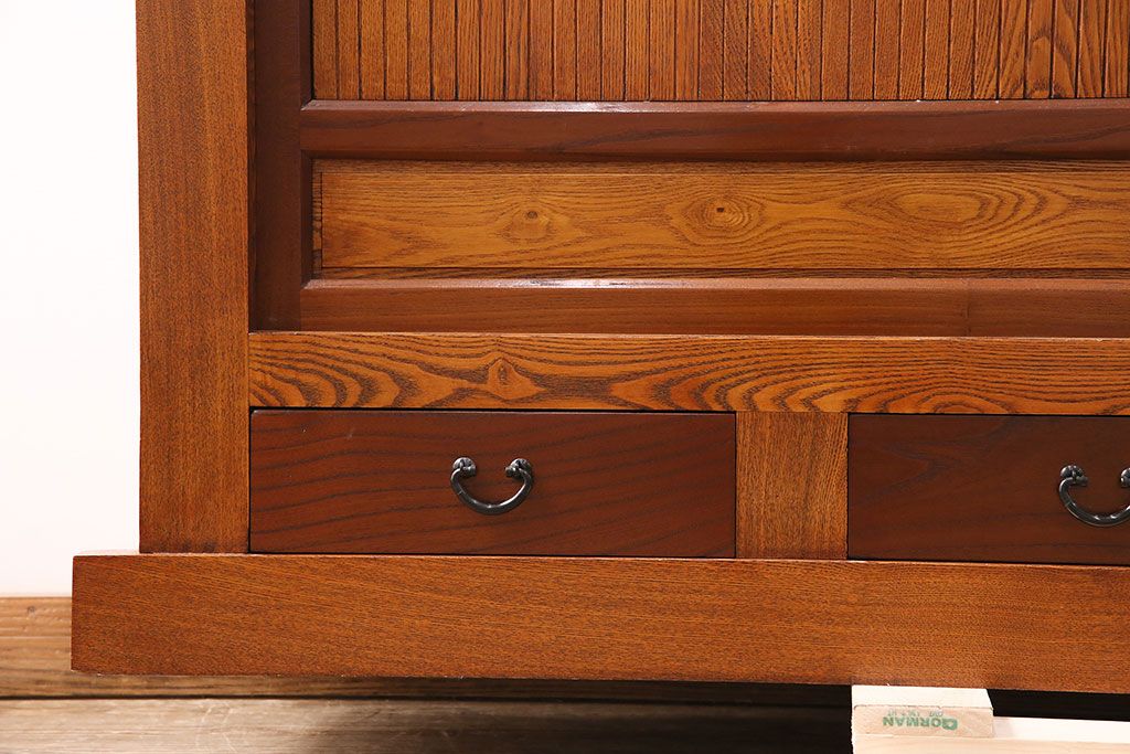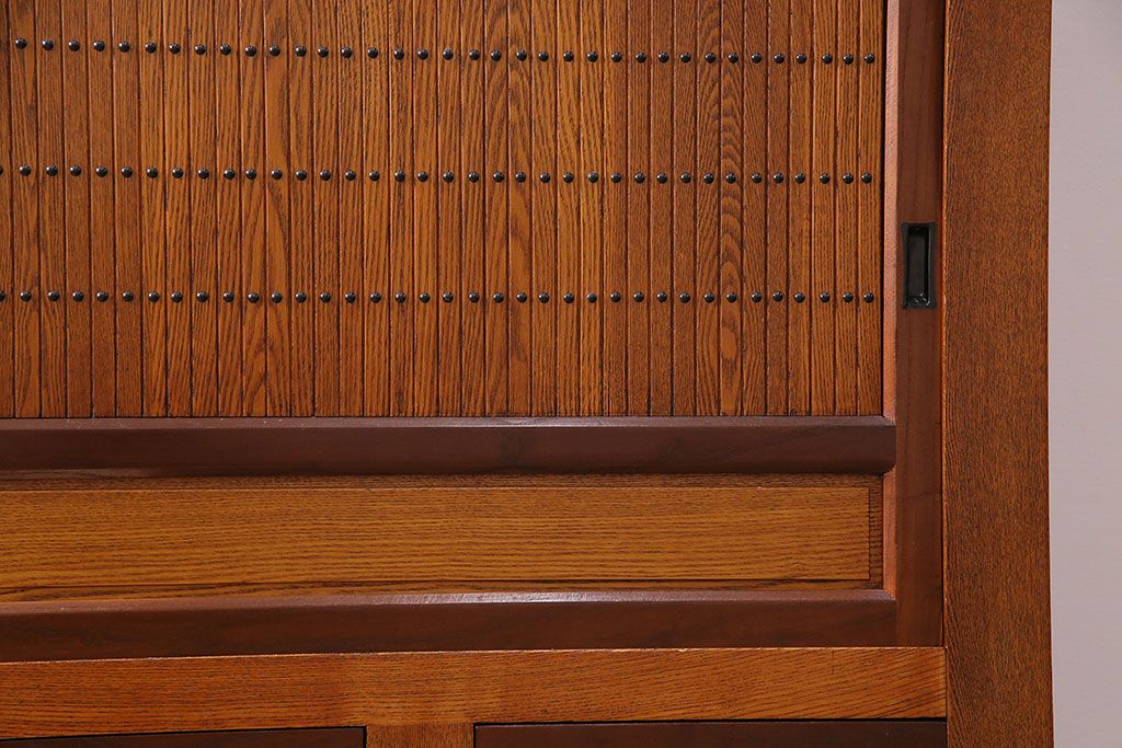 ラフジュ工房> 民芸家具 > 中古 民芸家具 総ニレ無垢材 凛とした佇まいが魅力的な水屋箪笥(重ね箪笥、収納棚、戸棚)(R-048815)