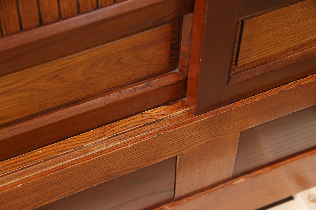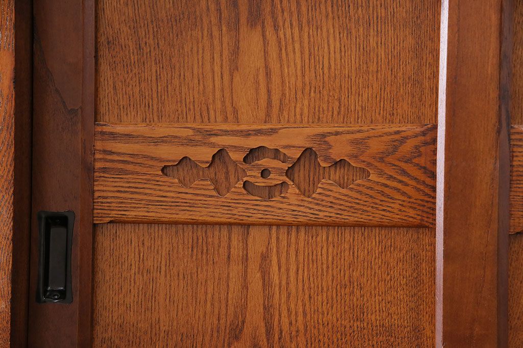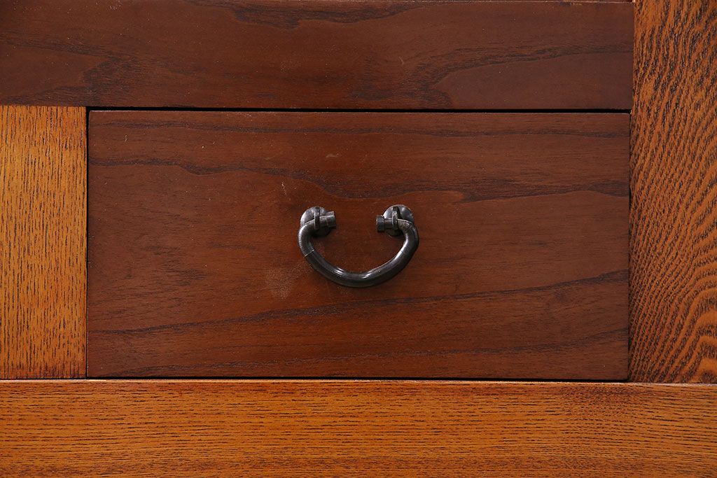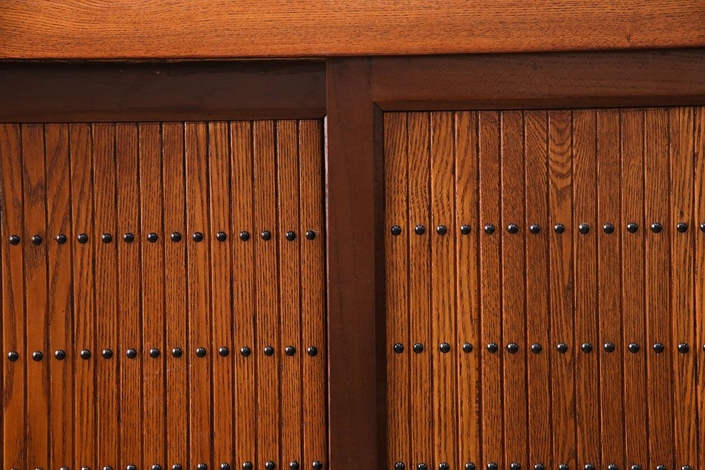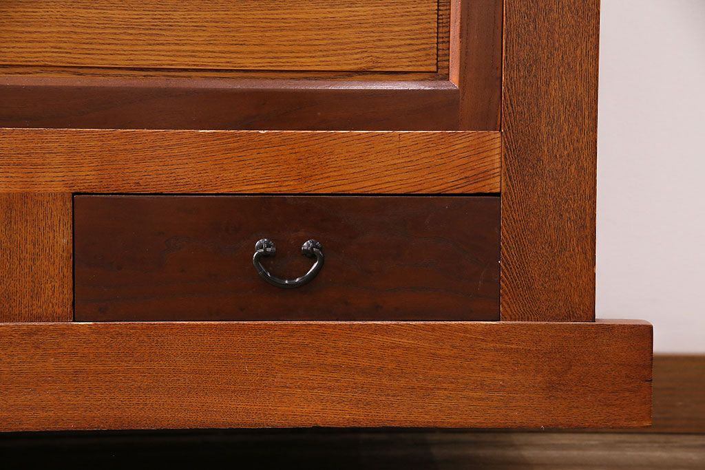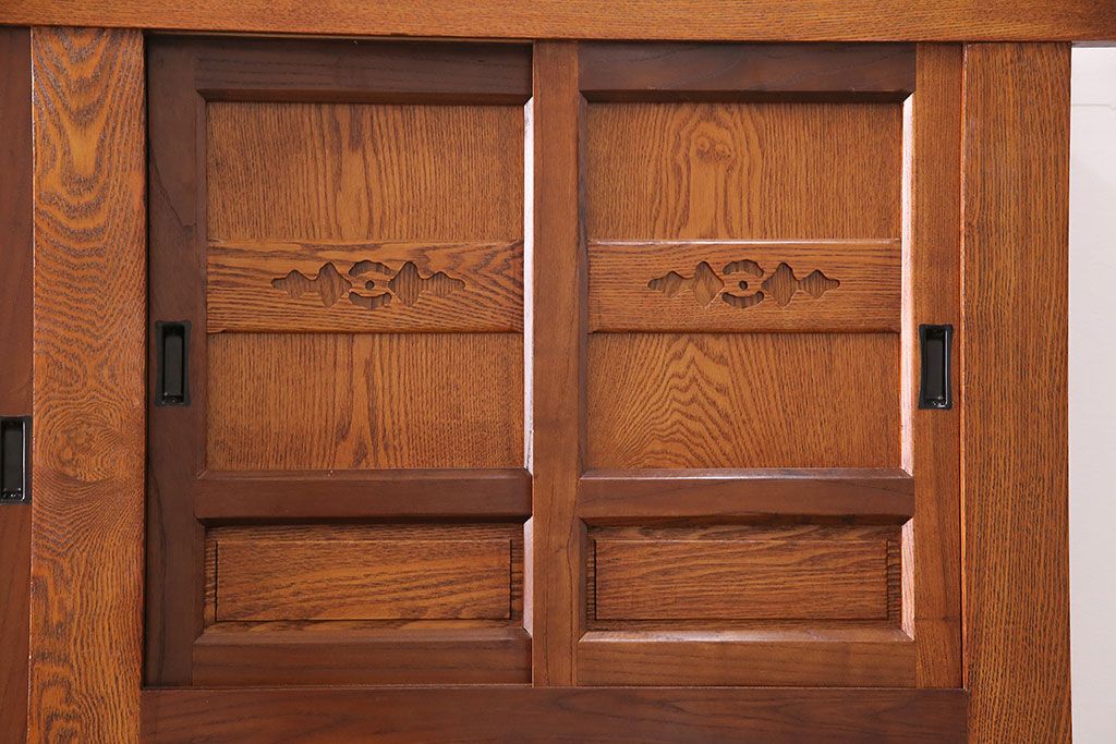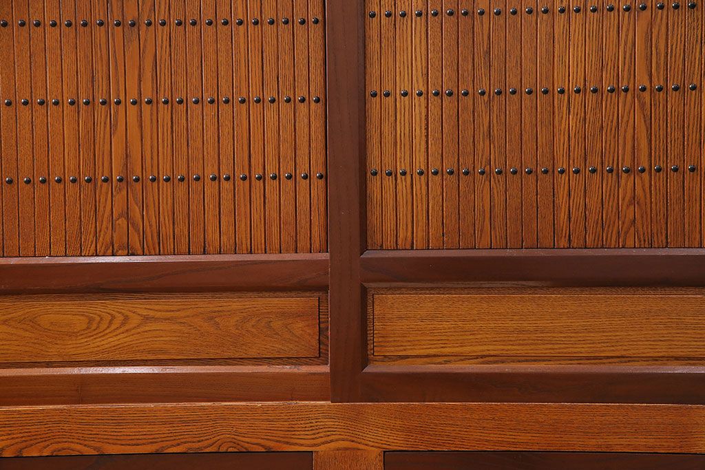 ラフジュ工房> 民芸家具 > 中古 民芸家具 総ニレ無垢材 凛とした佇まいが魅力的な水屋箪笥(重ね箪笥、収納棚、戸棚)(R-048815)
