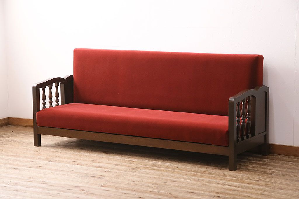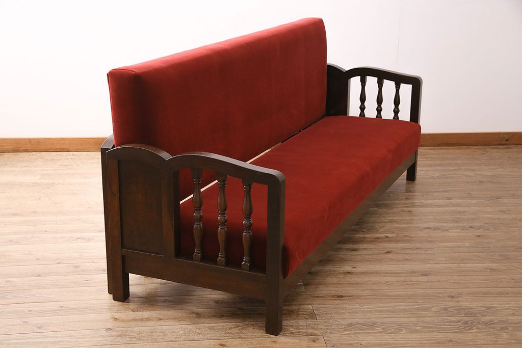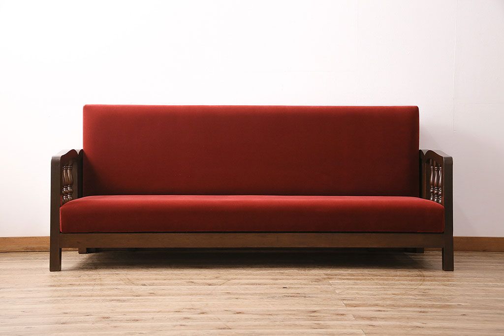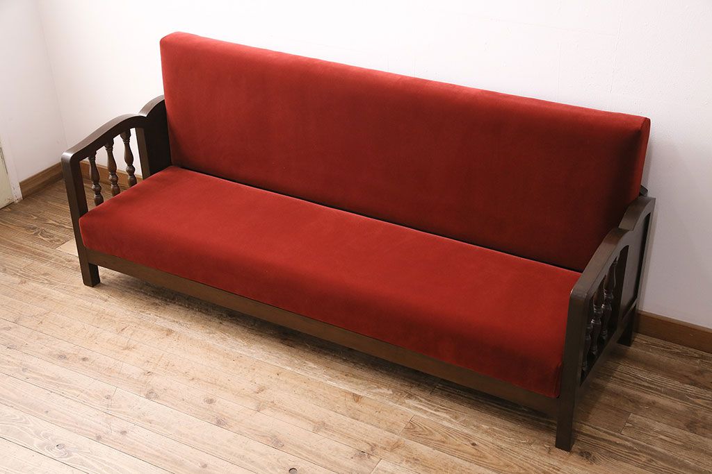 セミオーダー家具実績 > アンティークのソファベッドをリペア&カスタム!座面内部のスプリングを取り外し、ウレタンに交換。指定の生地に張り替え。(3人掛けソファ、トリプルソファ)