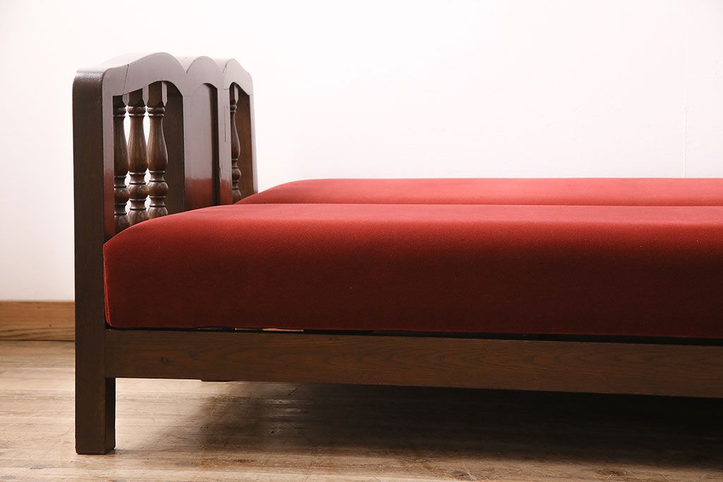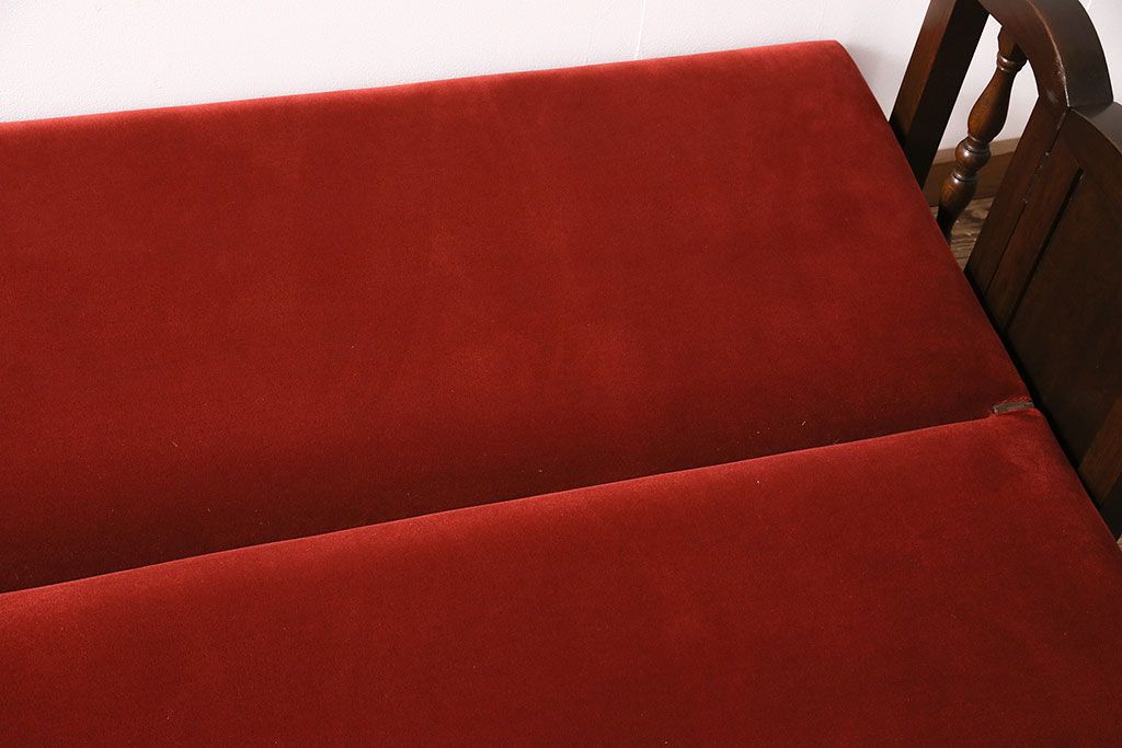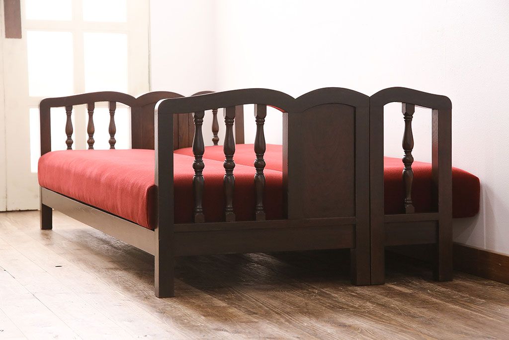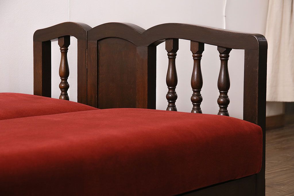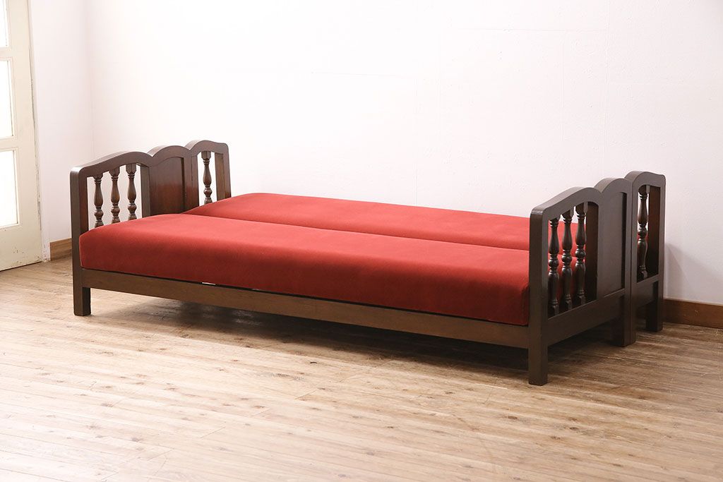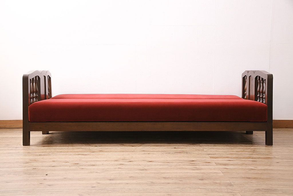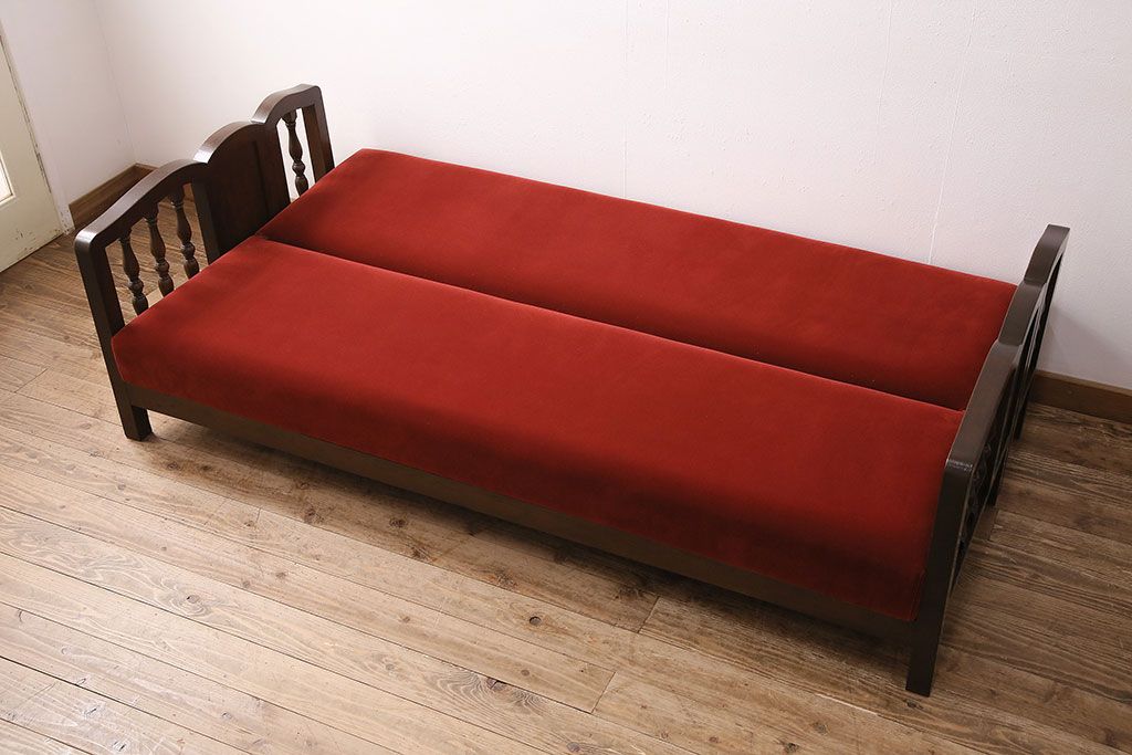 ベッド > アンティークのソファベッドをリペア&カスタム!座面内部のスプリングを取り外し、ウレタンに交換。指定の生地に張り替え。(3人掛けソファ、トリプルソファ)