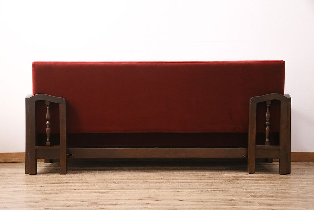 ソファ> ソファベッド > アンティークのソファベッドをリペア&カスタム!座面内部のスプリングを取り外し、ウレタンに交換。指定の生地に張り替え。(3人掛けソファ、トリプルソファ)