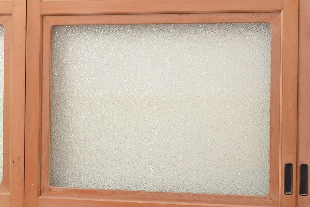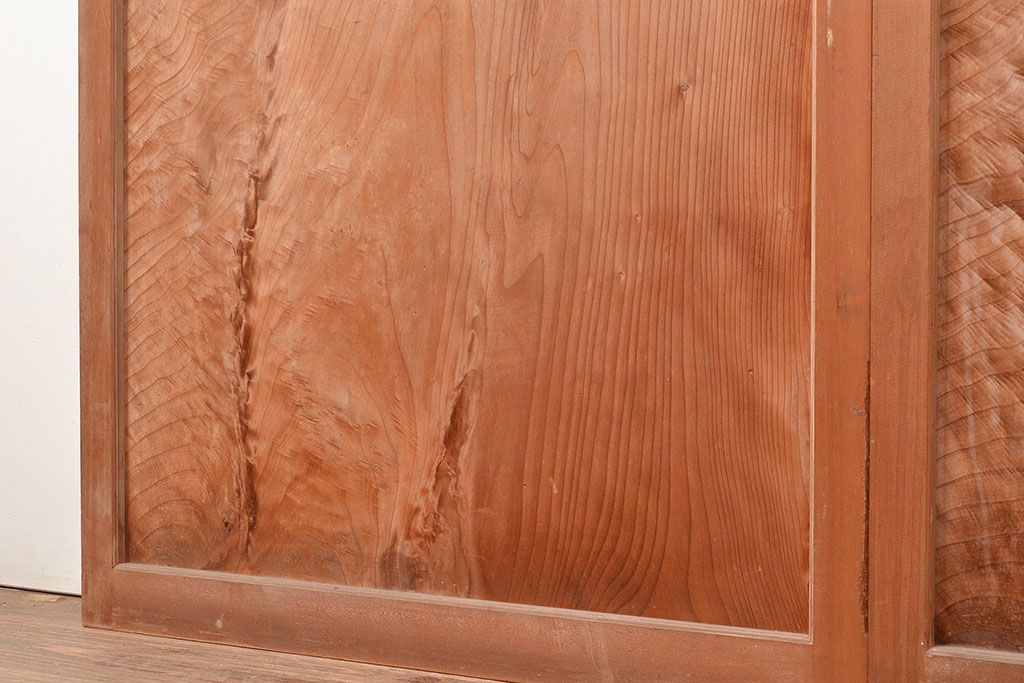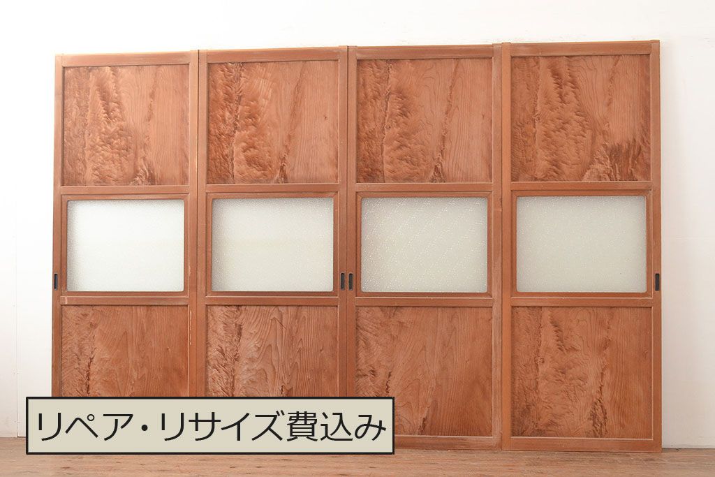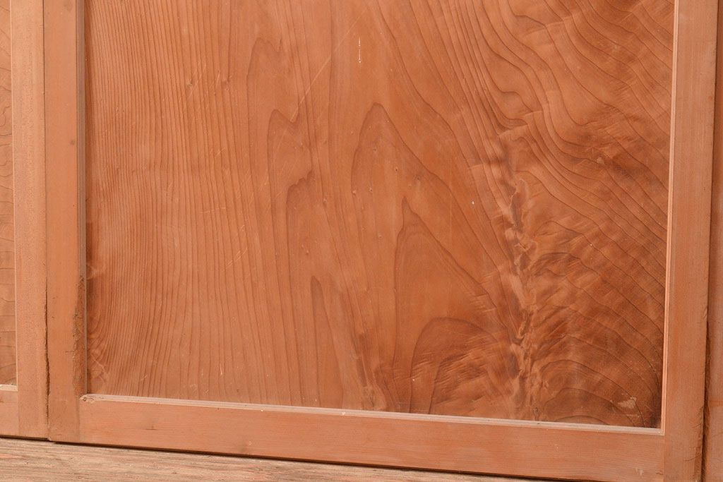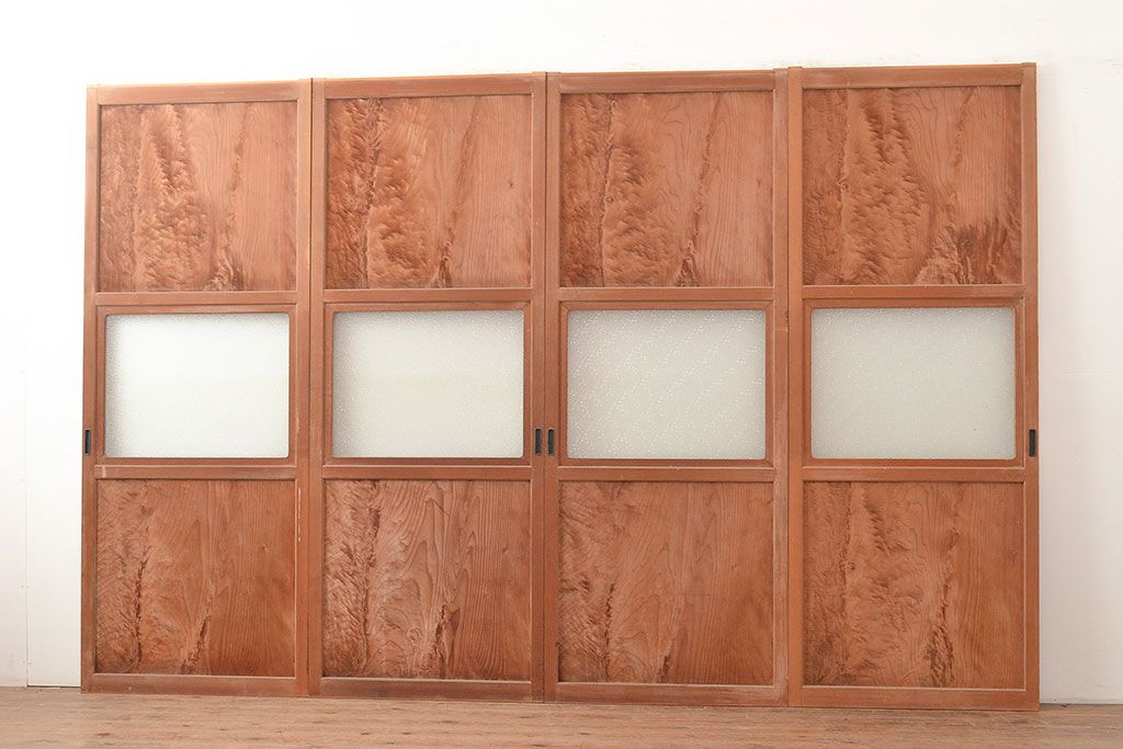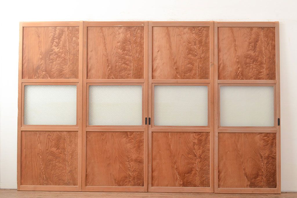 和製アンティーク 高級品 存在感のある木目が魅力!杉材一枚板を贅沢に使用した、ダイヤガラス入りの引き戸4枚セット(建具)(R-048396)