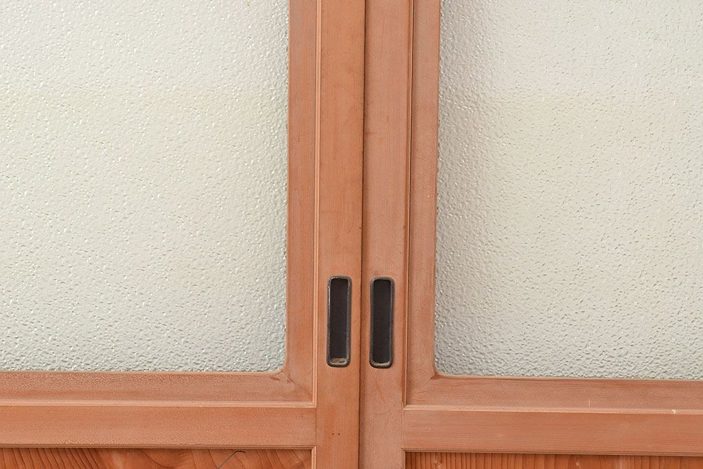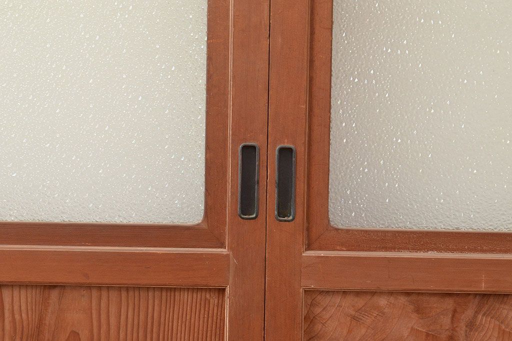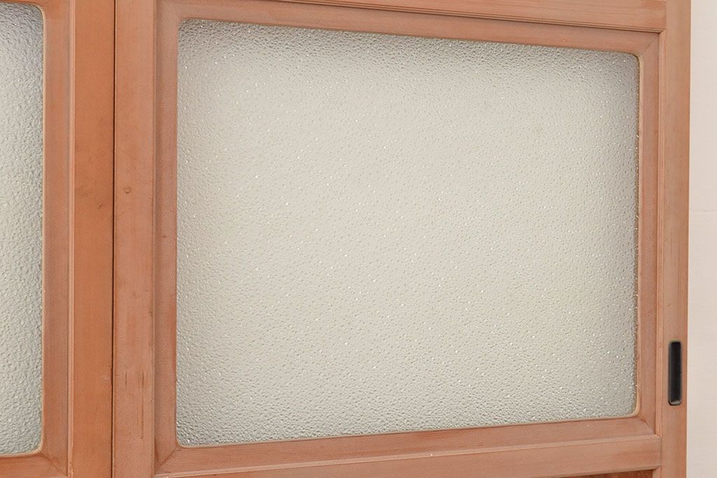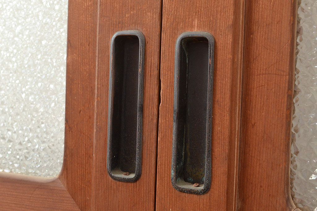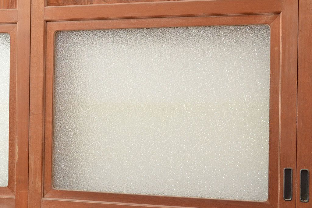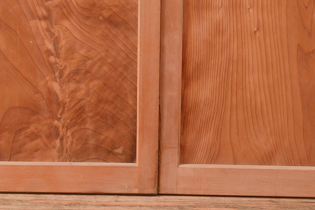 和製アンティーク 高級品 存在感のある木目が魅力!杉材一枚板を贅沢に使用した、ダイヤガラス入りの引き戸4枚セット(建具)(R-048396)