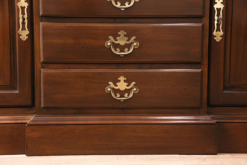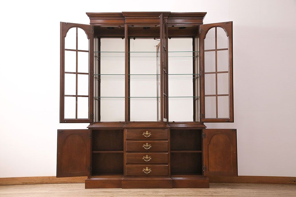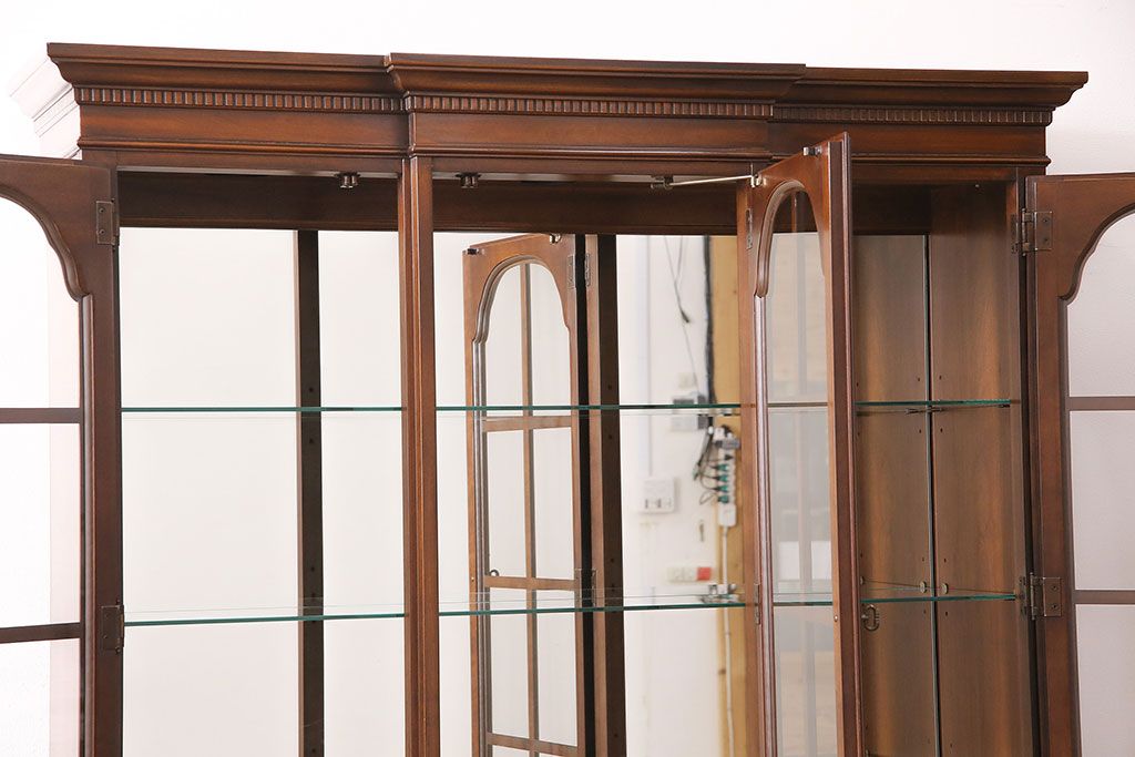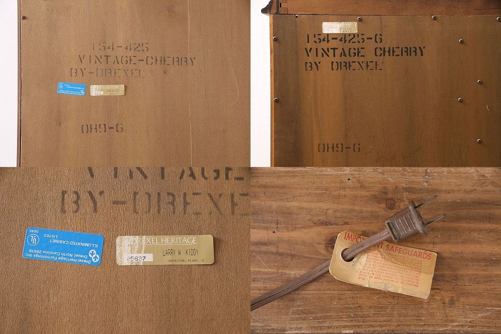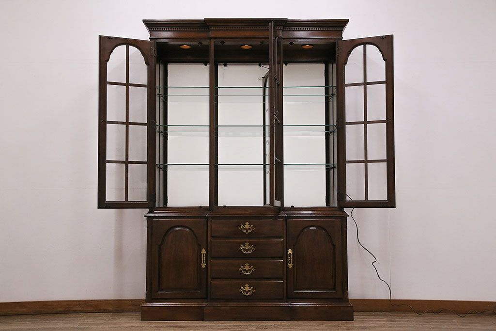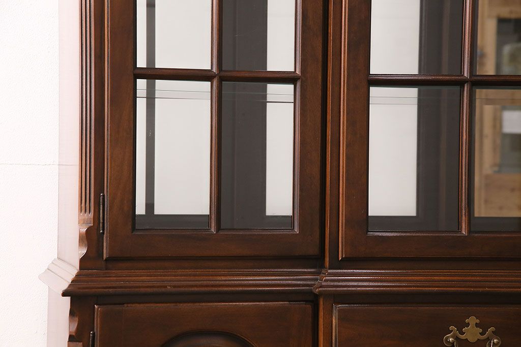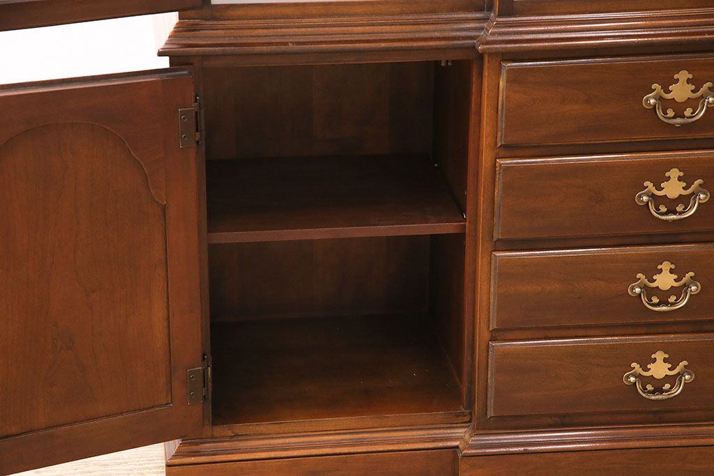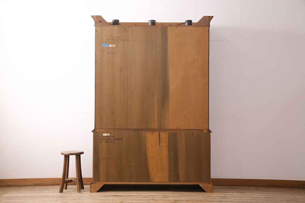 キャビネット・戸棚> 食器棚・カップボード > ドレクセルヘリテイジの照明付きキャビネットをリペア&カスタム!ガラス棚板を新たに製作し、入れ替え。現状に近しい色味に着色し仕上げ。(食器棚、収納棚、カップボード)
