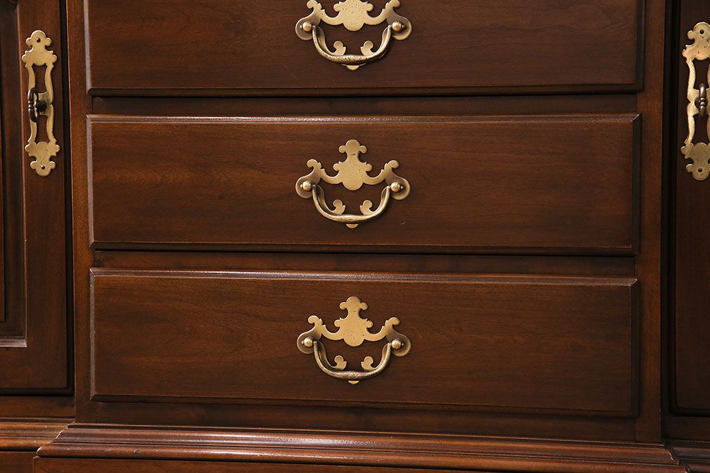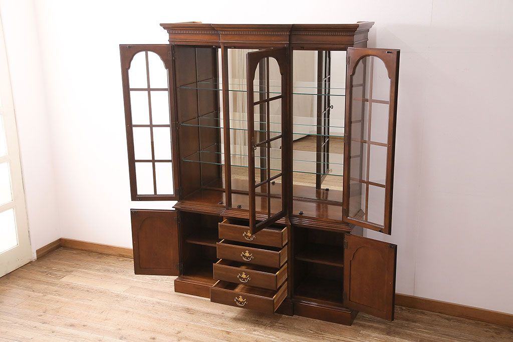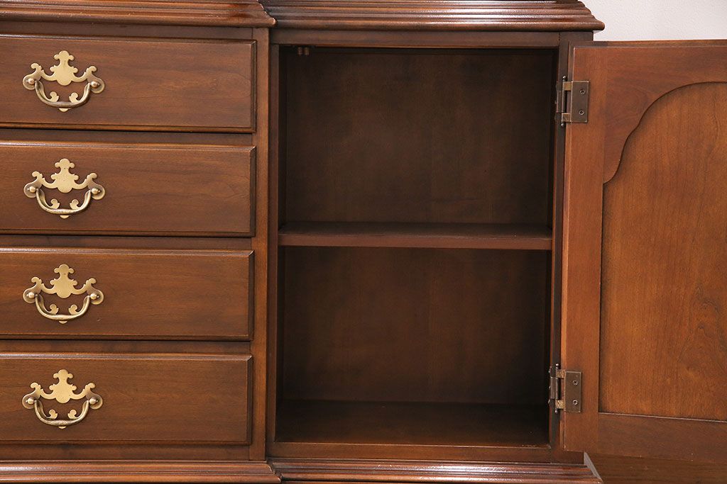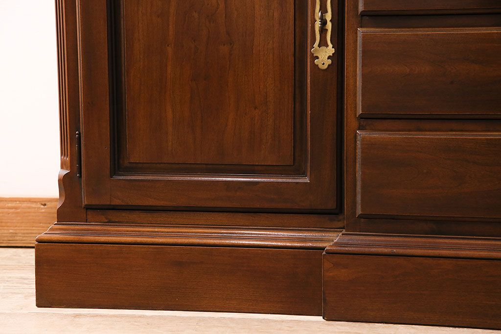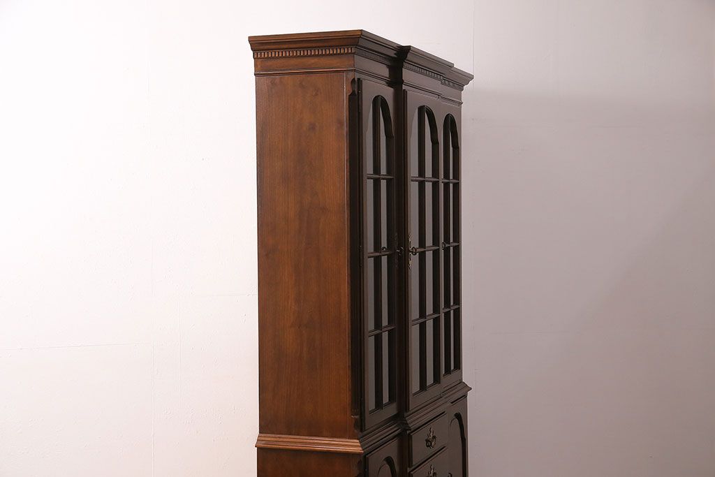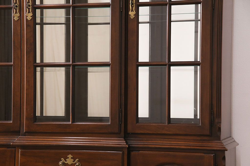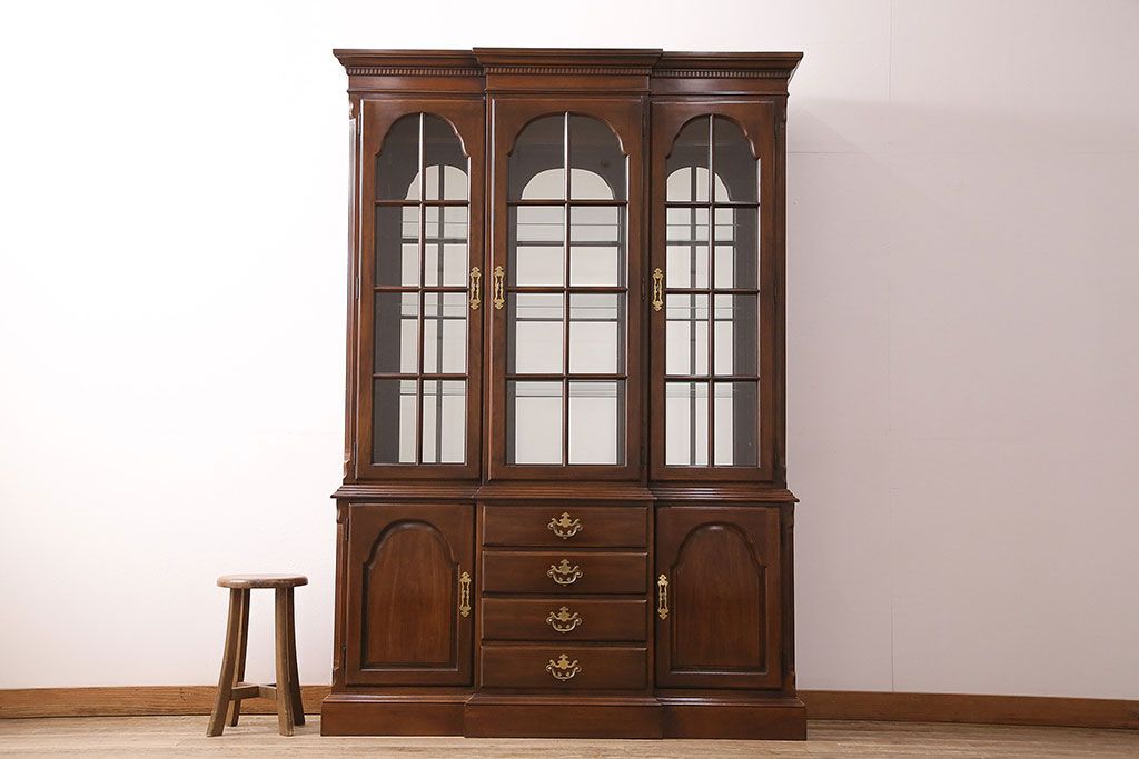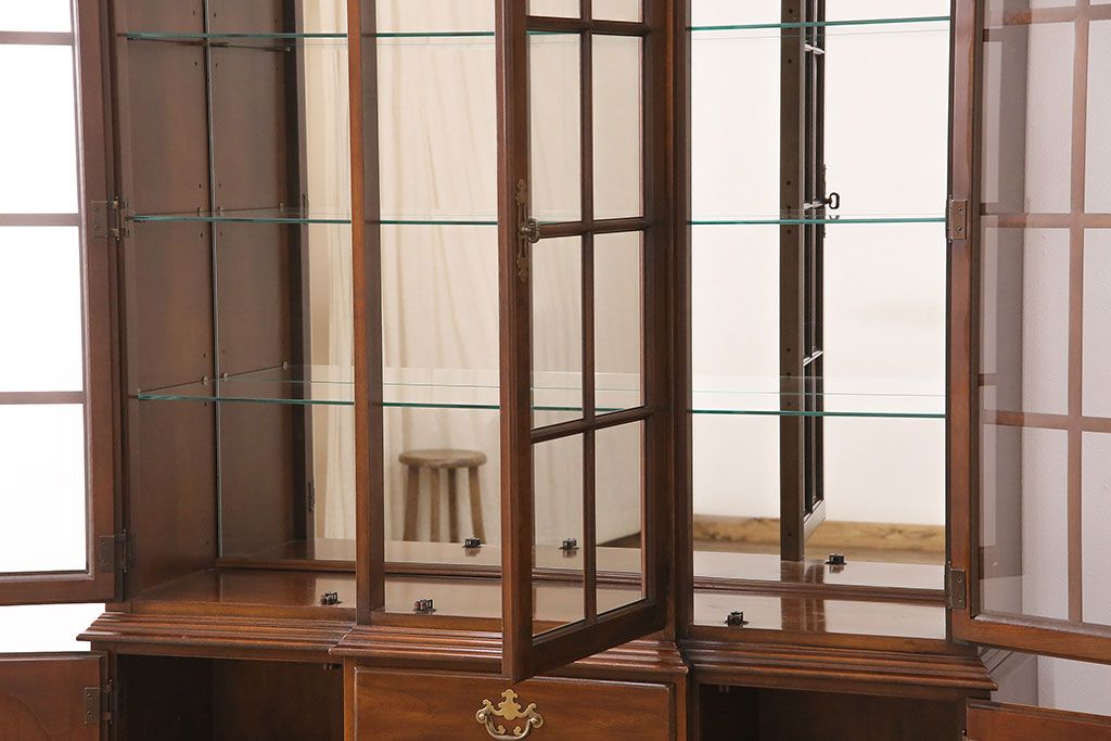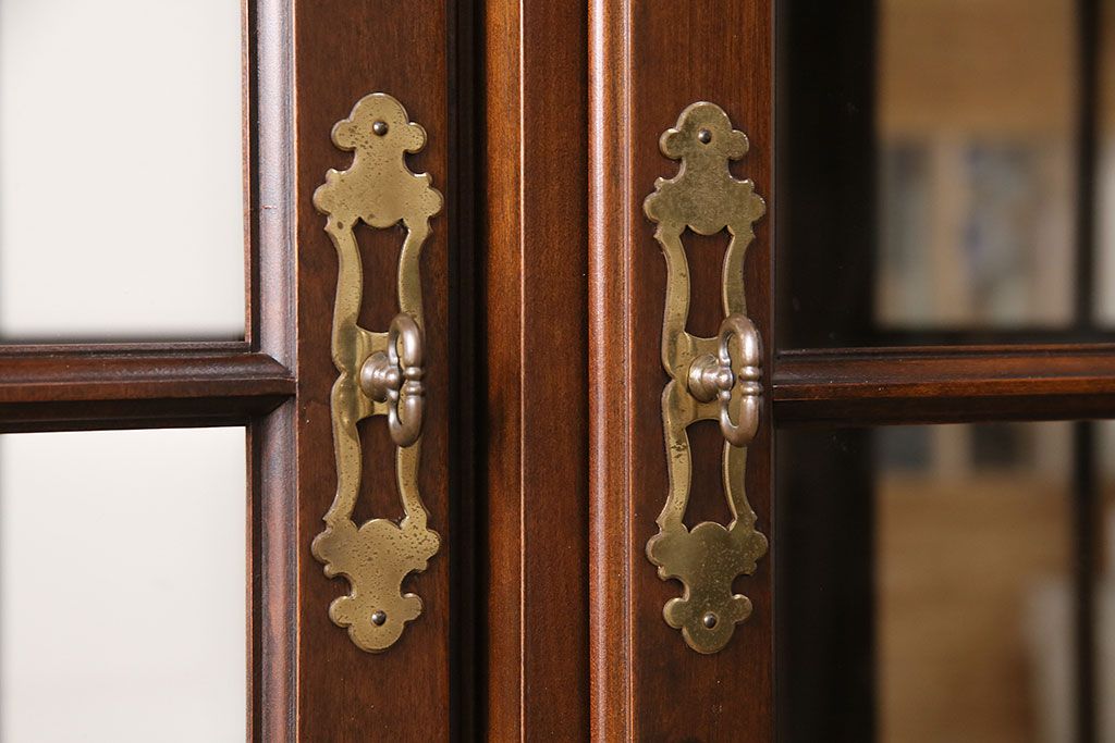 キャビネット・戸棚> 食器棚・カップボード > ドレクセルヘリテイジの照明付きキャビネットをリペア&カスタム!ガラス棚板を新たに製作し、入れ替え。現状に近しい色味に着色し仕上げ。(食器棚、収納棚、カップボード)