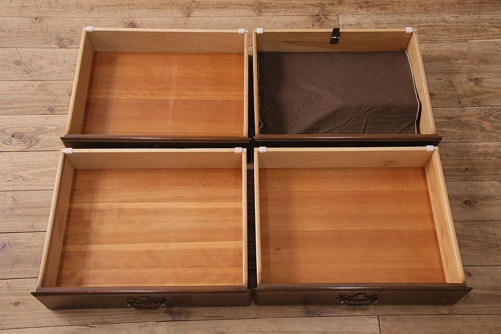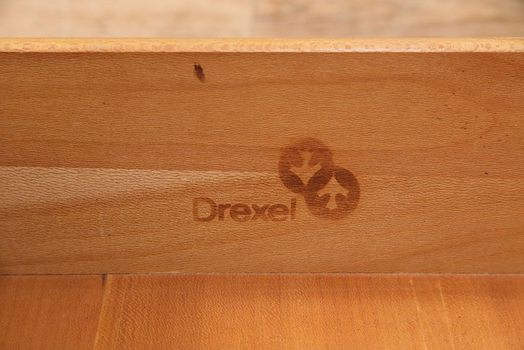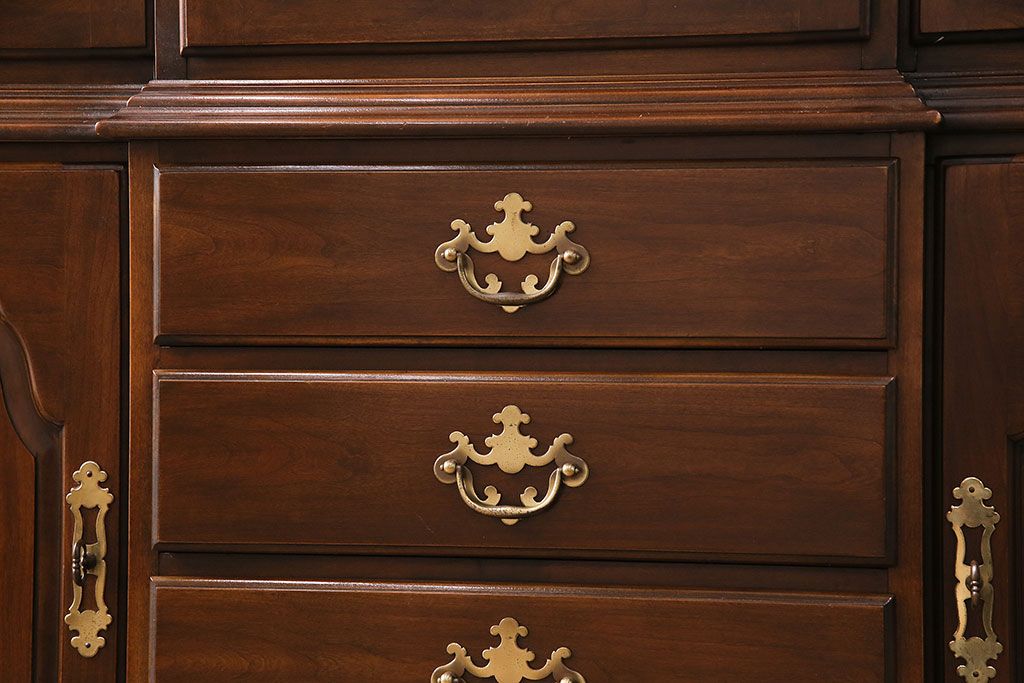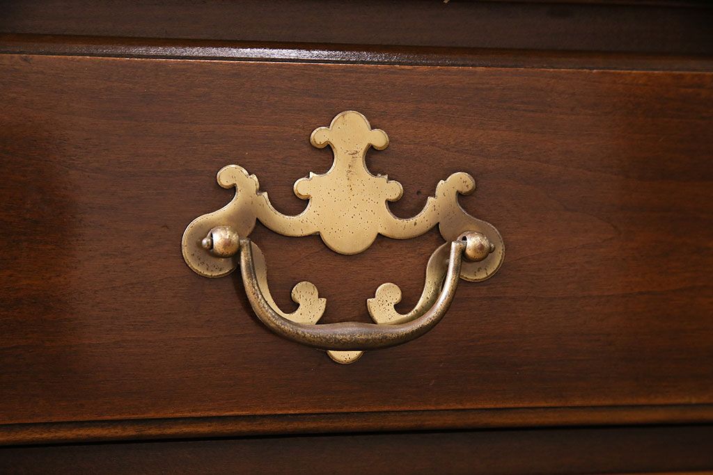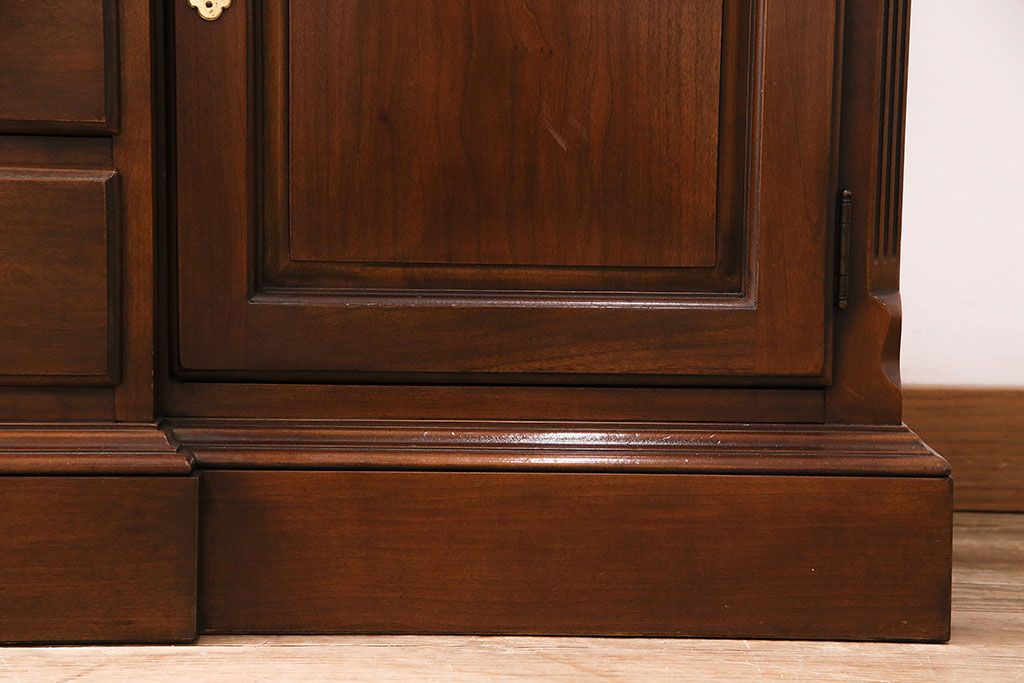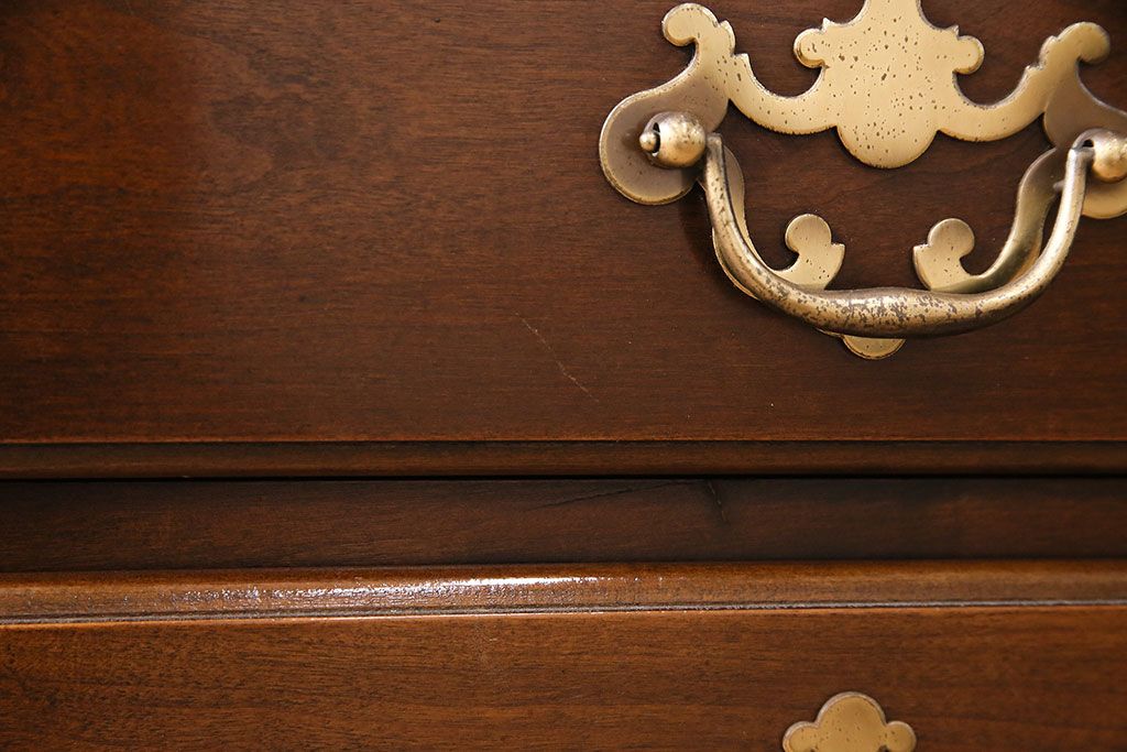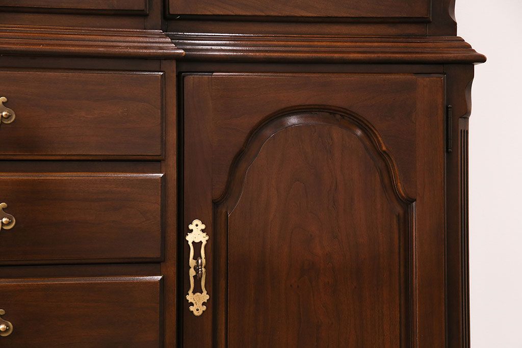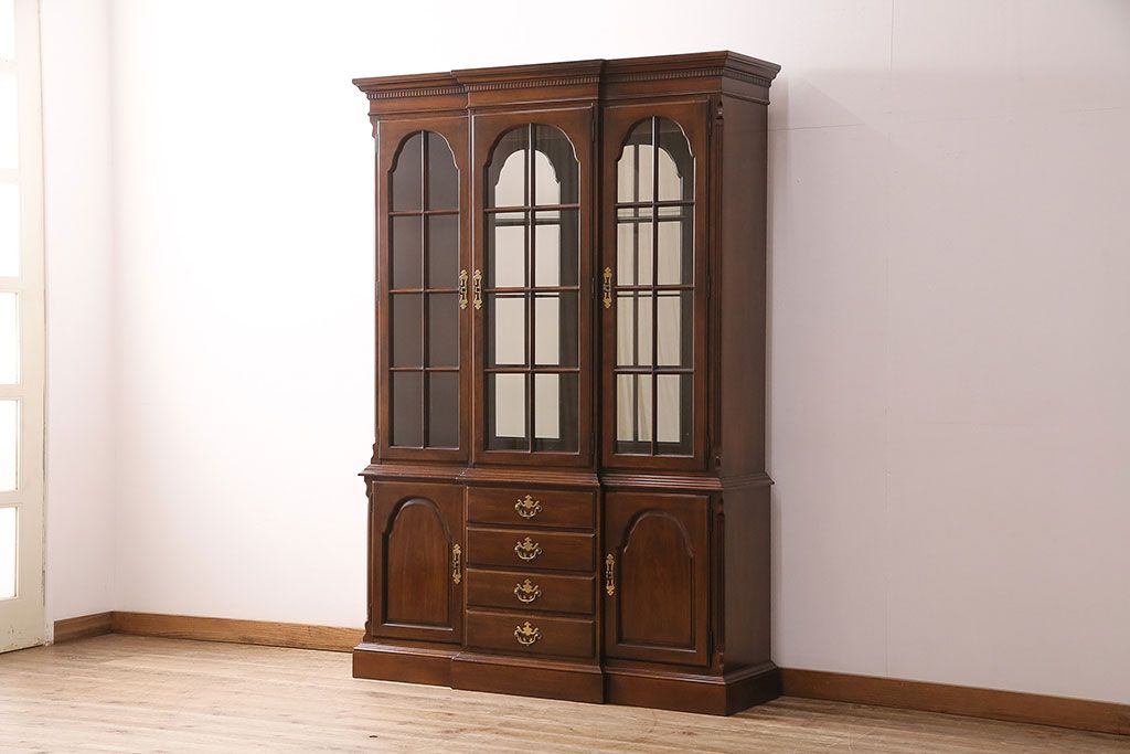 キャビネット・戸棚> 食器棚・カップボード > ドレクセルヘリテイジの照明付きキャビネットをリペア&カスタム!ガラス棚板を新たに製作し、入れ替え。現状に近しい色味に着色し仕上げ。(食器棚、収納棚、カップボード)