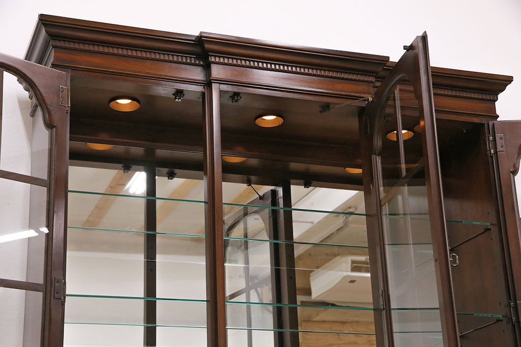 ドレクセルヘリテイジの照明付きキャビネットをリペア&カスタム!ガラス棚板を新たに製作し、入れ替え。現状に近しい色味に着色し仕上げ。(食器棚、収納棚、カップボード)