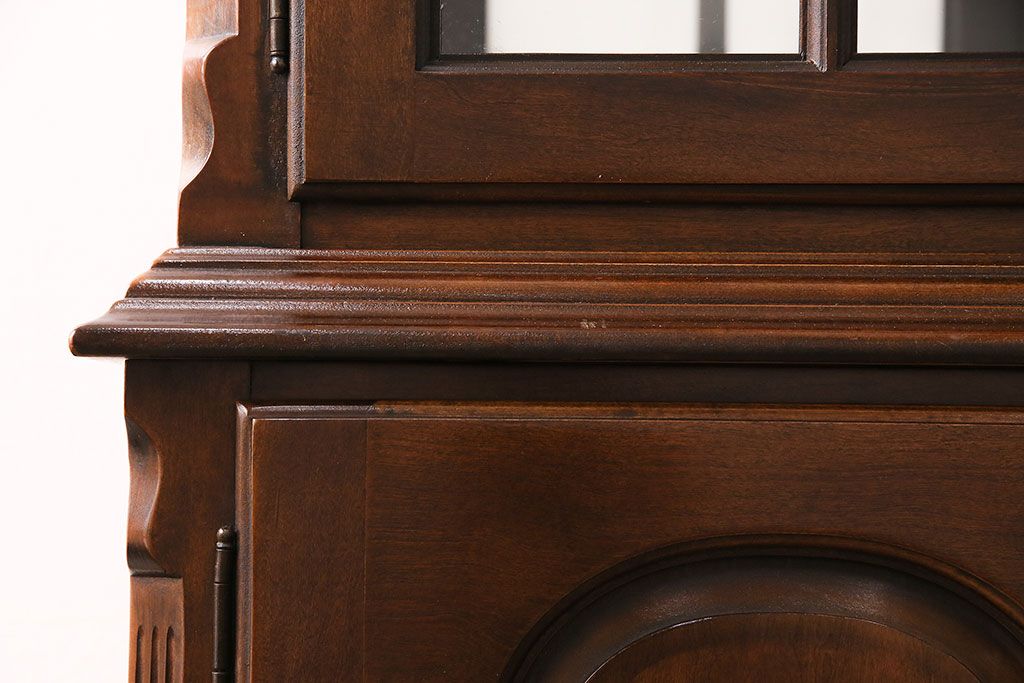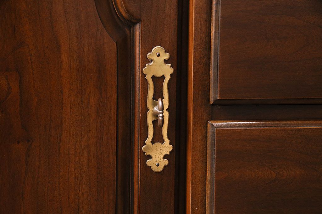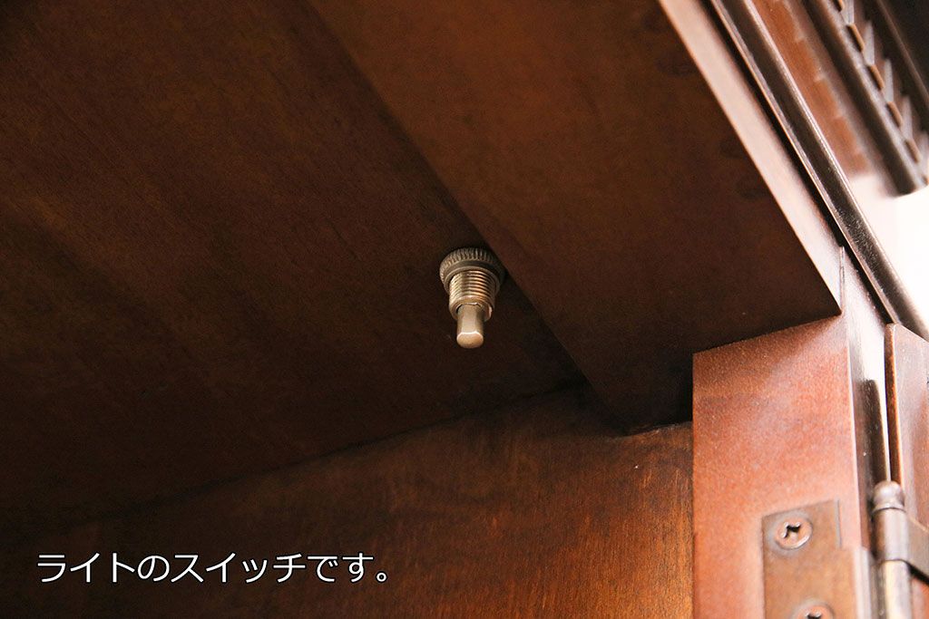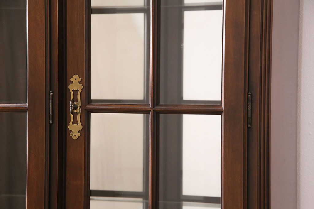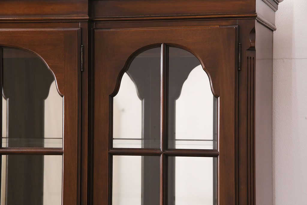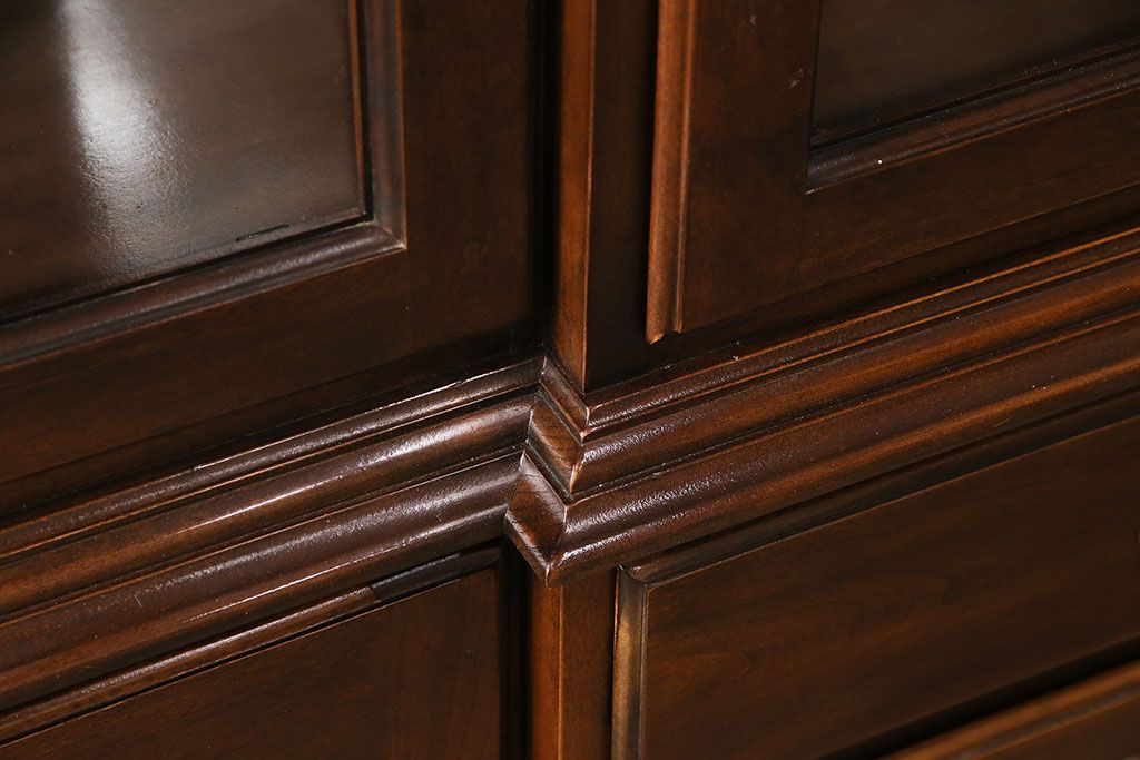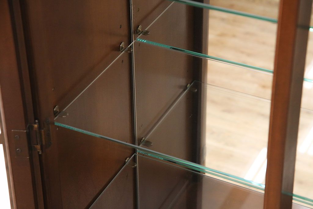 セミオーダー家具実績 > ドレクセルヘリテイジの照明付きキャビネットをリペア&カスタム!ガラス棚板を新たに製作し、入れ替え。現状に近しい色味に着色し仕上げ。(食器棚、収納棚、カップボード)
