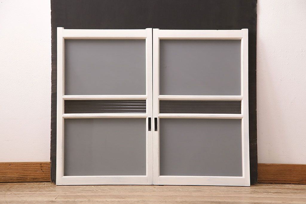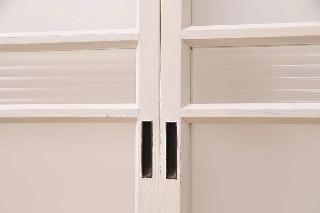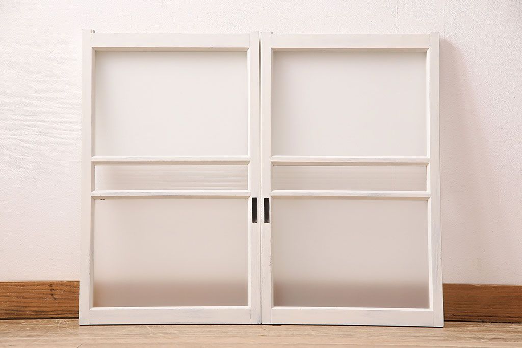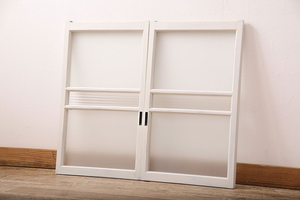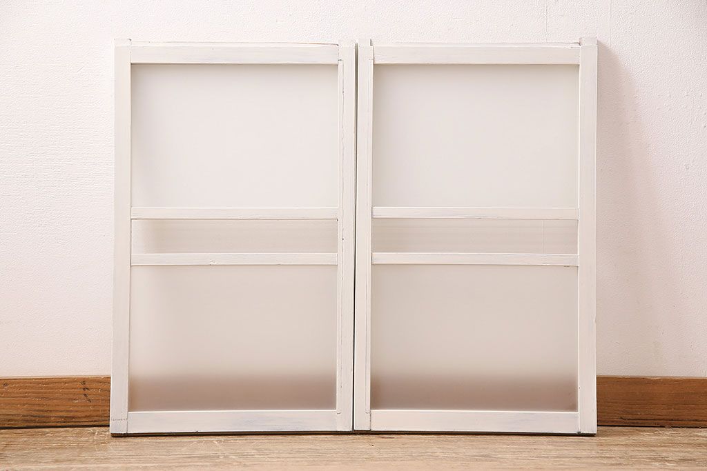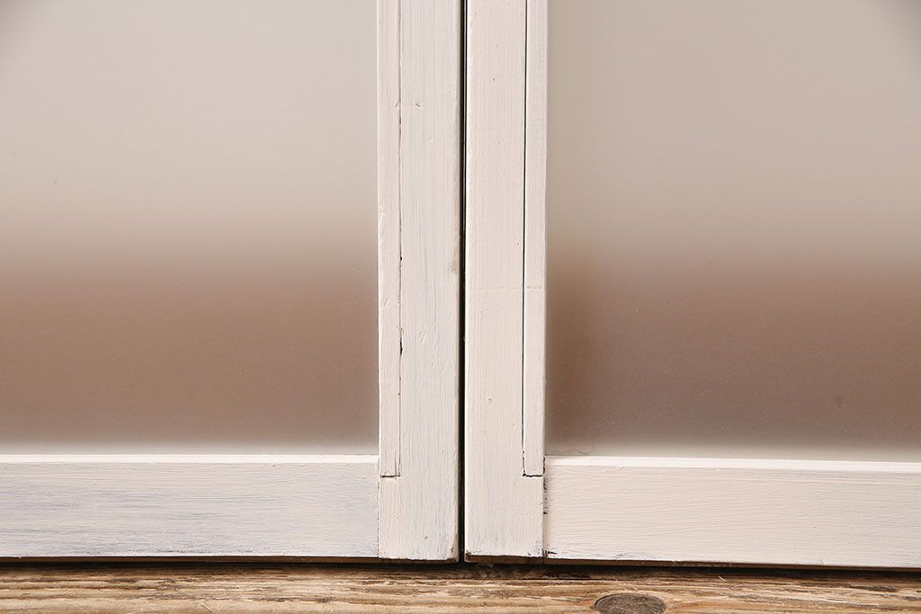 アンティークのガラス戸2枚をリペア&カスタム!高品質リペア済み商品をアンティークホワイトのペイント仕上げ。(引き戸、建具)