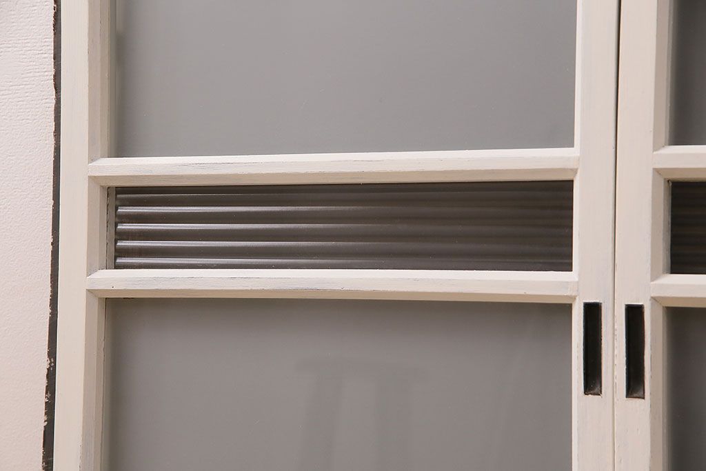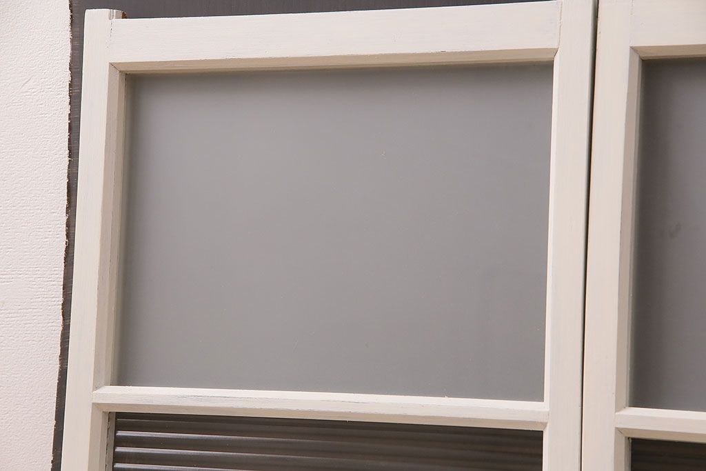 ドア・建具> 窓 > アンティークのガラス戸2枚をリペア&カスタム!高品質リペア済み商品をアンティークホワイトのペイント仕上げ。(引き戸、建具)