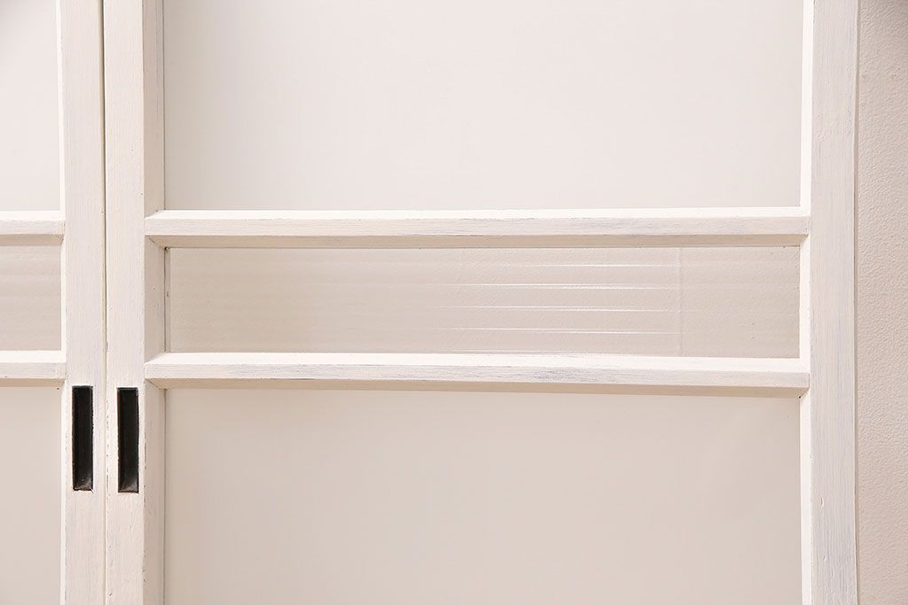 セミオーダー家具実績 > アンティークのガラス戸2枚をリペア&カスタム!高品質リペア済み商品をアンティークホワイトのペイント仕上げ。(引き戸、建具)