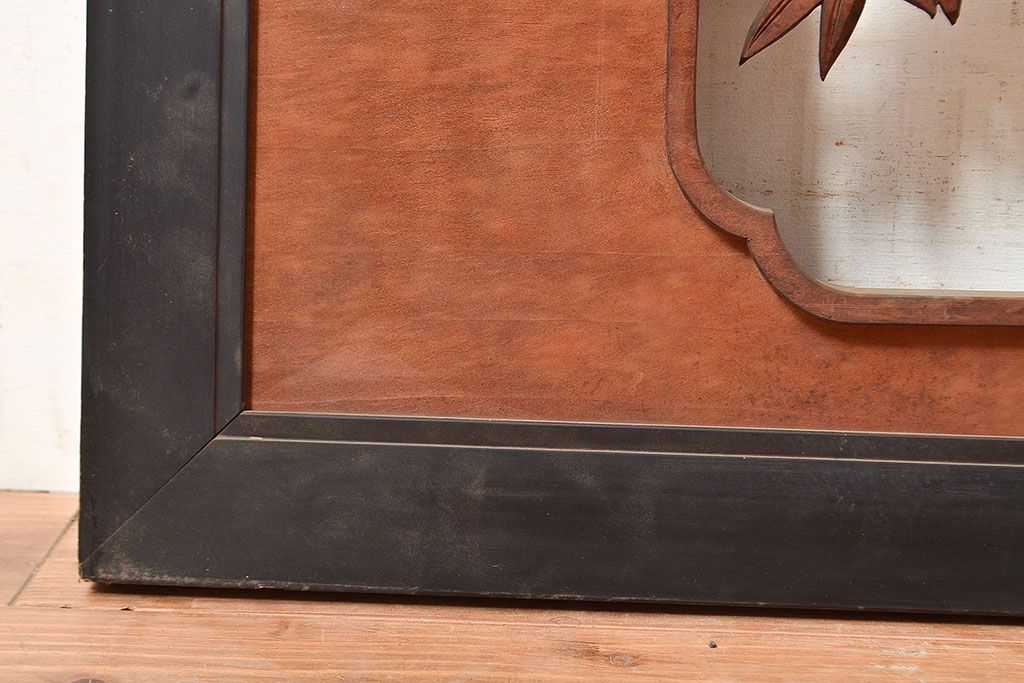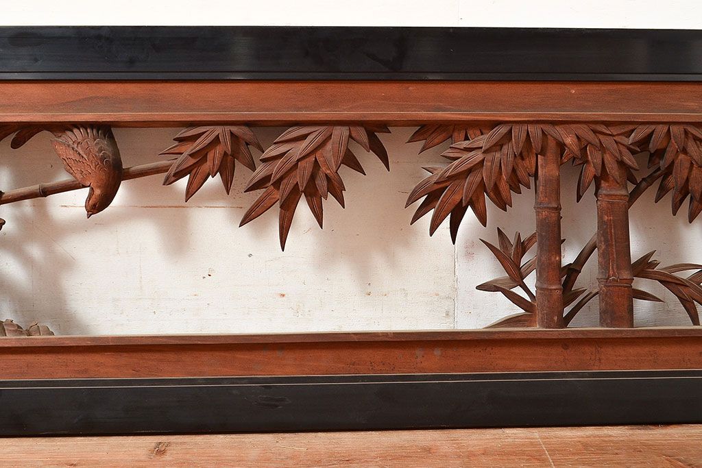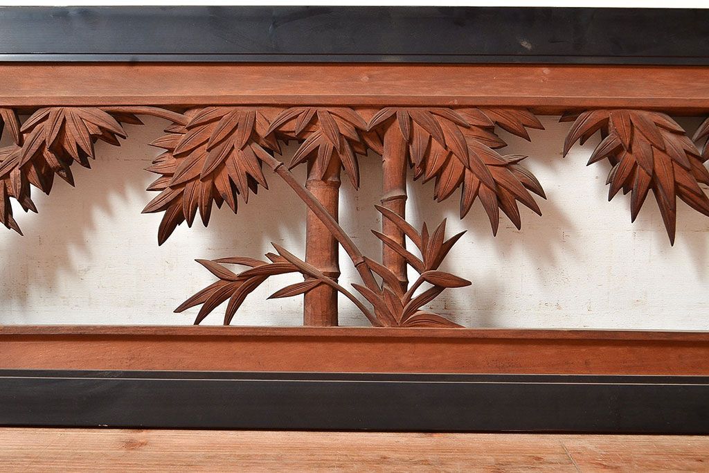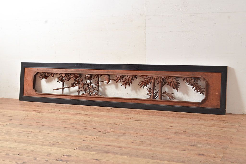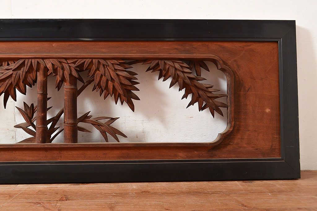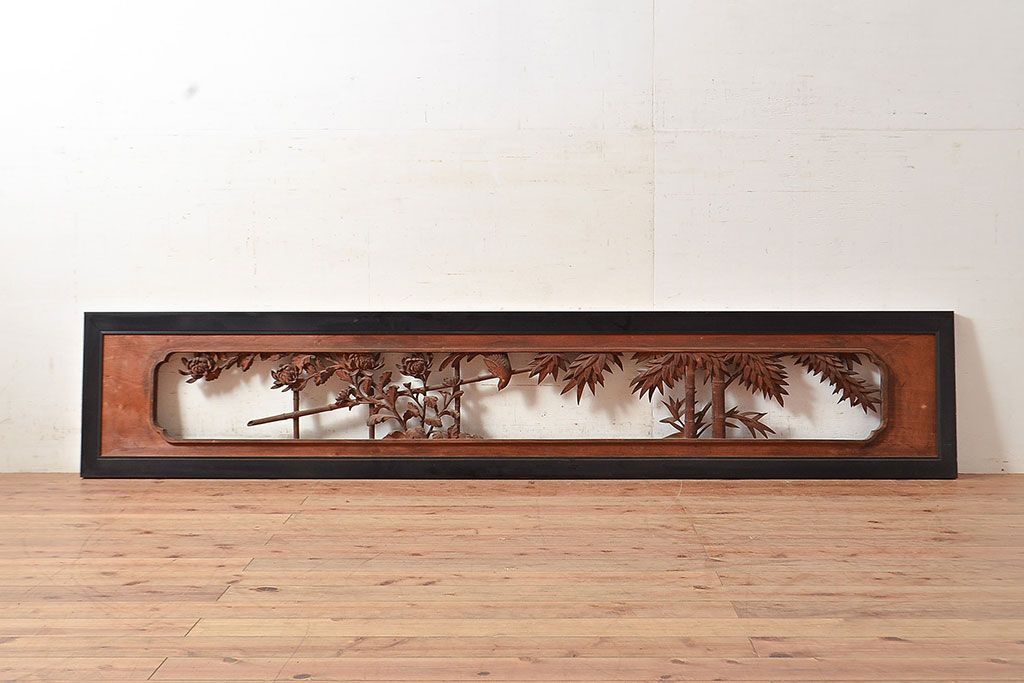 アンティーク建具 菊の花・竹 繊細に表現された彫刻が風流な彫刻欄間(明り取り、建具)(R-048482)