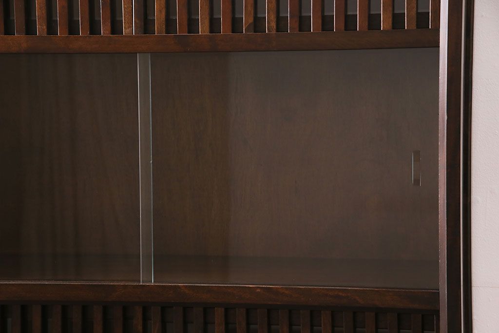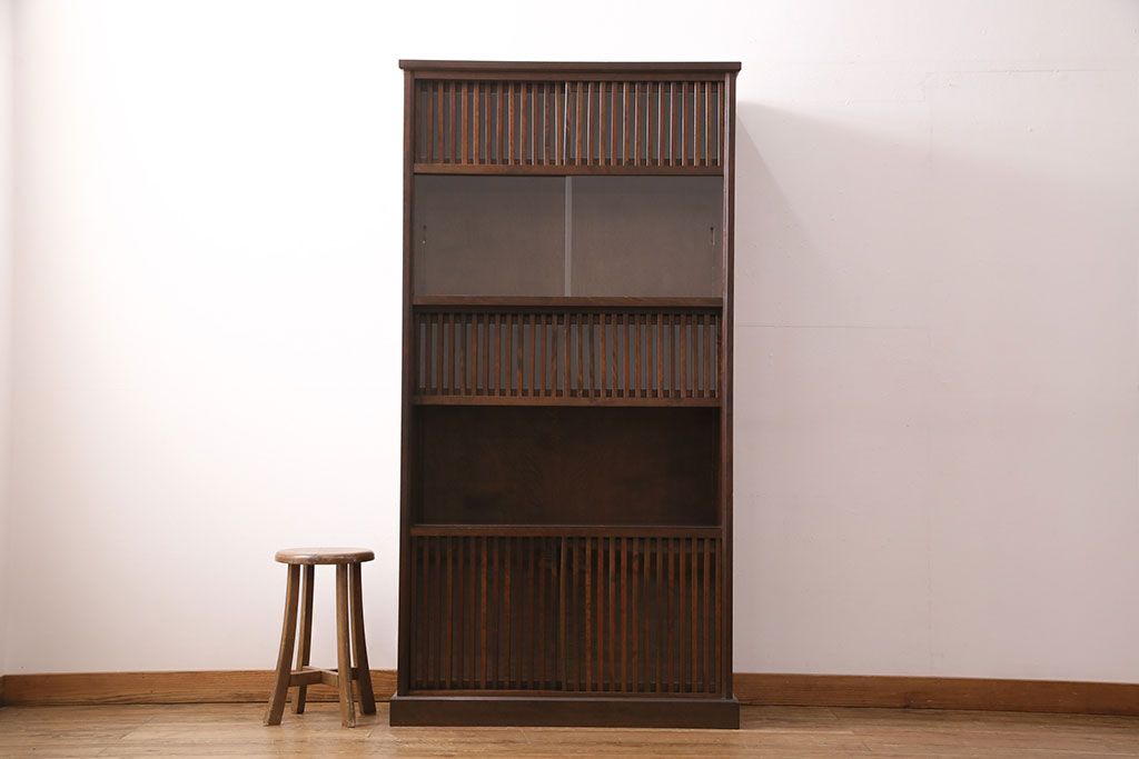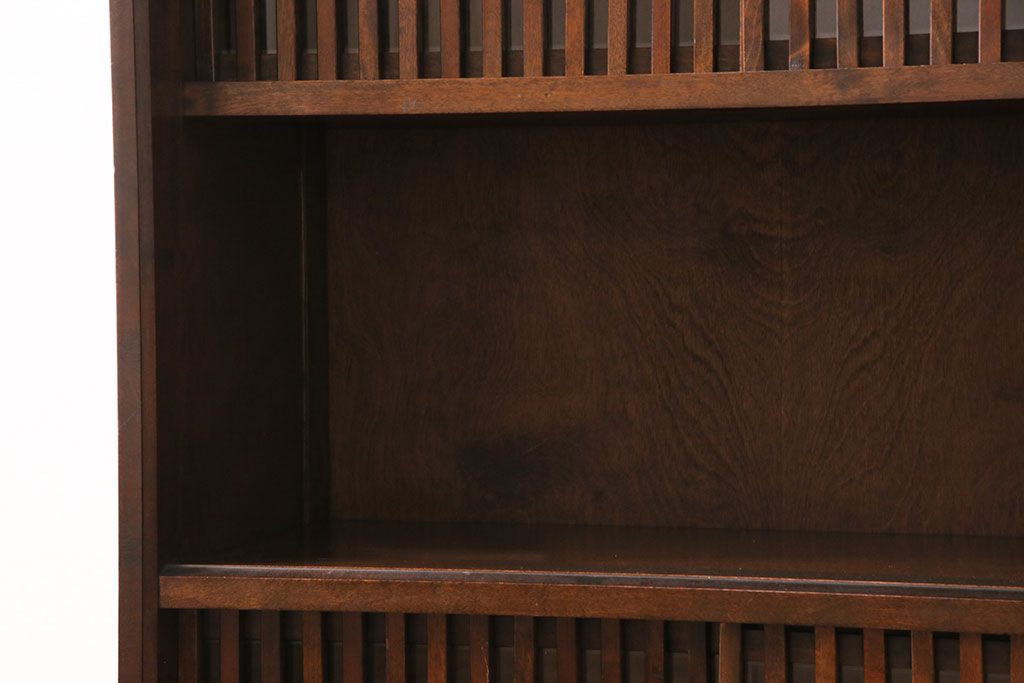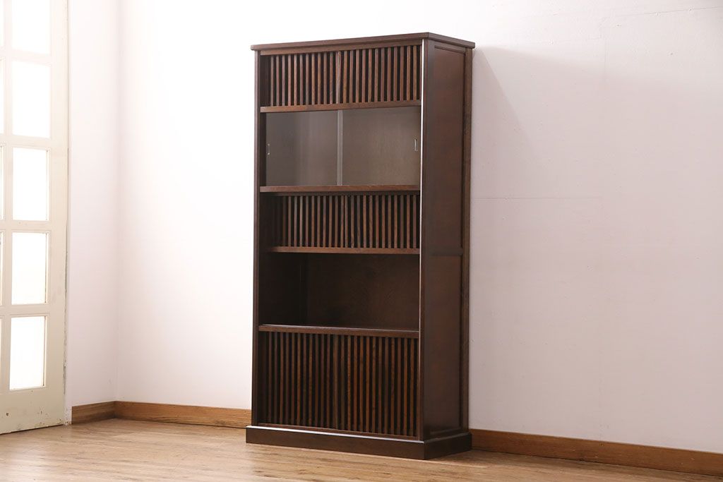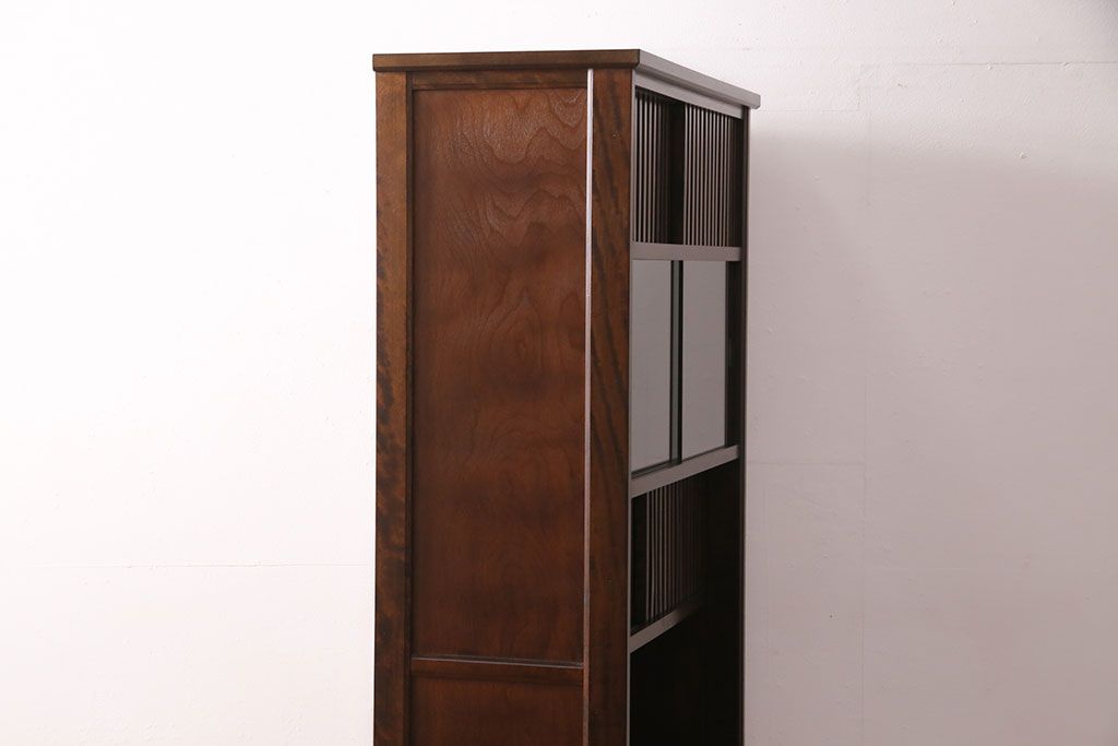 キャビネット・戸棚> 本箱 > 中古 九州民芸家具 縦桟が上品な印象を与えるガラス戸棚(収納棚、キャビネット)(R-049198)