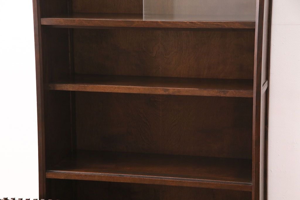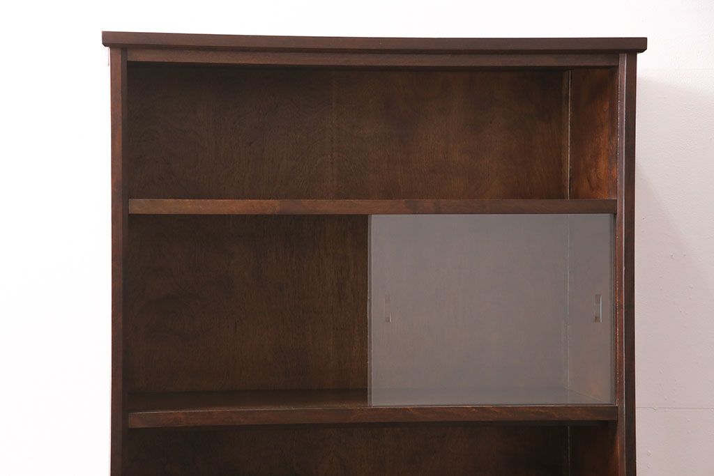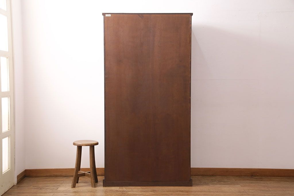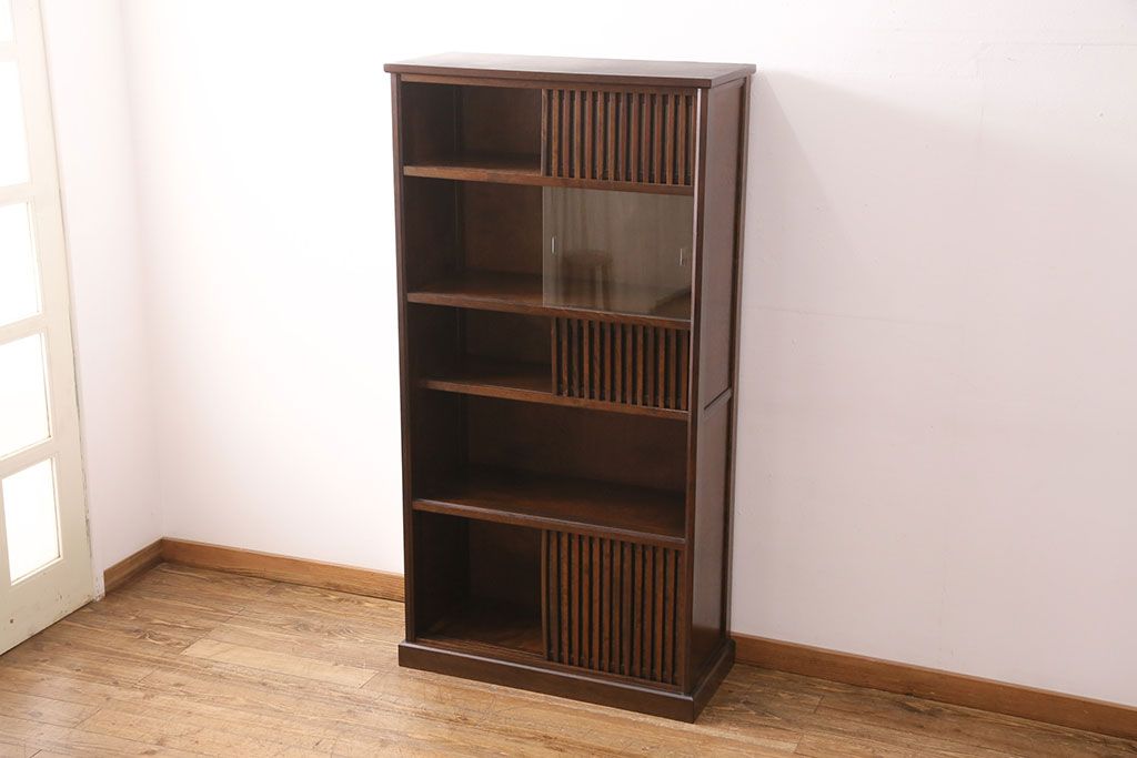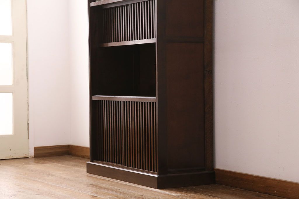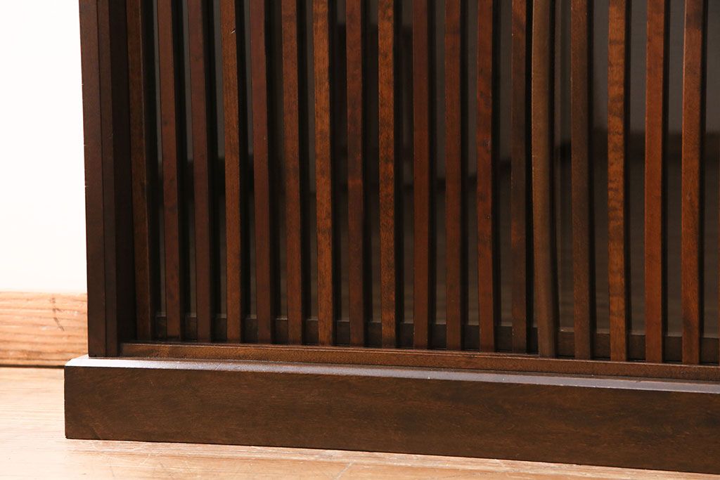キャビネット・戸棚> 本箱 > 中古 九州民芸家具 縦桟が上品な印象を与えるガラス戸棚(収納棚、キャビネット)(R-049198)