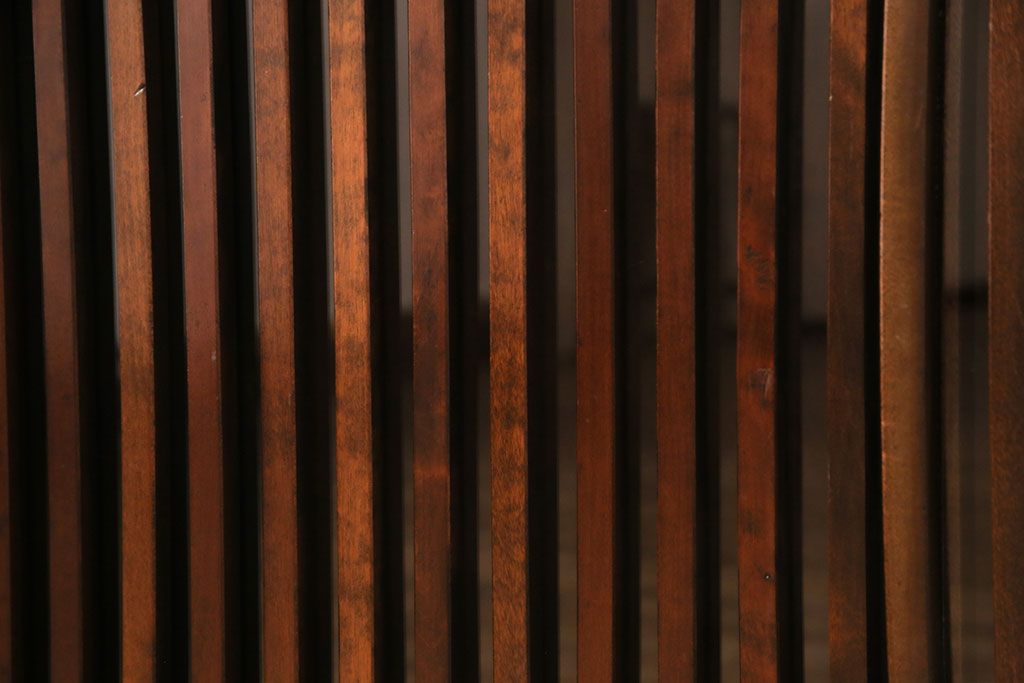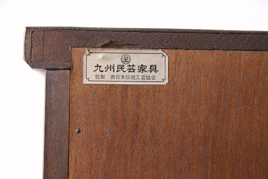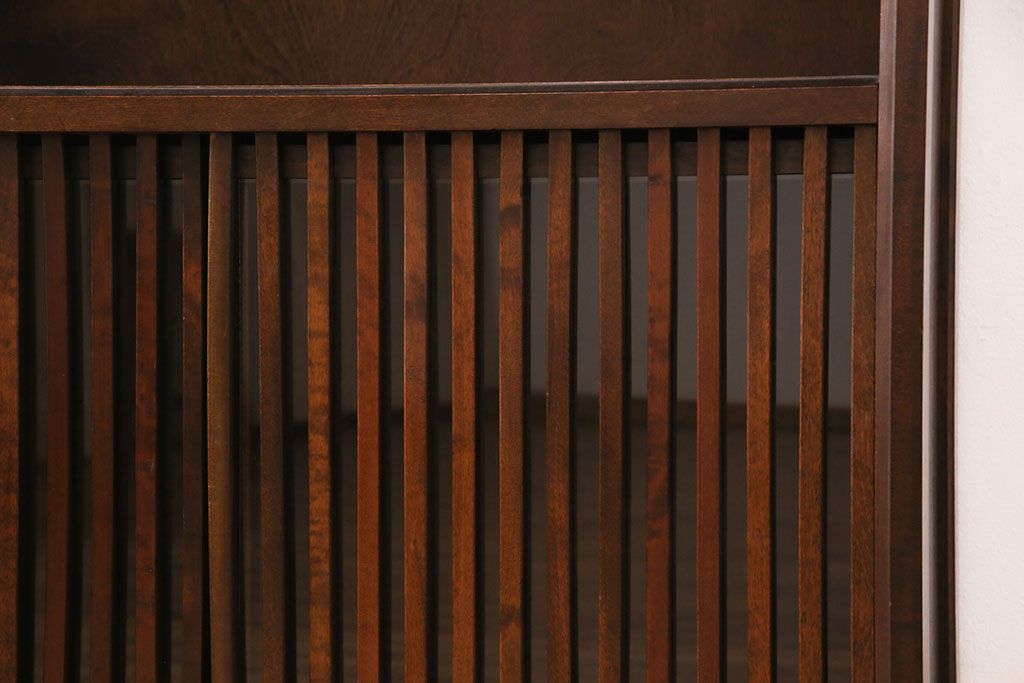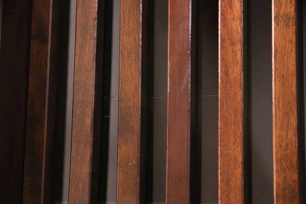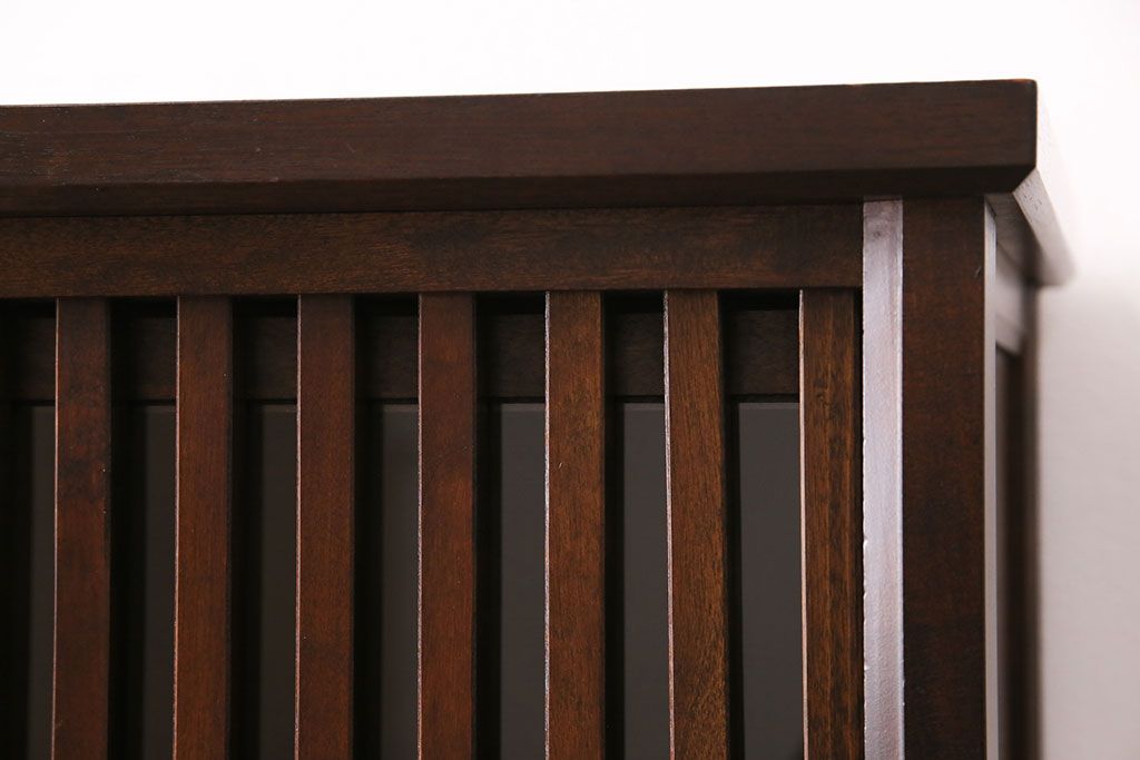 民芸家具 > 中古 九州民芸家具 縦桟が上品な印象を与えるガラス戸棚(収納棚、キャビネット)(R-049198)