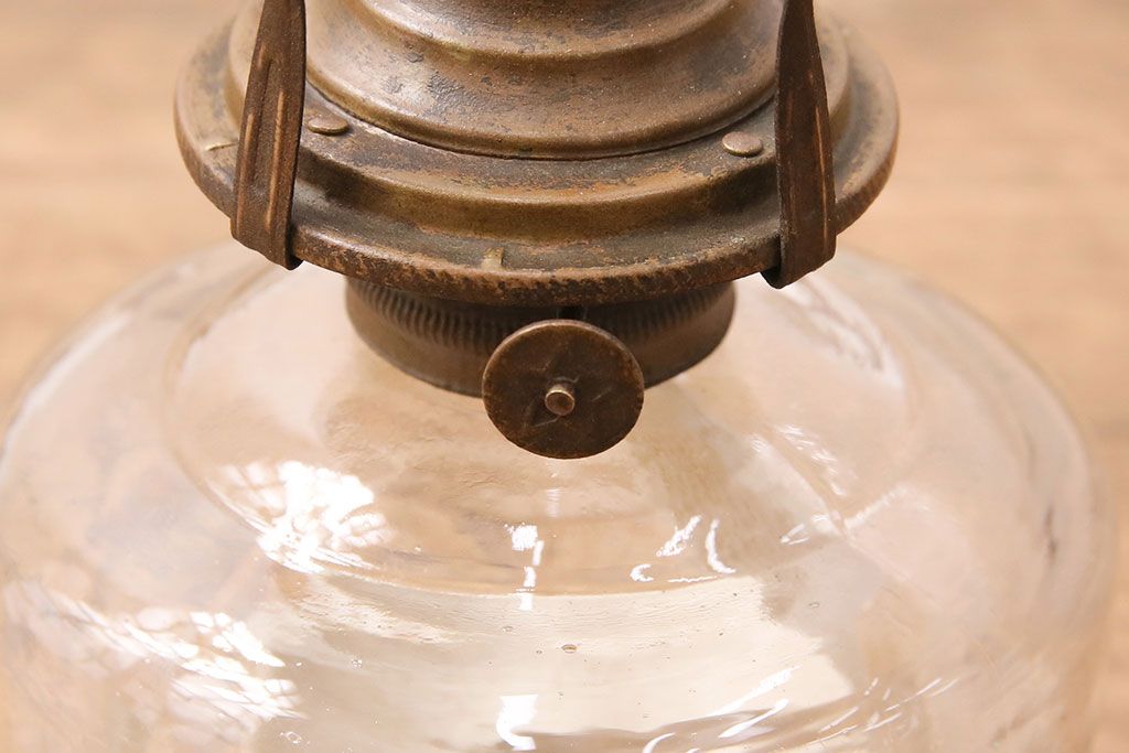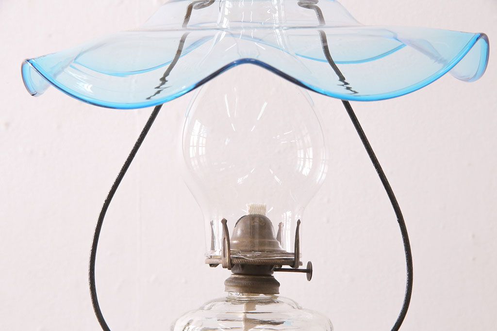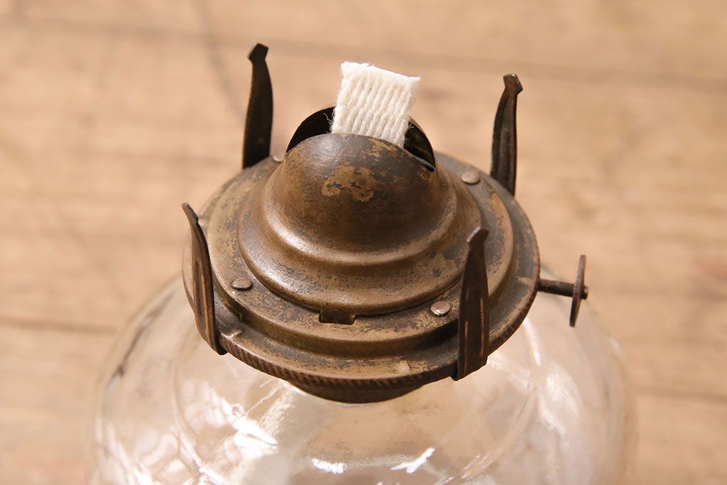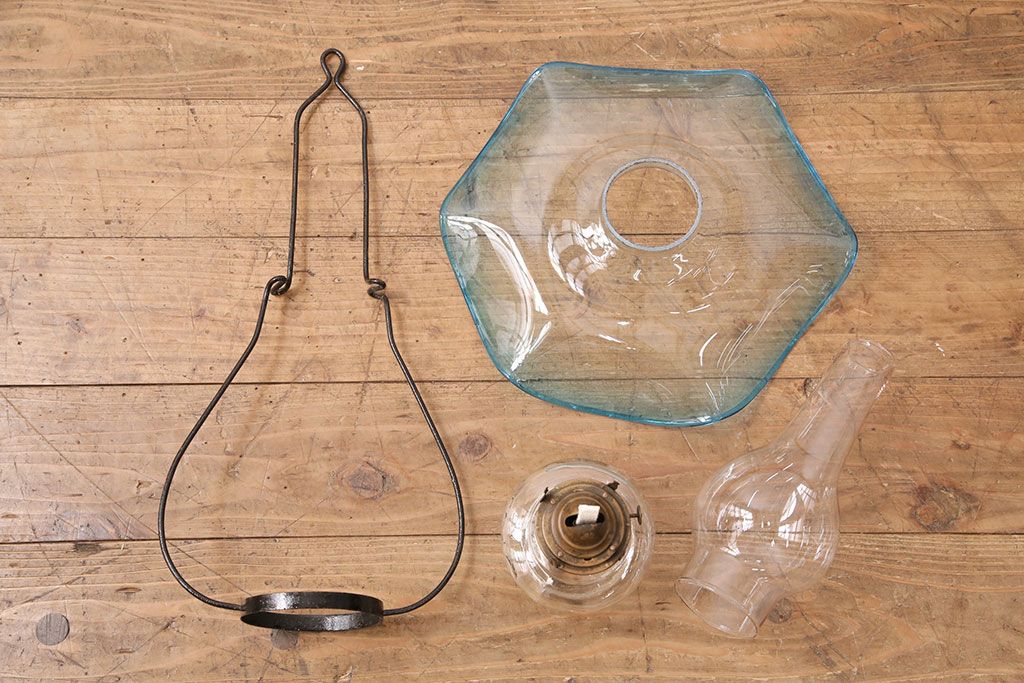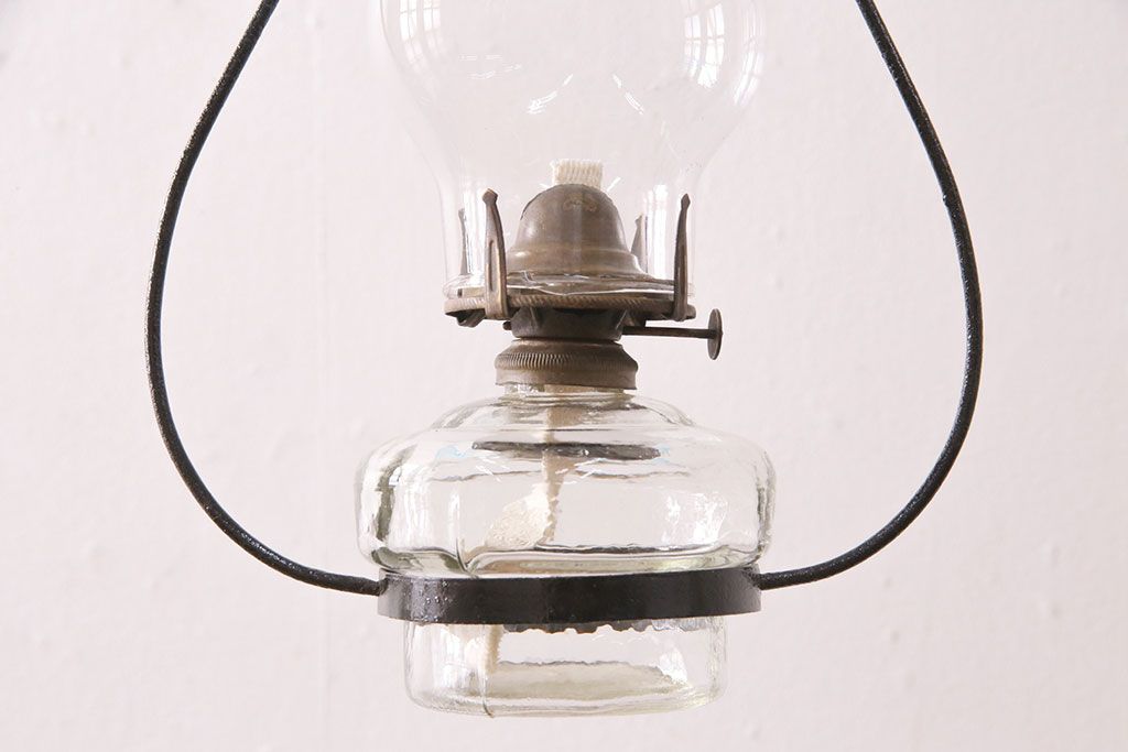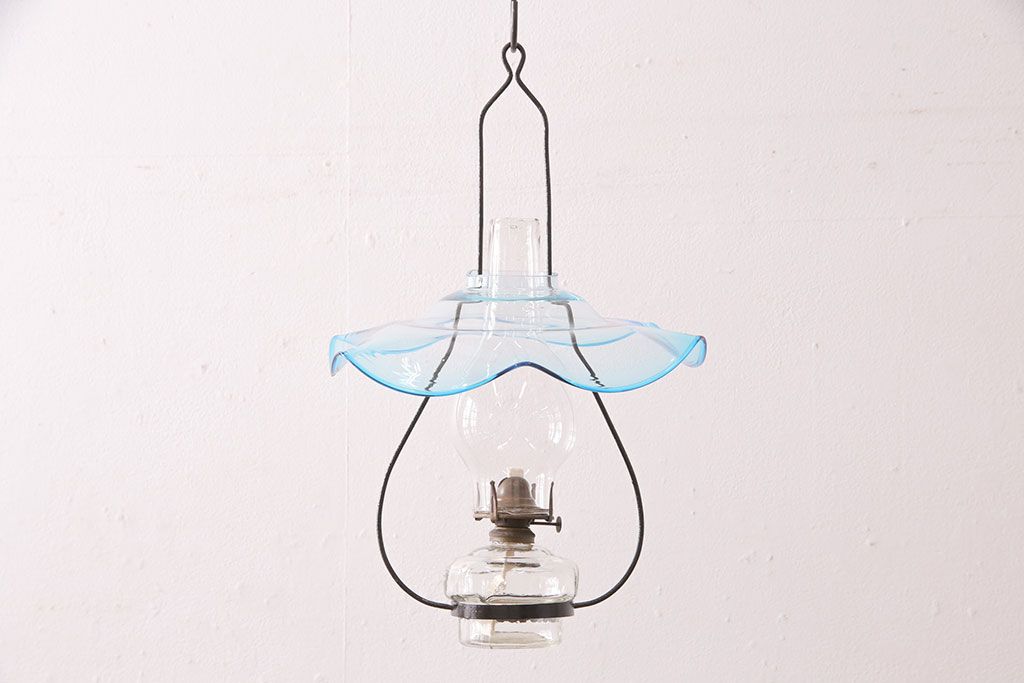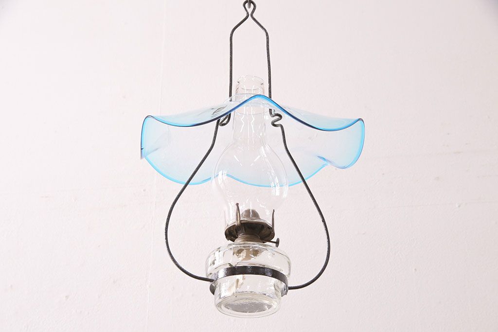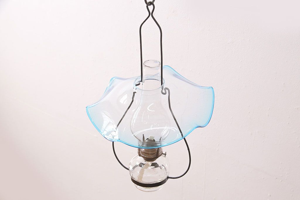 和製アンティーク 大正期 波のようなデザインがおしゃれな吊り下げオイルランプ(ハンギングランプ、吊り下げランプ、石油ランプ)(R-049230)です。