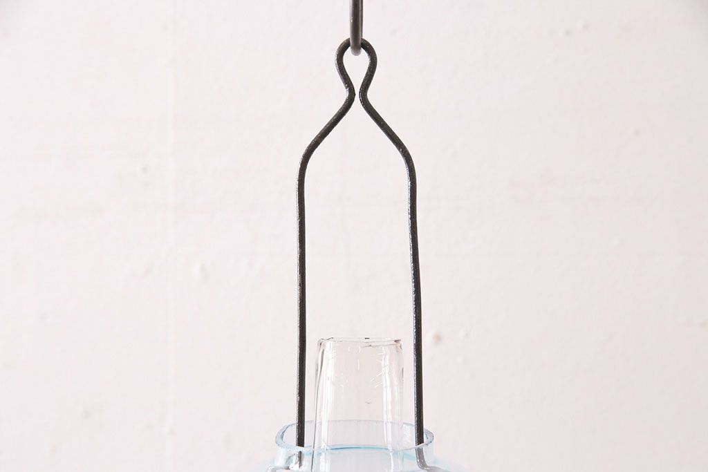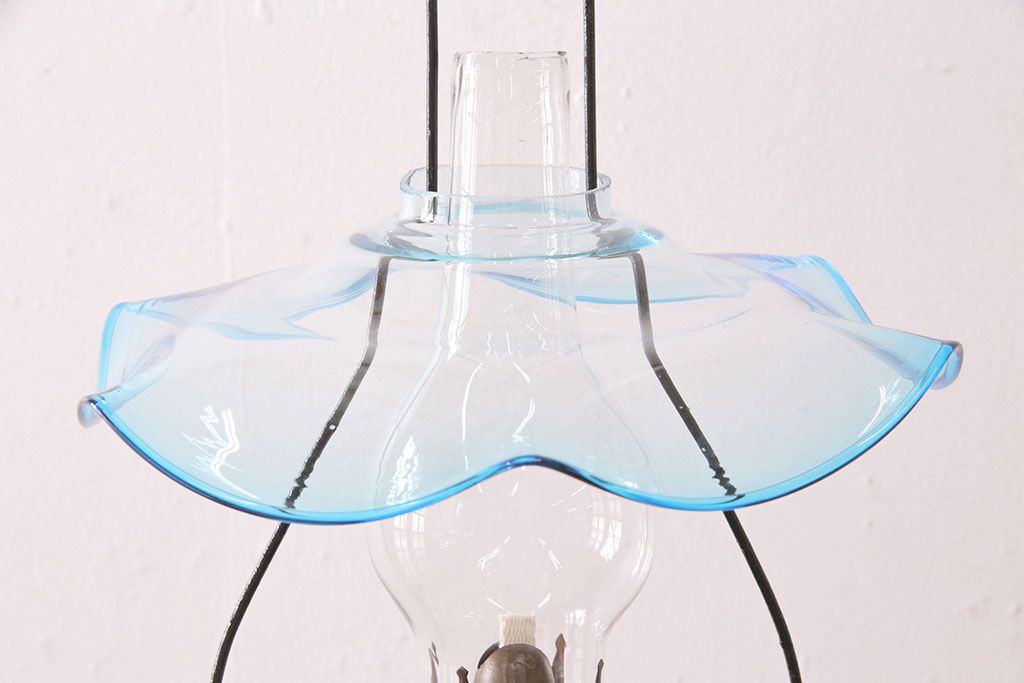 和製アンティーク 大正期 波のようなデザインがおしゃれな吊り下げオイルランプ(ハンギングランプ、吊り下げランプ、石油ランプ)(R-049230)