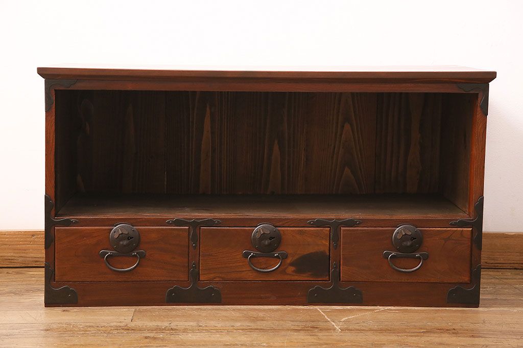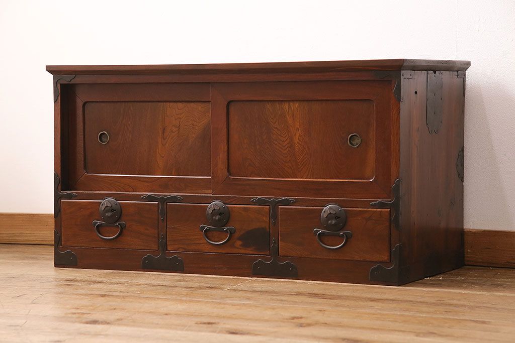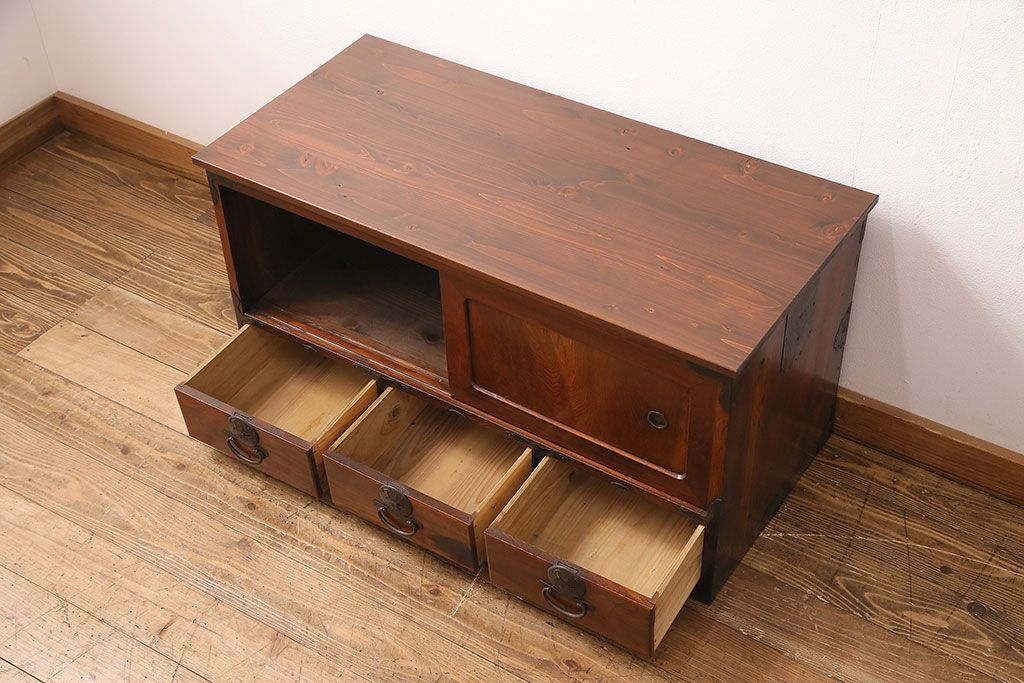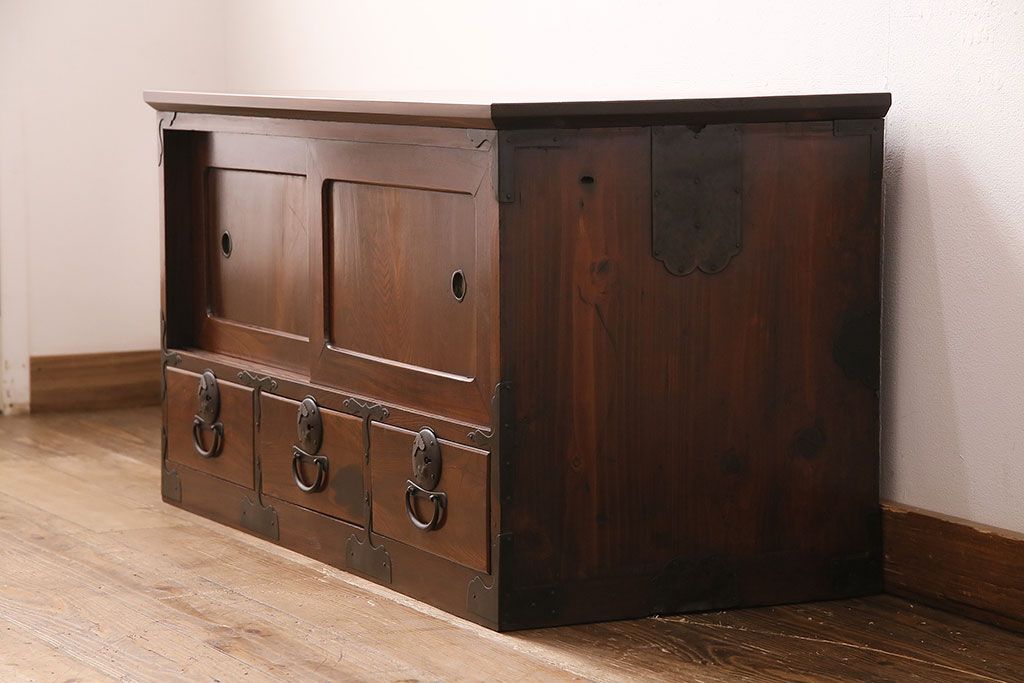アンティークの二本松箪笥ローボードをリペア&カスタム!可動部の調整を行い、天板を取り付け。(収納棚、テレビ台)