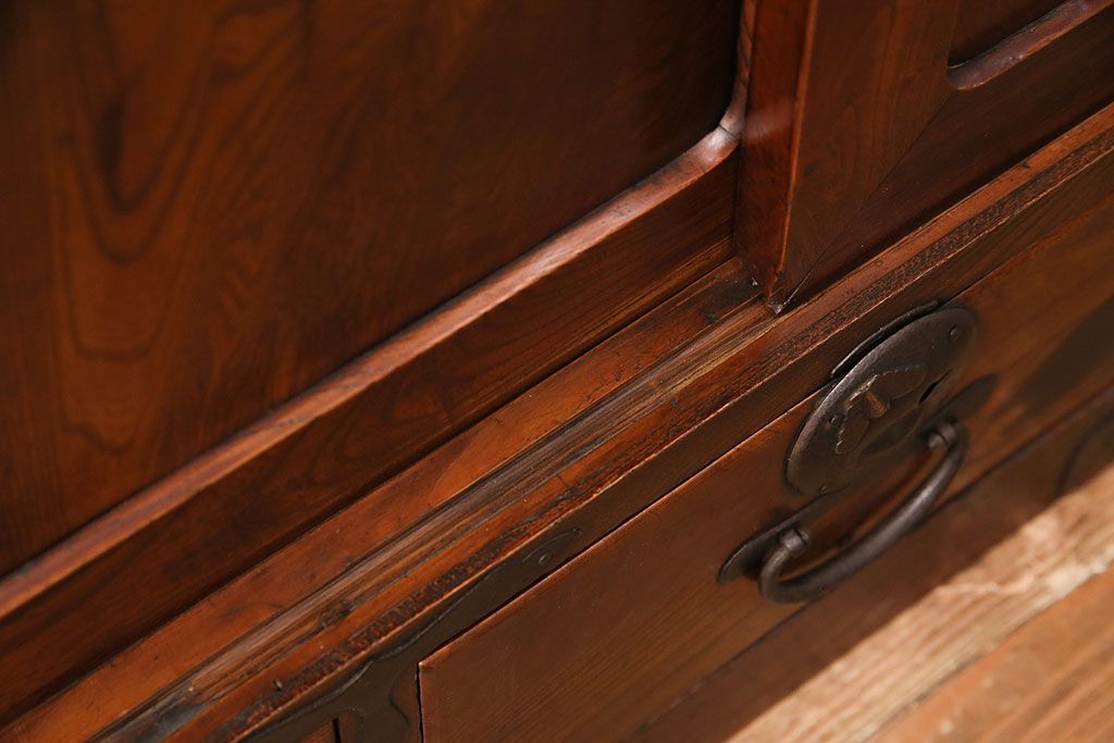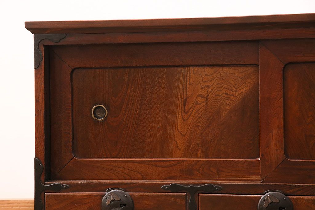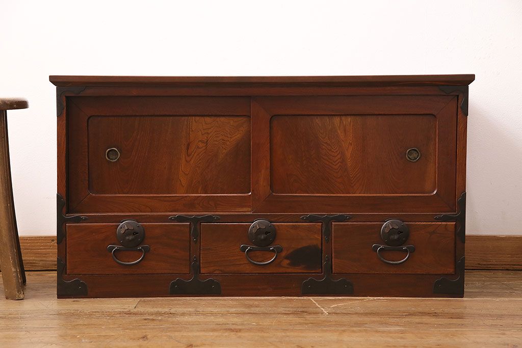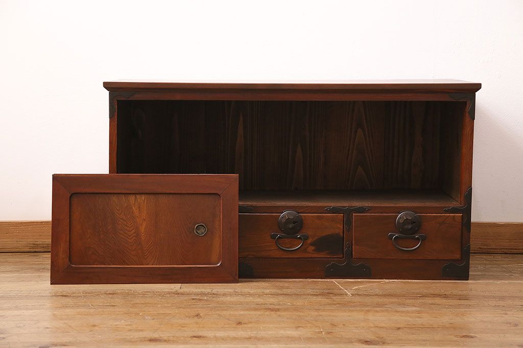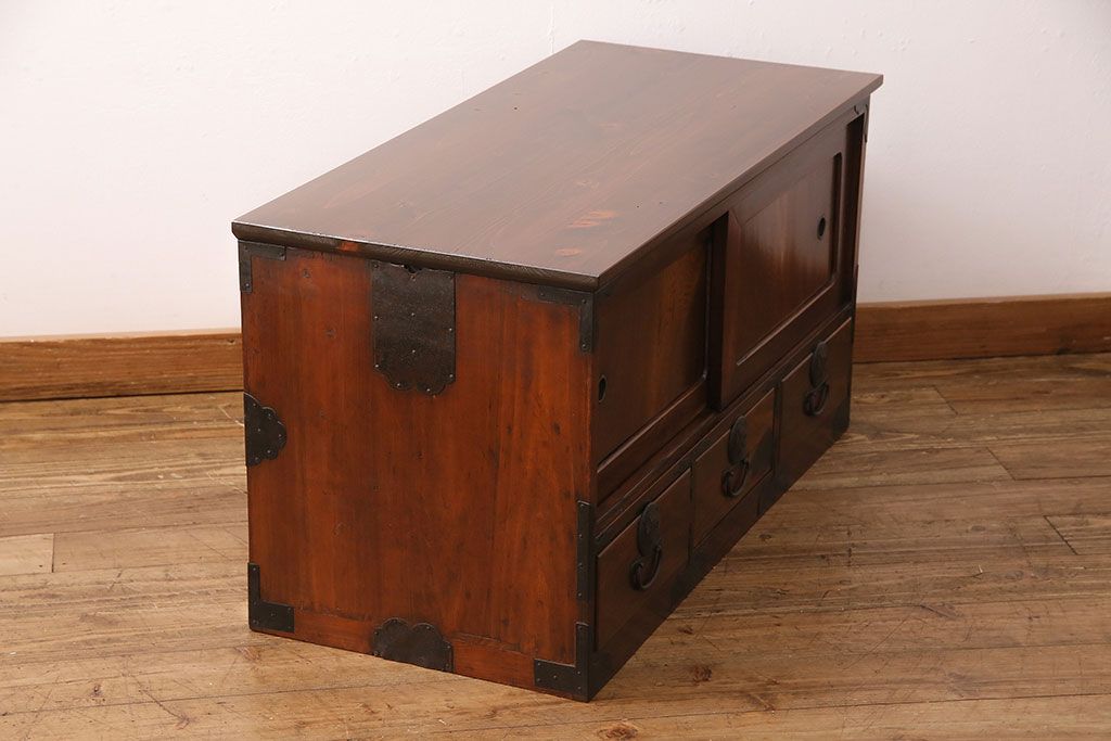 アンティークの二本松箪笥ローボードをリペア&カスタム!可動部の調整を行い、天板を取り付け。(収納棚、テレビ台)