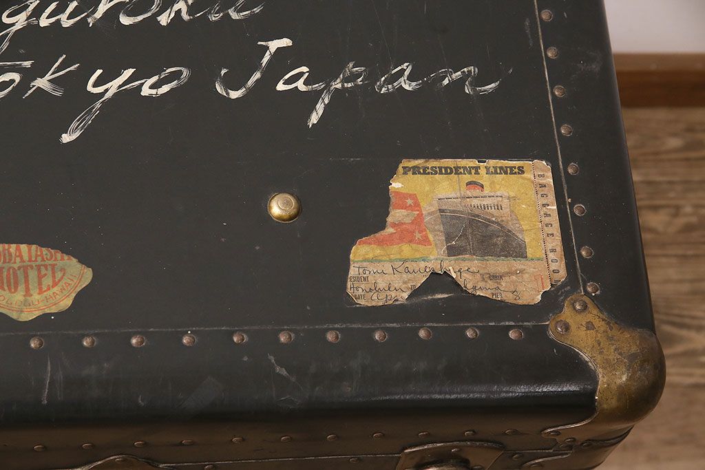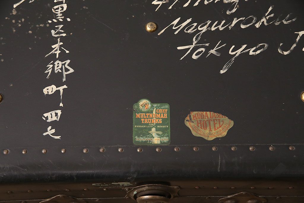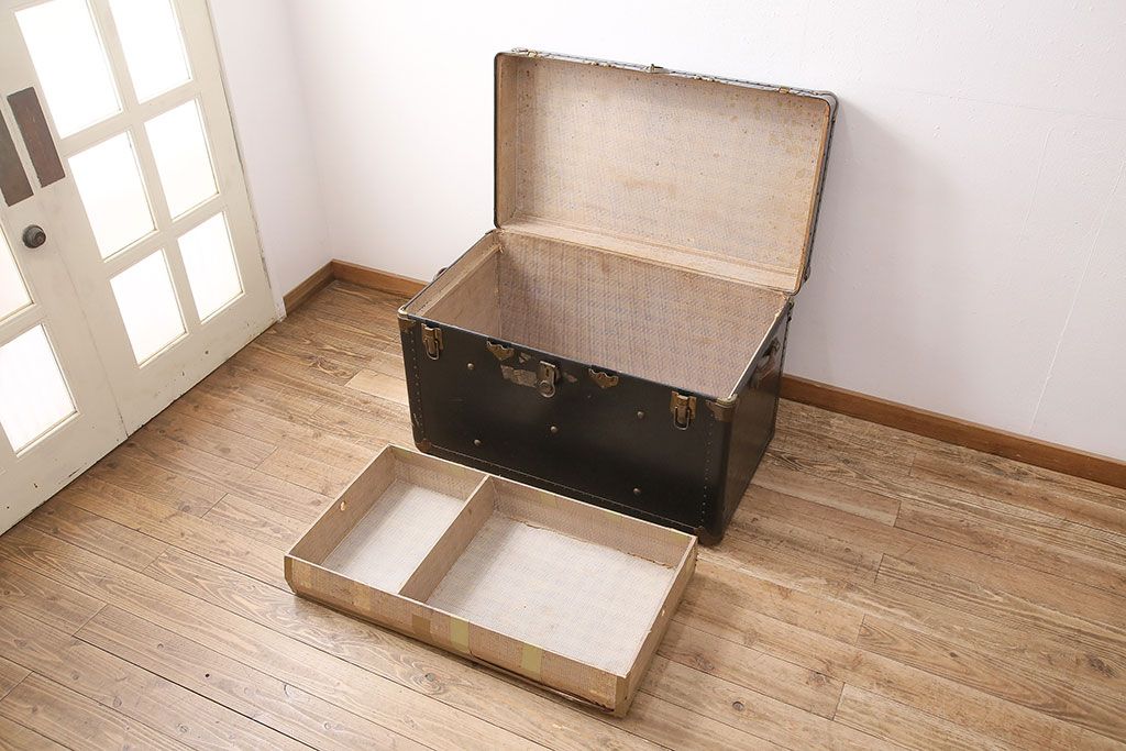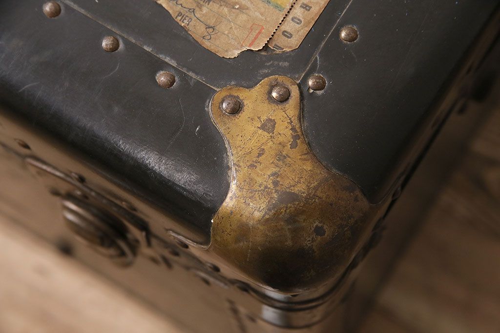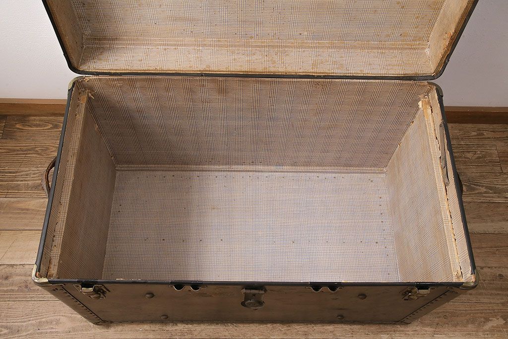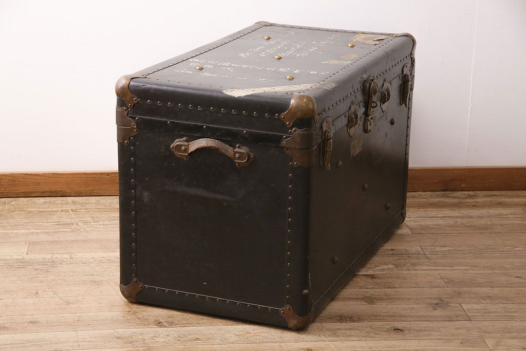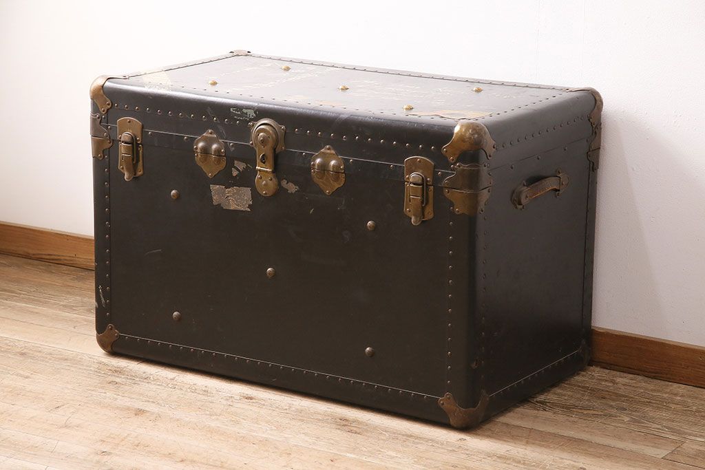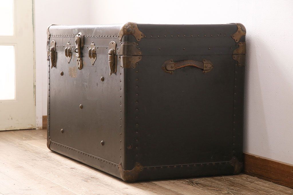小物収納・トランク > アンティーク 収納兼ディスプレイにも活躍してくれる格好良い特大トランク(収納ボックス、ディスプレイ、収納箱)(R-048942)