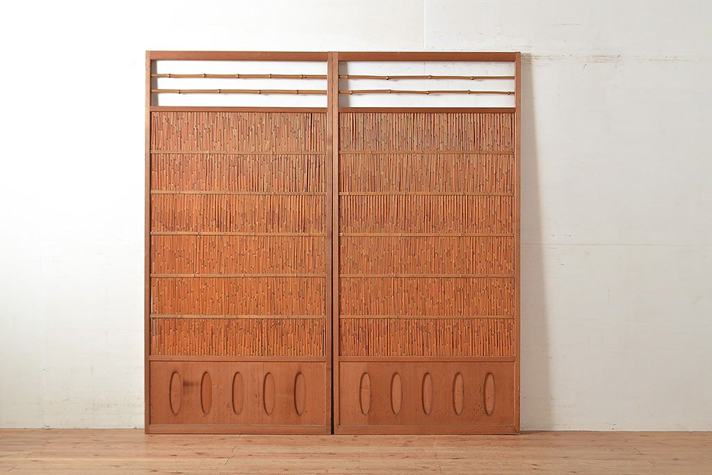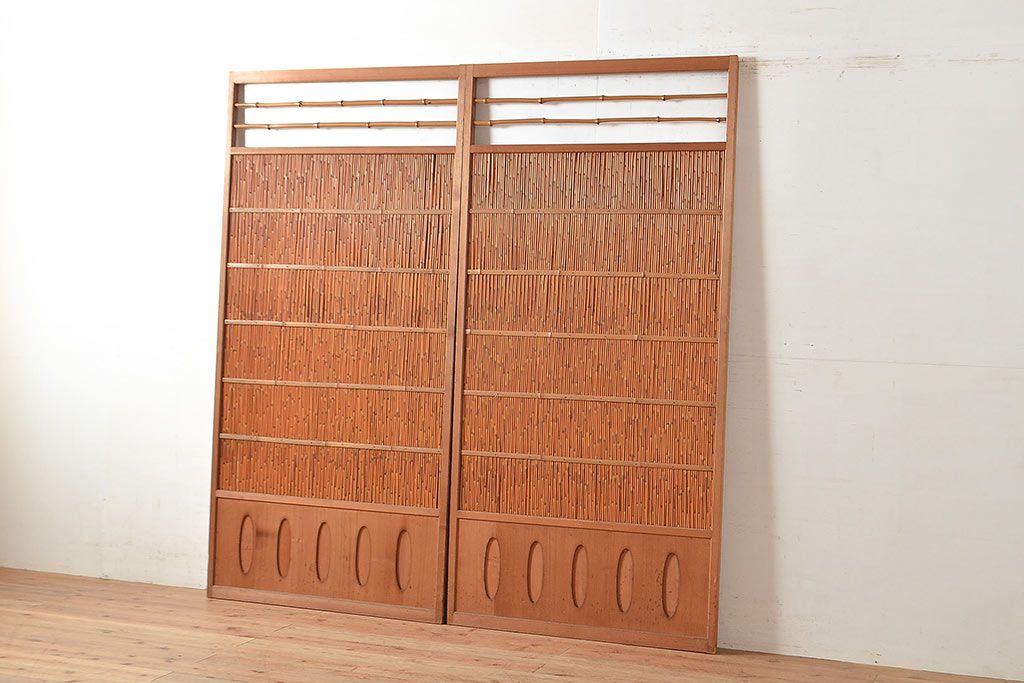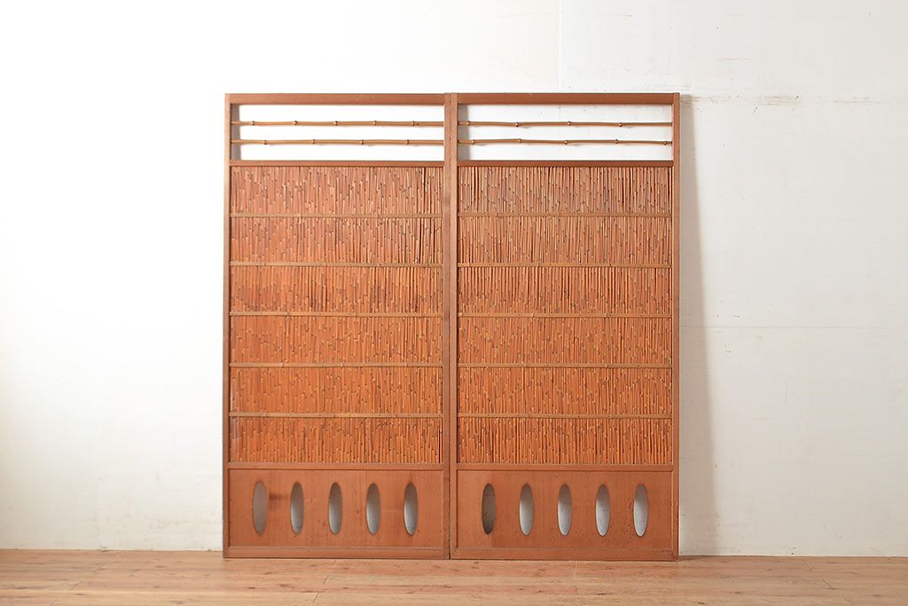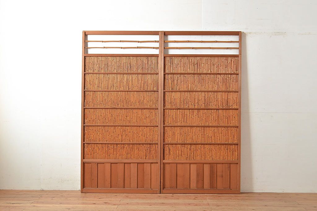 アンティーク建具 様々な採光と通風を感じることができる御簾戸2枚セット(建具、簾戸、簀戸、葭戸、夏障子、すど、葦戸)(R-048561)