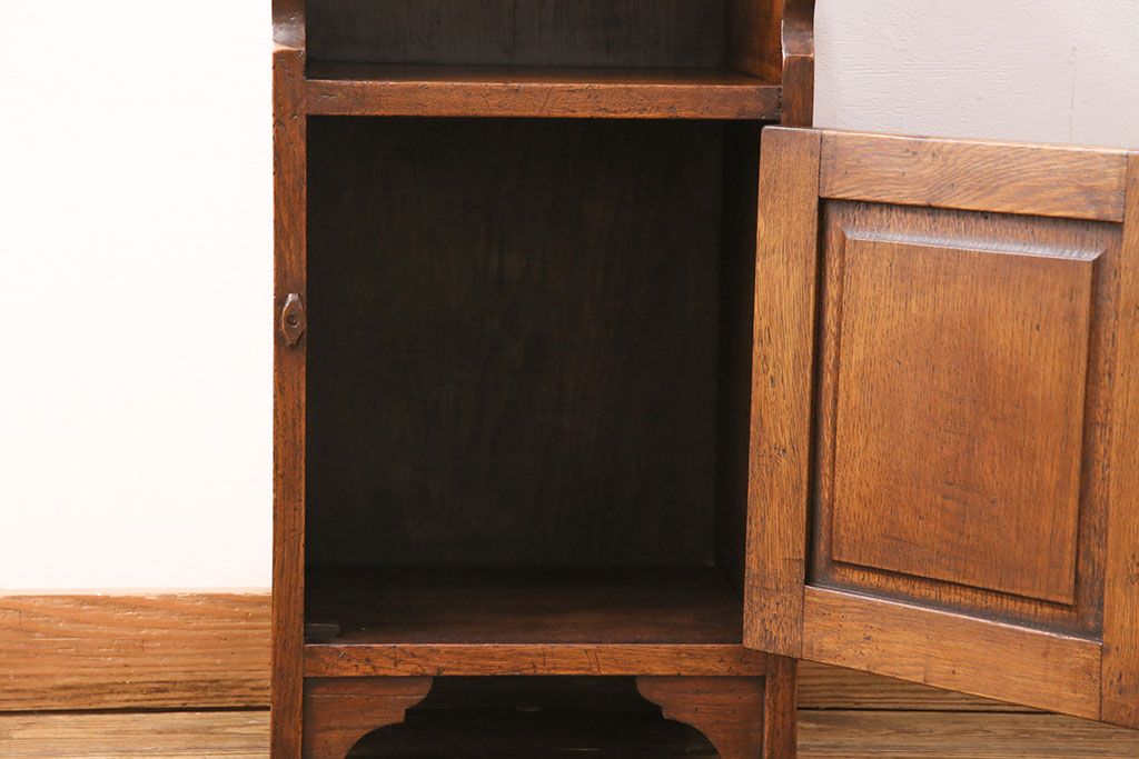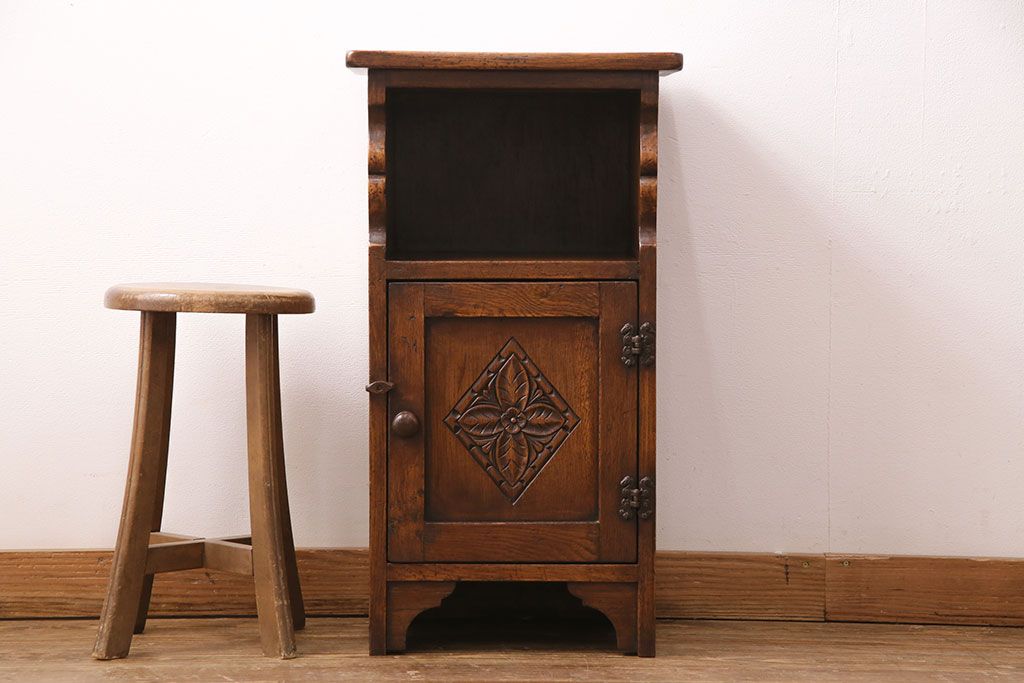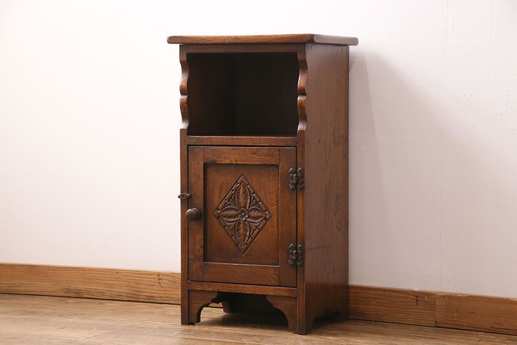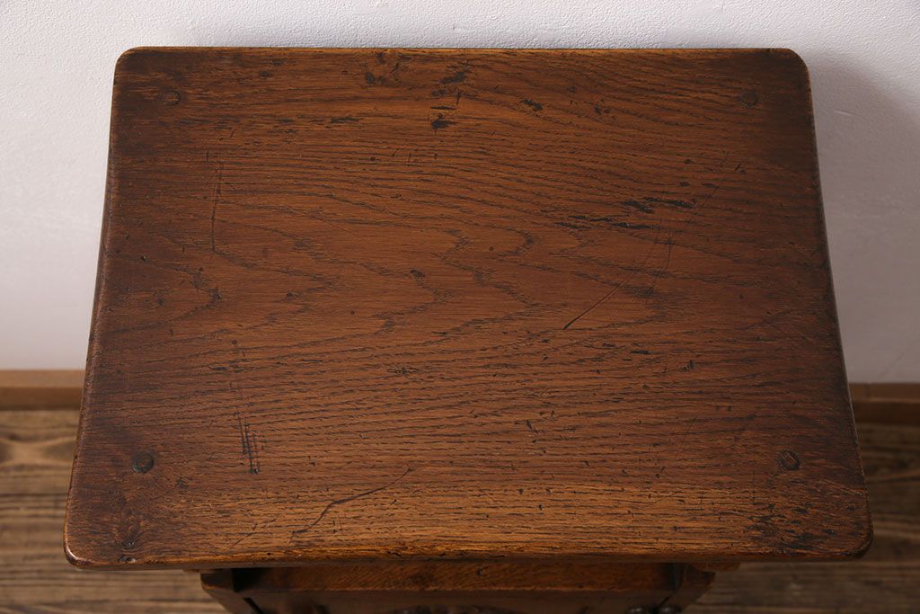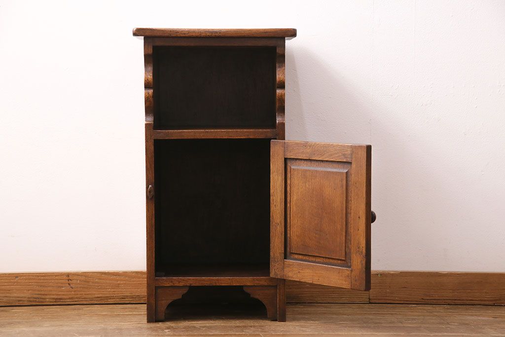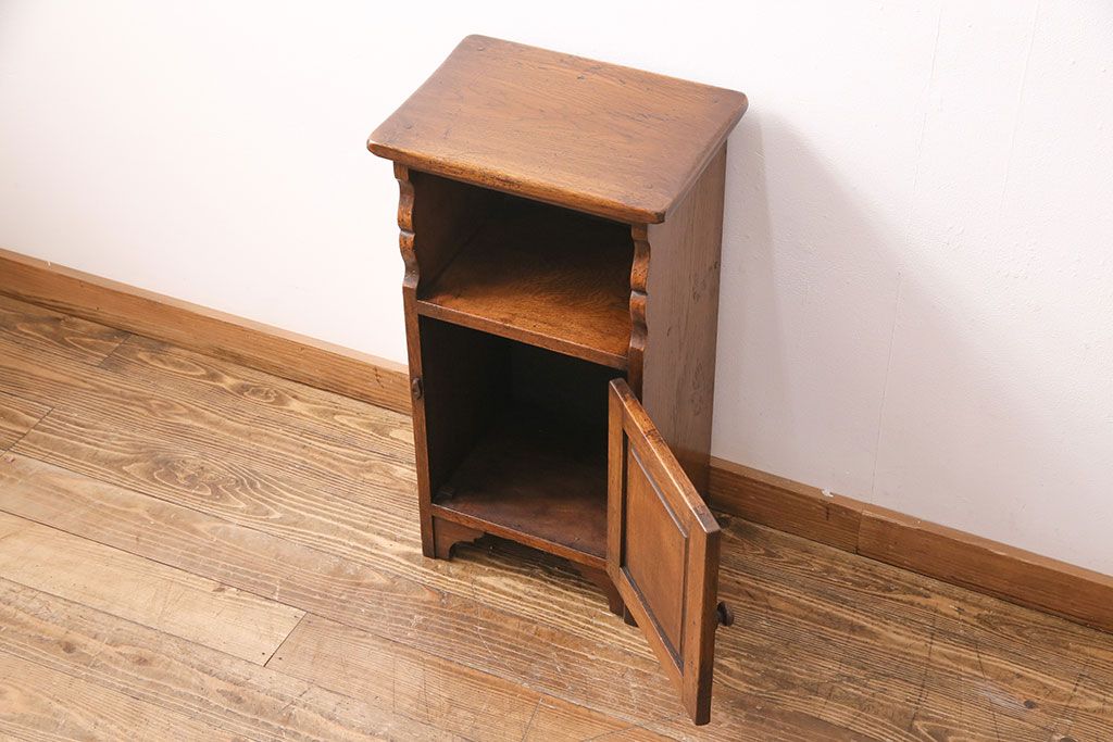 イギリスビンテージ 細やかな意匠が光るニレ材製電話台(サイドキャビネット、収納棚、飾り棚、サイドテーブル)(R-049325)