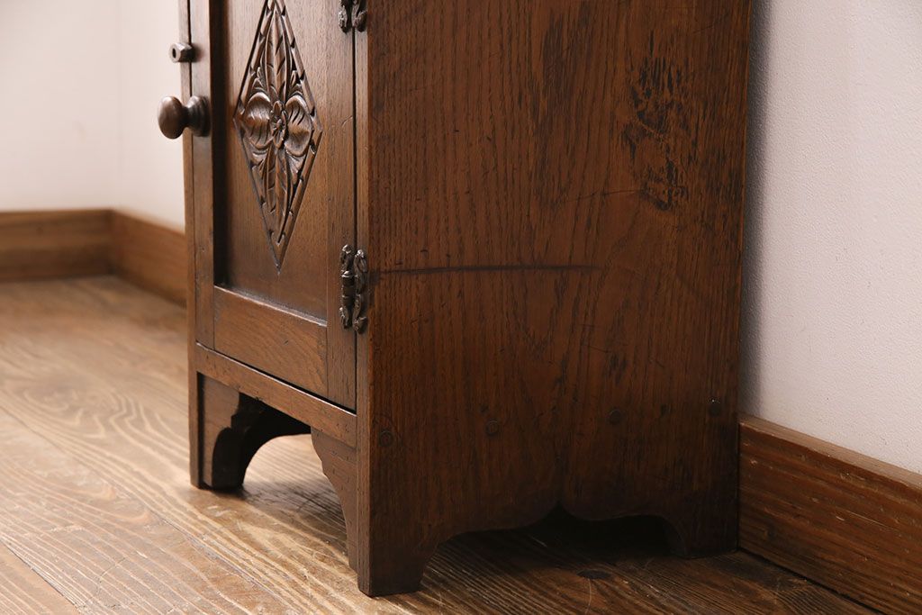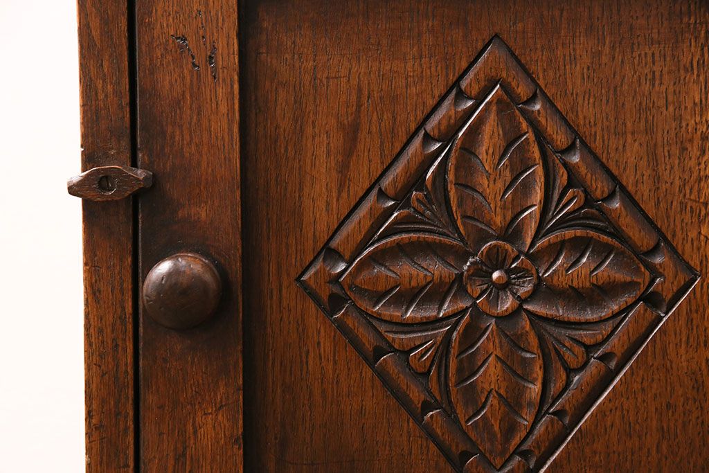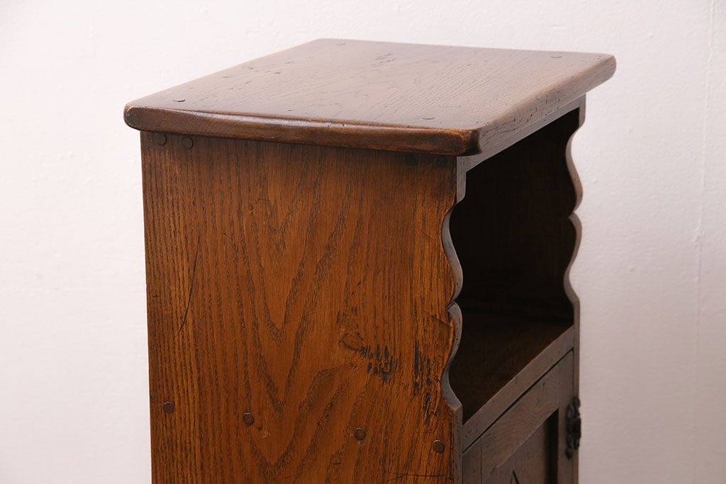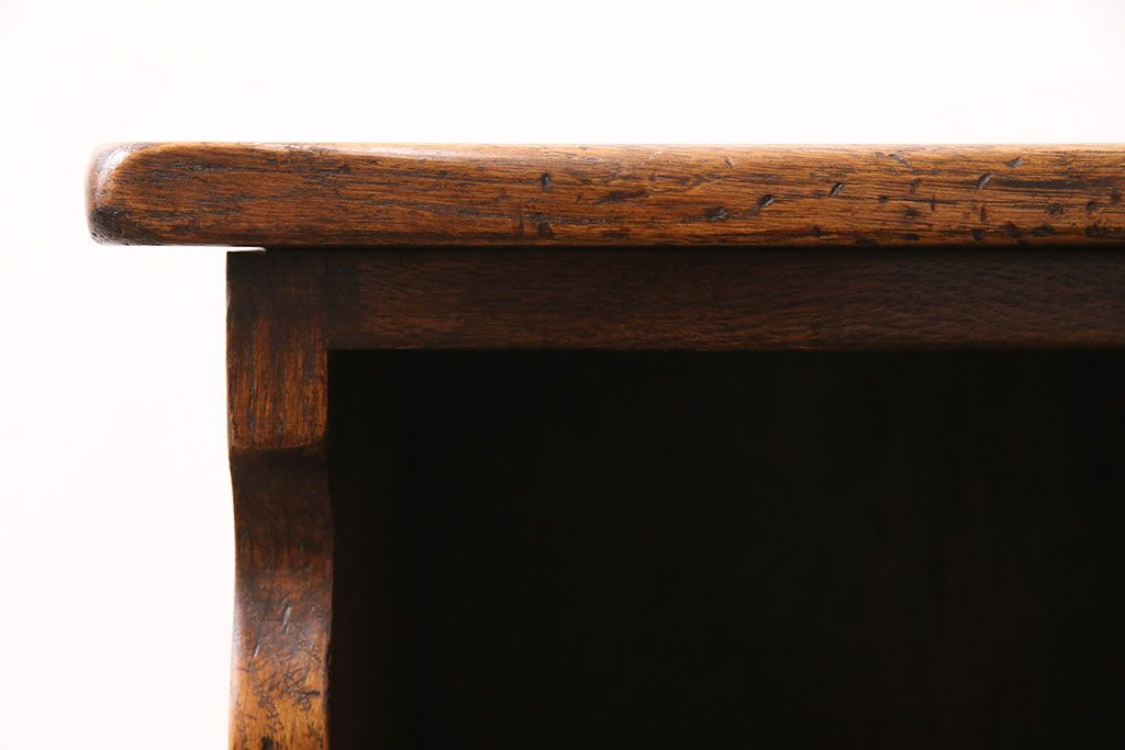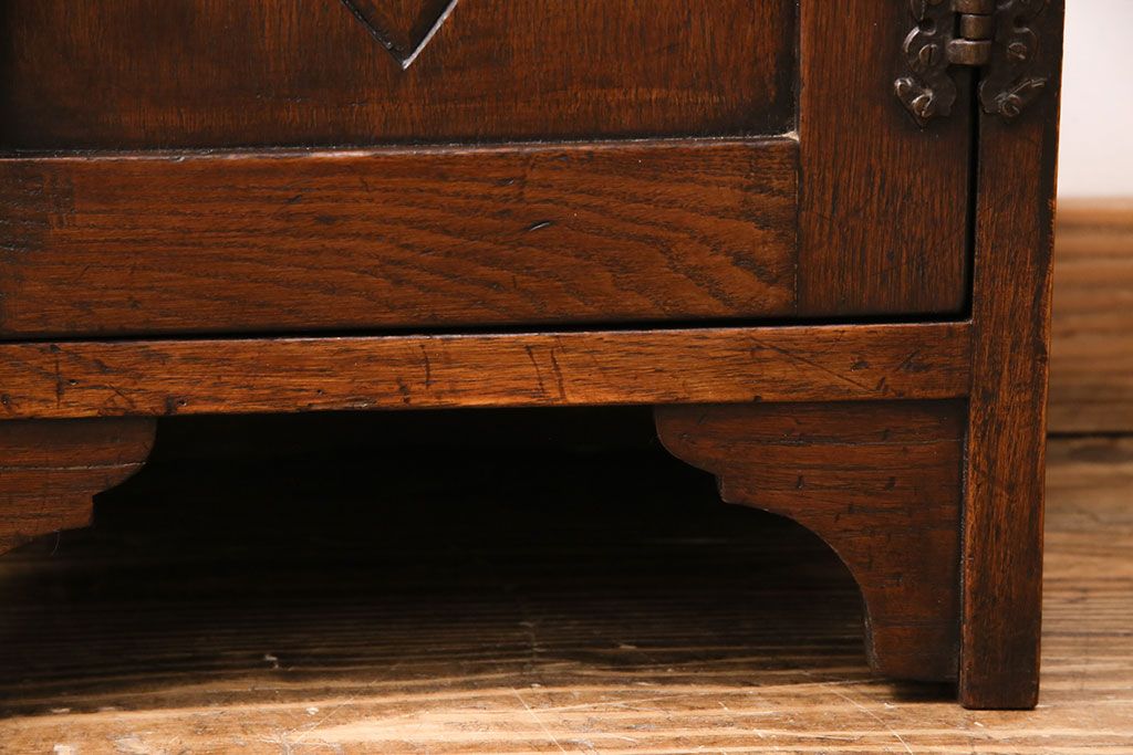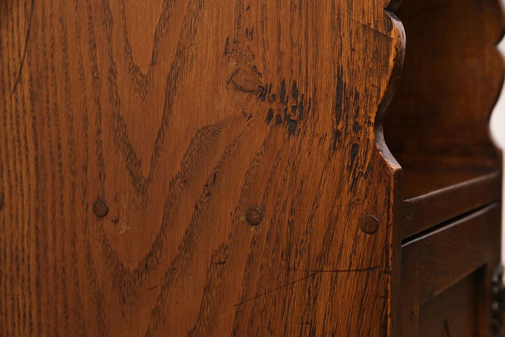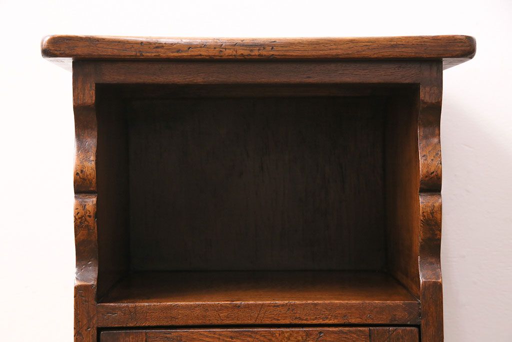 イギリスビンテージ 細やかな意匠が光るニレ材製電話台(サイドキャビネット、収納棚、飾り棚、サイドテーブル)(R-049325)