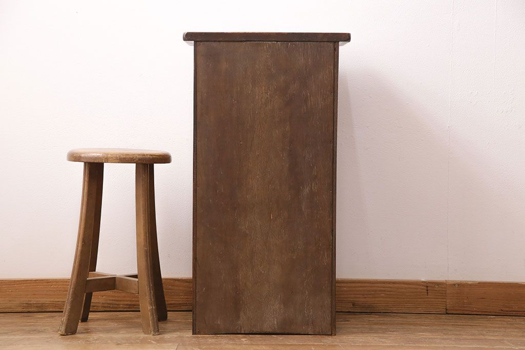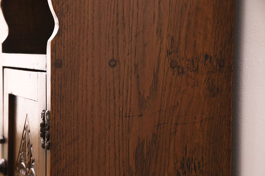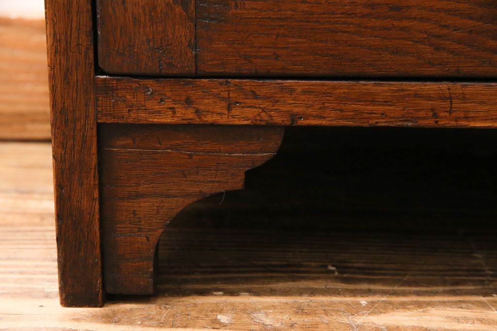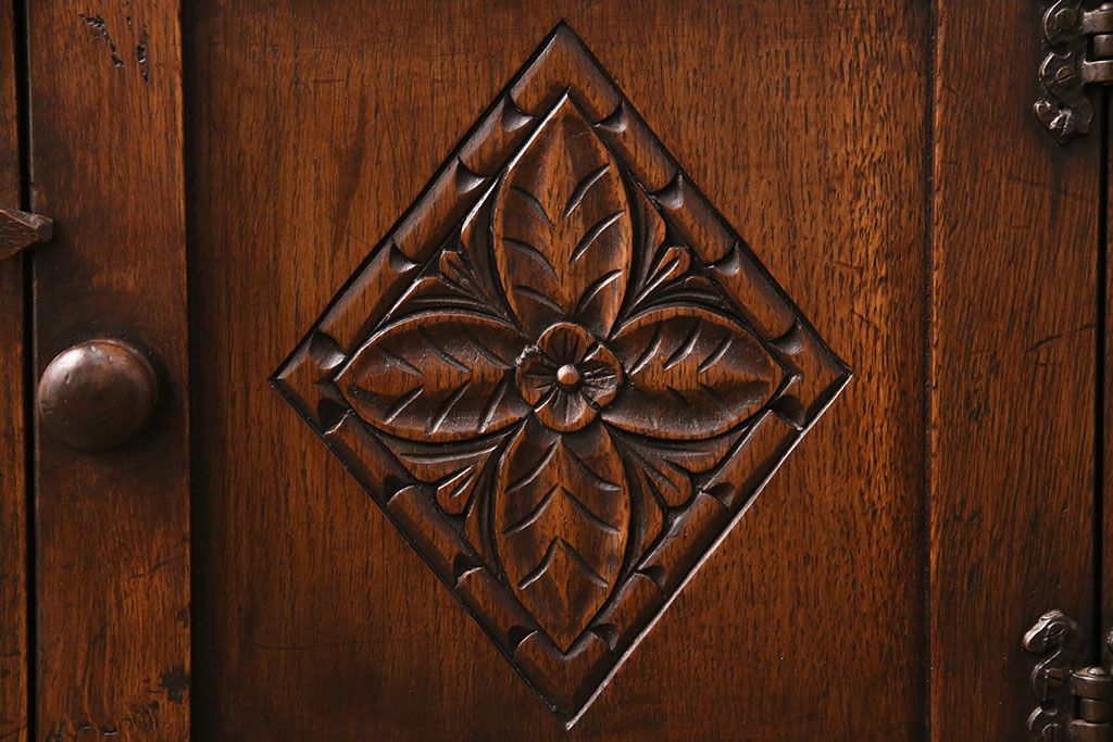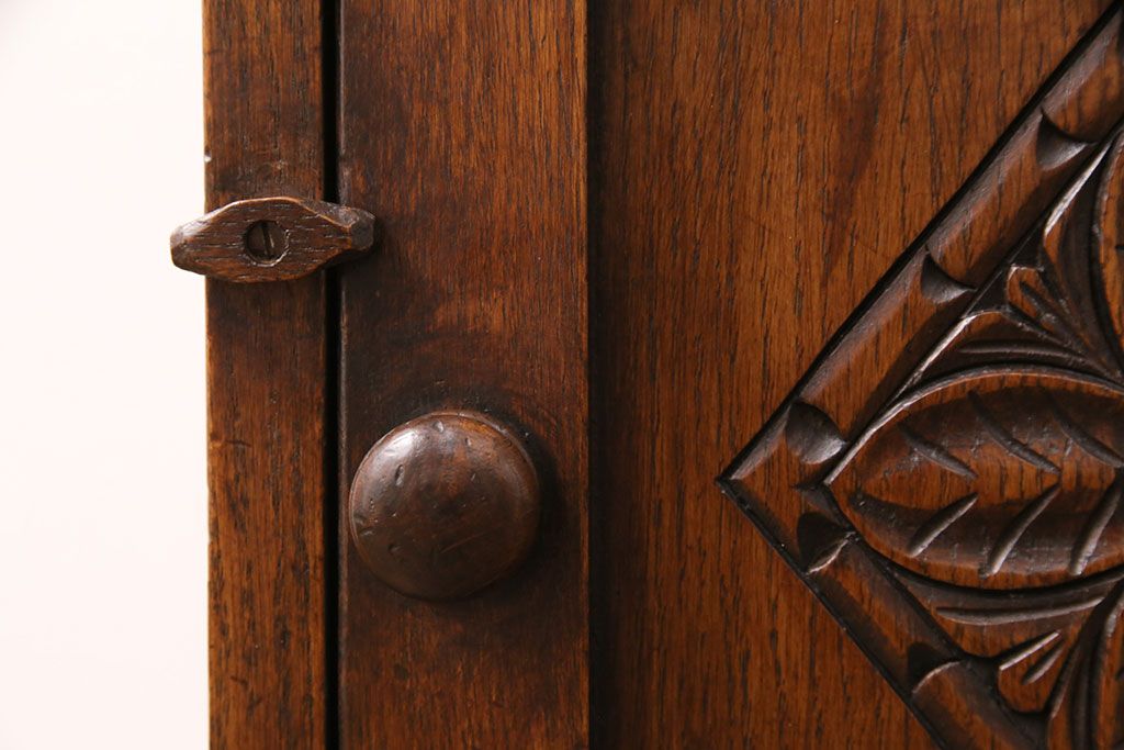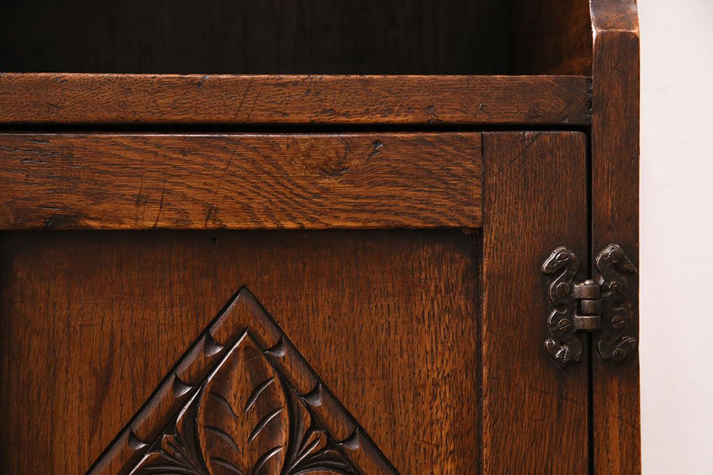 イギリスビンテージ 細やかな意匠が光るニレ材製電話台(サイドキャビネット、収納棚、飾り棚、サイドテーブル)(R-049325)