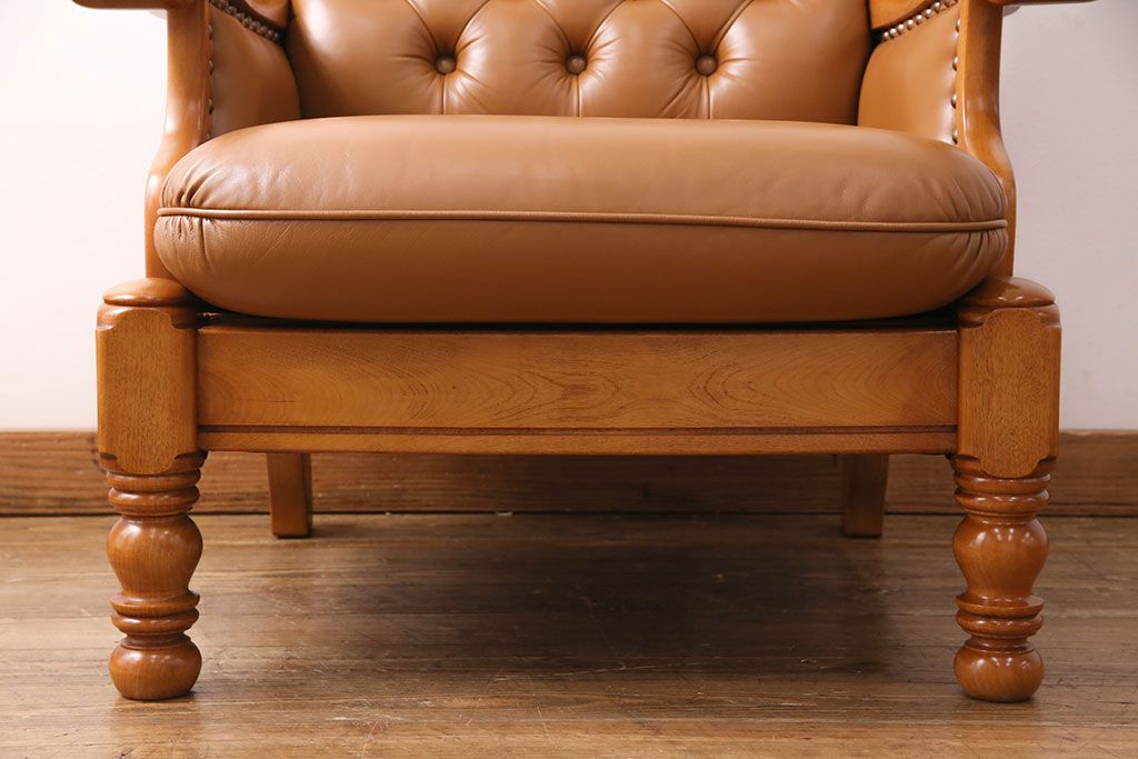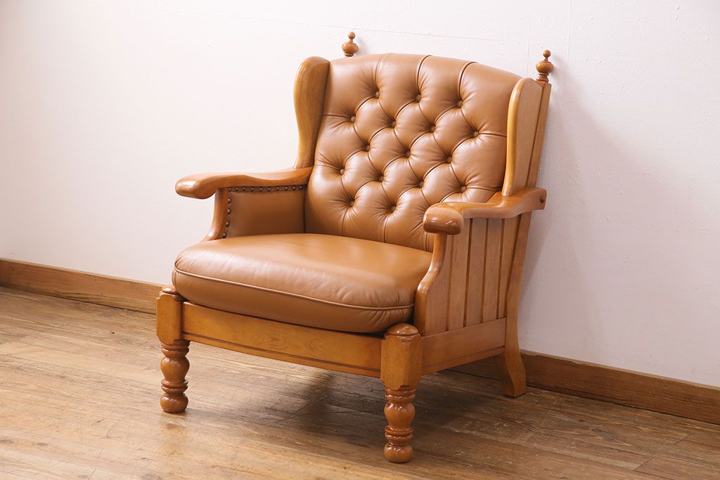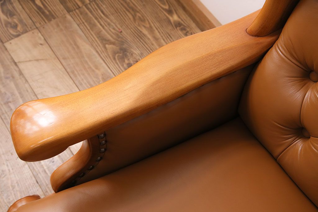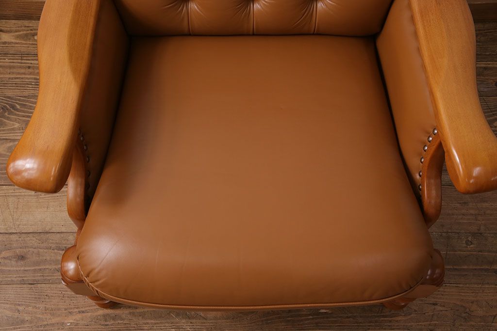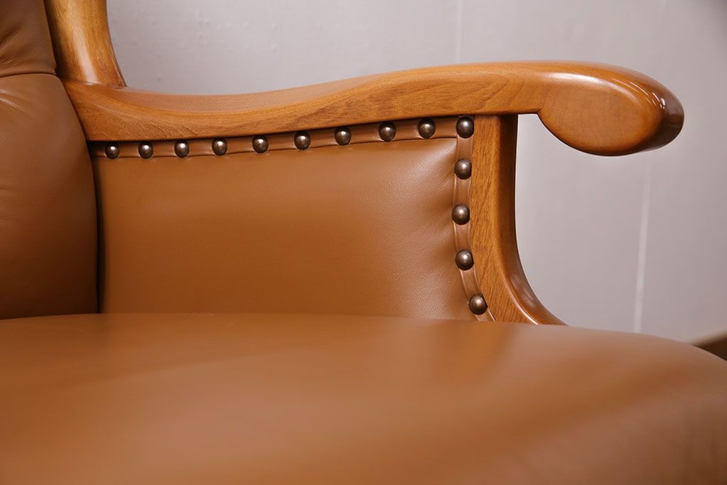 椅子・ベンチ> アームチェア > 中古 横浜クラシック家具 ダニエル(daniel) A-516 レオナアームチェア (Leona) 優雅で高級感漂う本革一人掛けソファ(1Pソファ、アームチェア、ラウンジチェア)(R-049332)