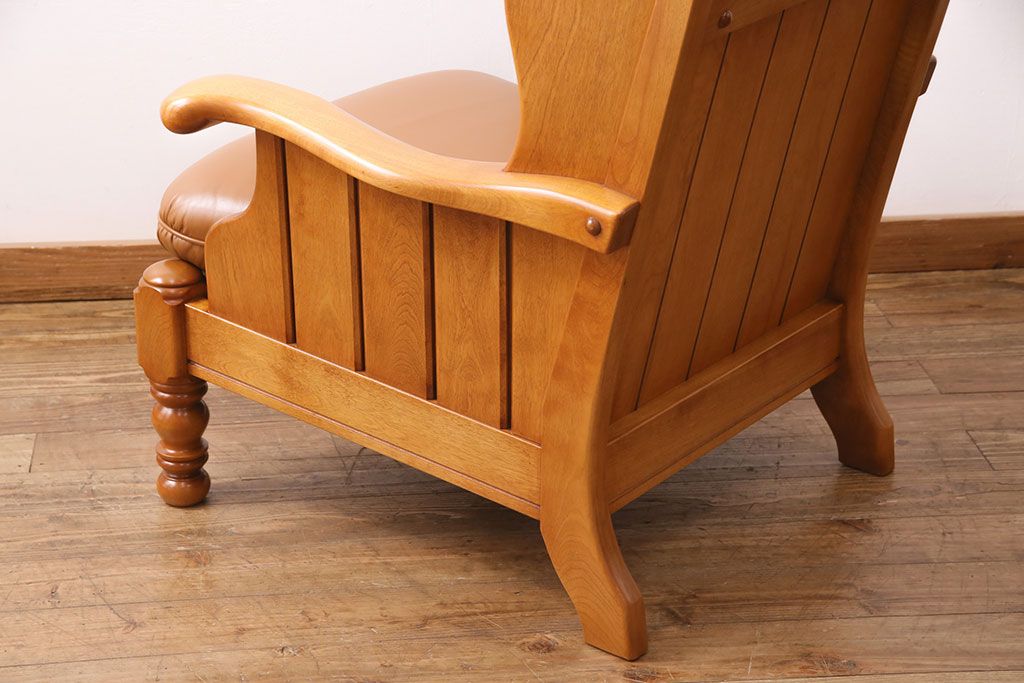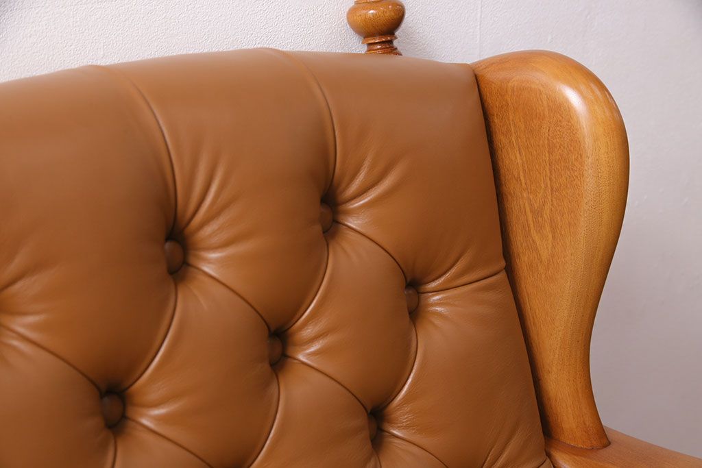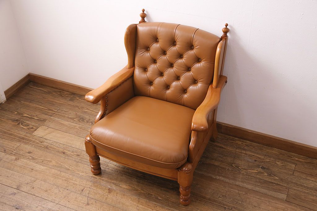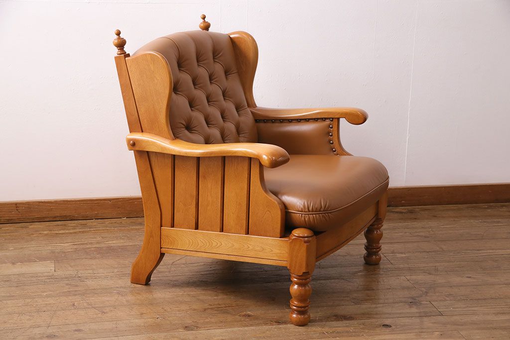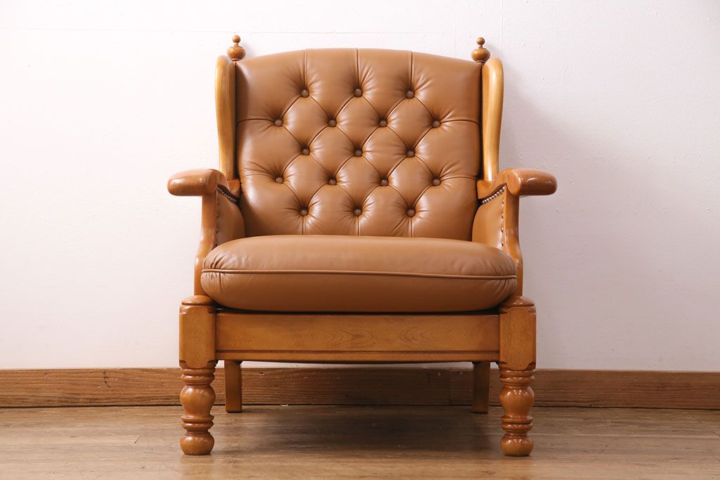 中古 横浜クラシック家具 ダニエル(daniel) A-516 レオナアームチェア (Leona) 優雅で高級感漂う本革一人掛けソファ(1Pソファ、アームチェア、ラウンジチェア)(R-049332)