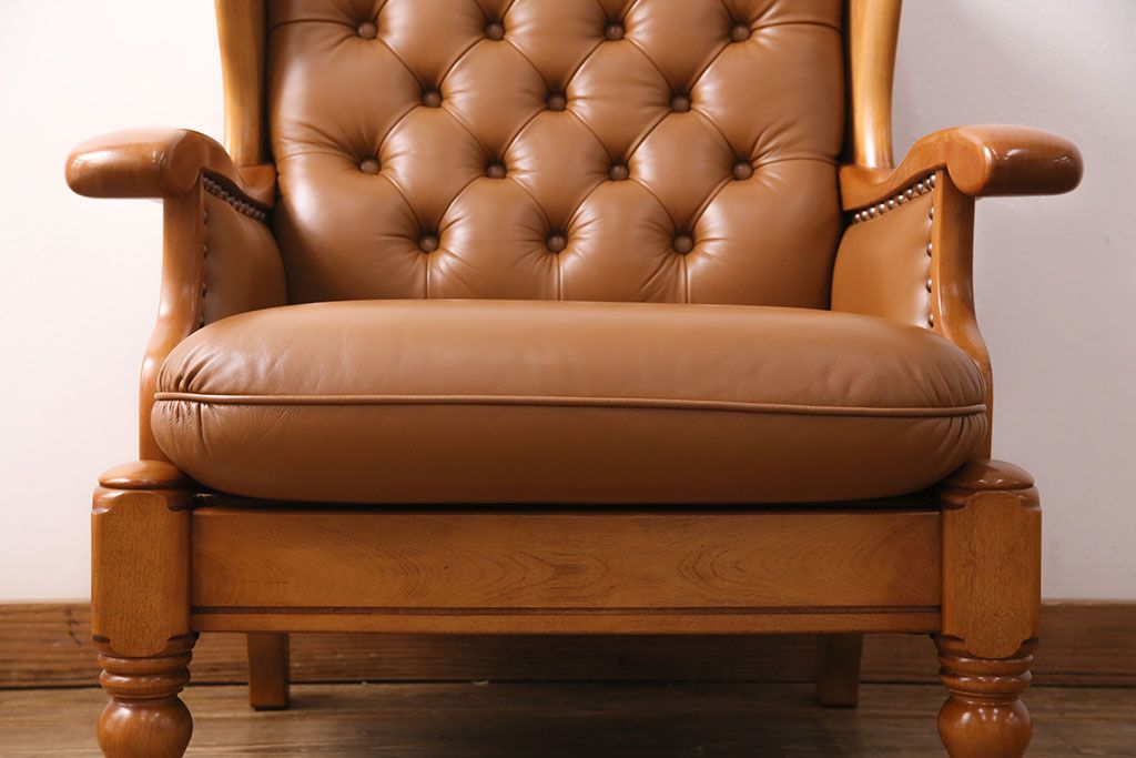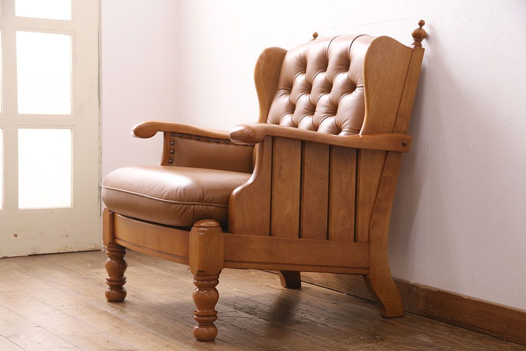 椅子・ベンチ> ラウンジチェア > 中古 横浜クラシック家具 ダニエル(daniel) A-516 レオナアームチェア (Leona) 優雅で高級感漂う本革一人掛けソファ(1Pソファ、アームチェア、ラウンジチェア)(R-049332)