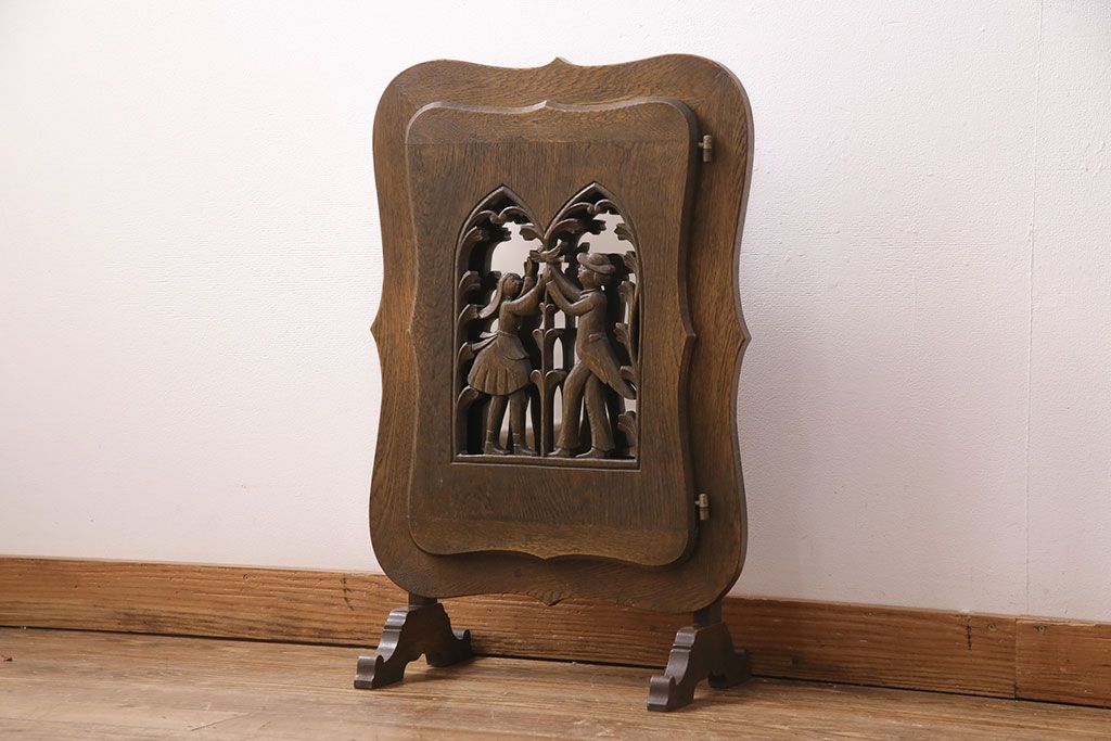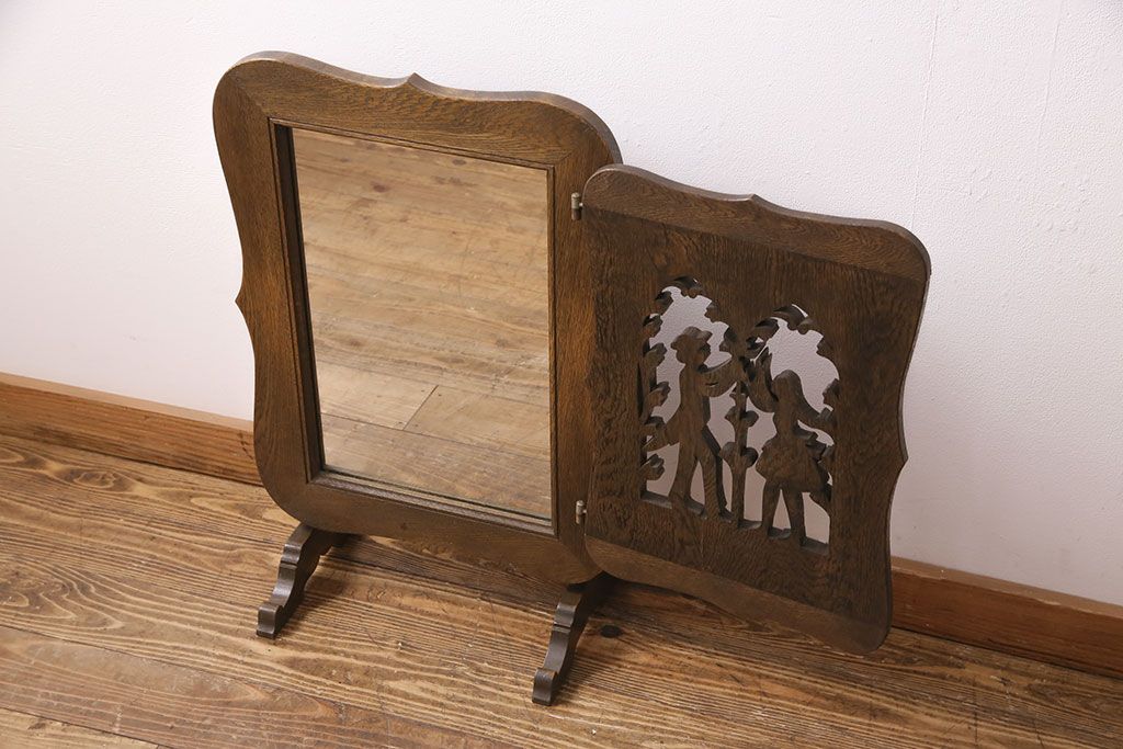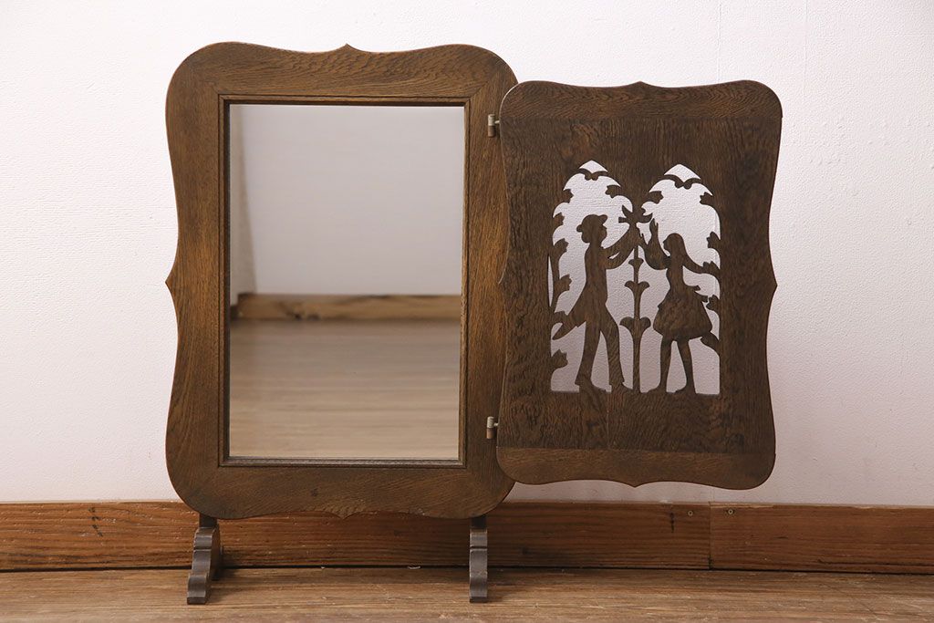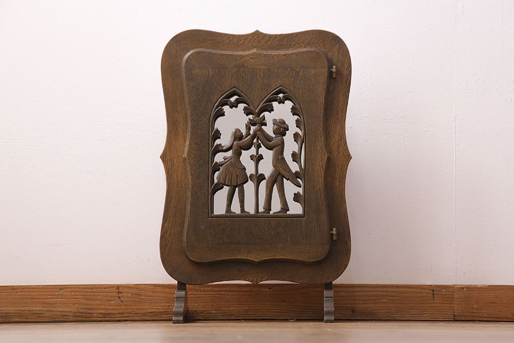 ビンテージ雑貨 神戸洋家具 永田良介商店 希少 まるで美術品!空間のメインアイテムとしておすすめの彫刻ミラー(鏡、姿見)(R-049336)