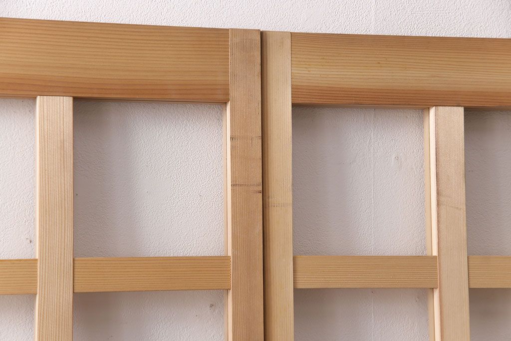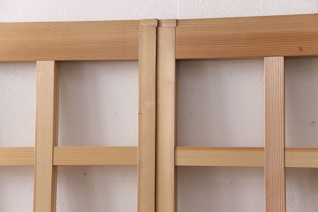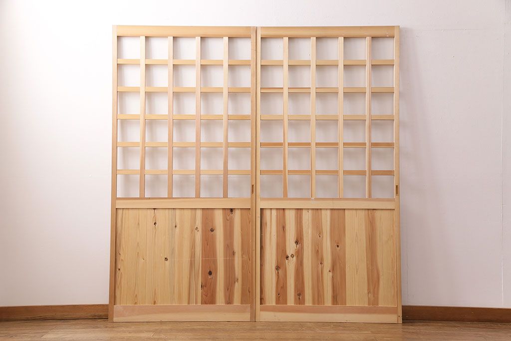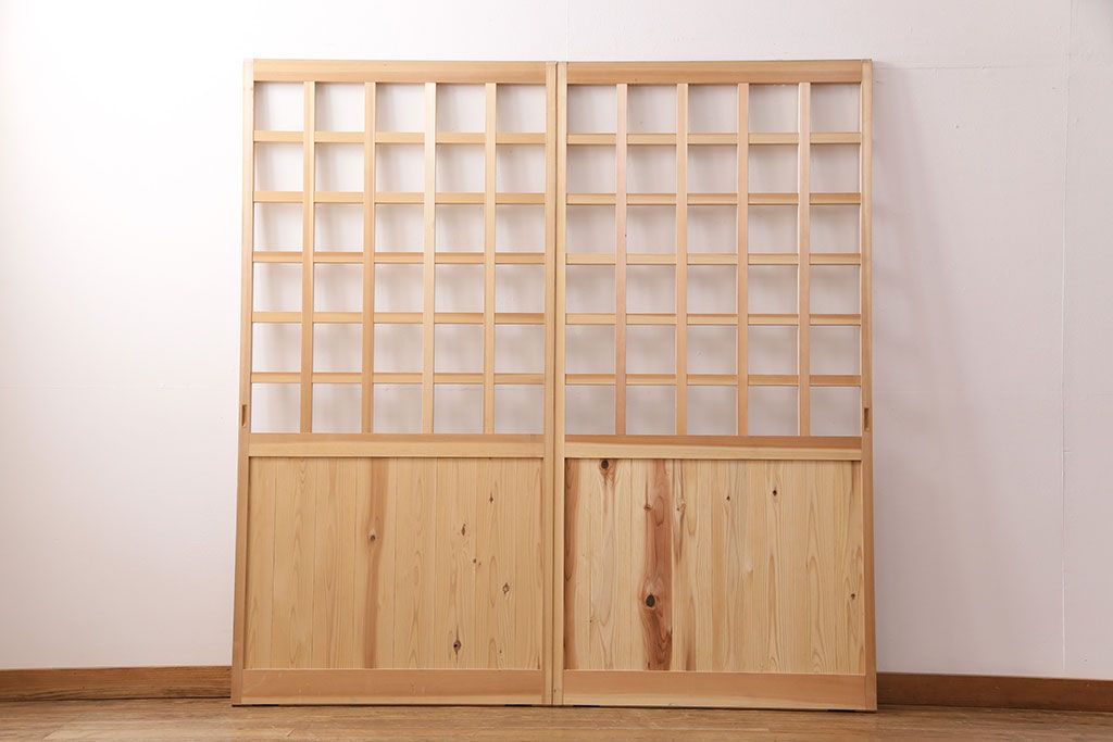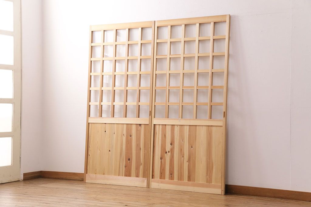 ドア・建具> 格子戸 > 昭和レトロ 和モダンにおすすめ!明るい木色が魅力的な升目格子のガラス戸2枚セット(引き戸、建具、格子戸)(R-049210)