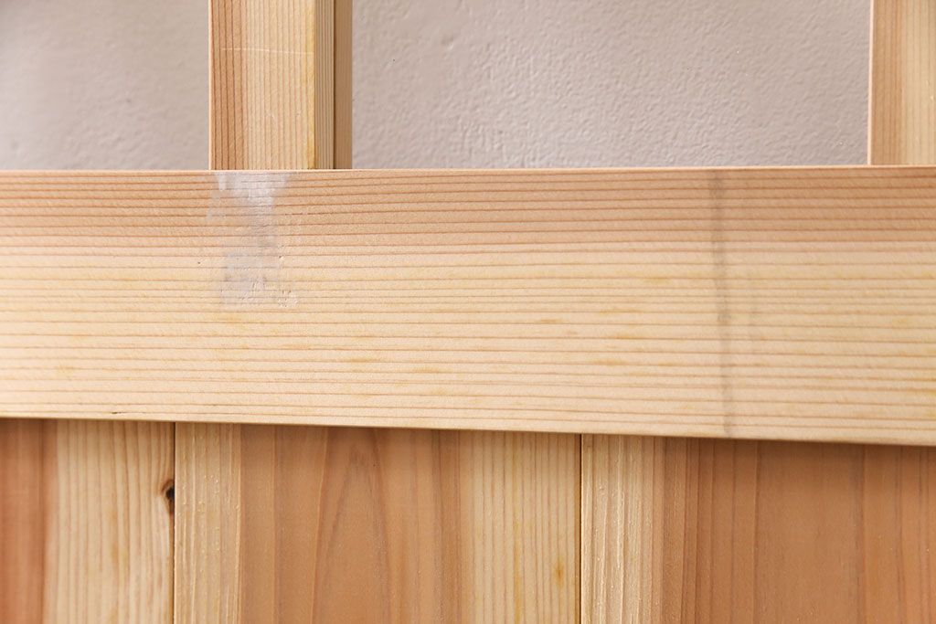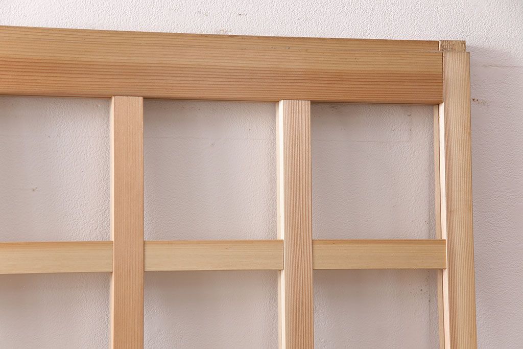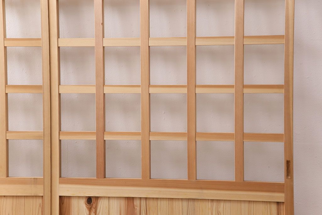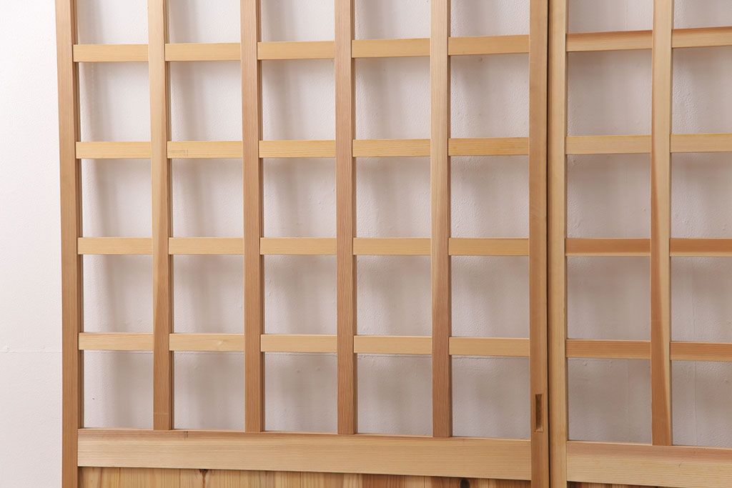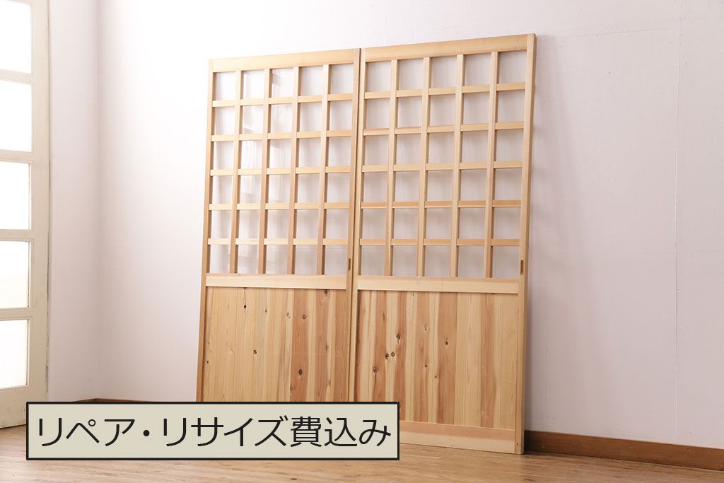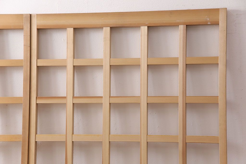 ドア・建具> 格子戸 > 昭和レトロ 和モダンにおすすめ!明るい木色が魅力的な升目格子のガラス戸2枚セット(引き戸、建具、格子戸)(R-049210)
