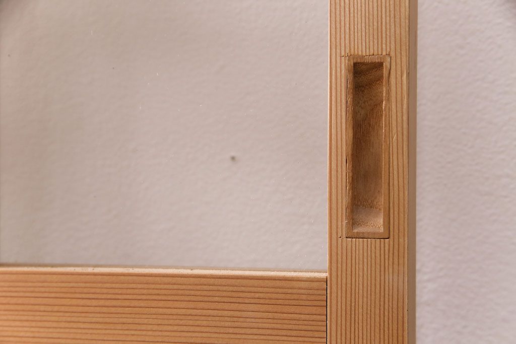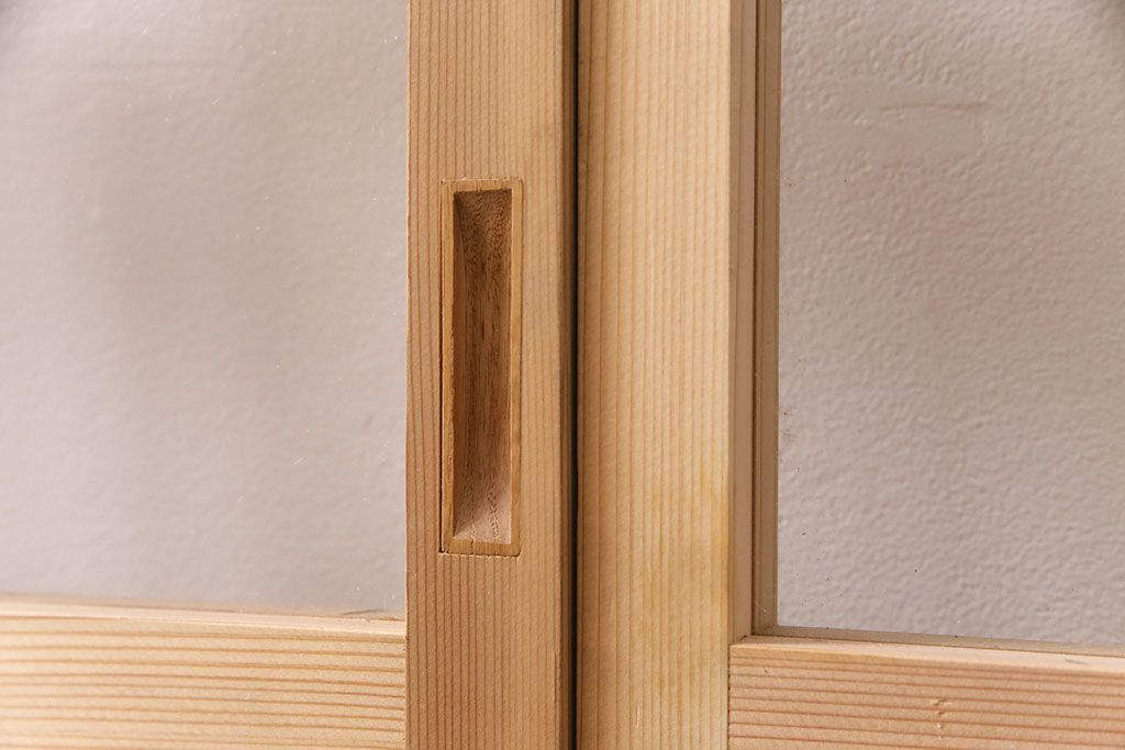 ドア・建具> ガラス戸 > 昭和レトロ 和モダンにおすすめ!明るい木色が魅力的な升目格子のガラス戸2枚セット(引き戸、建具、格子戸)(R-049210)