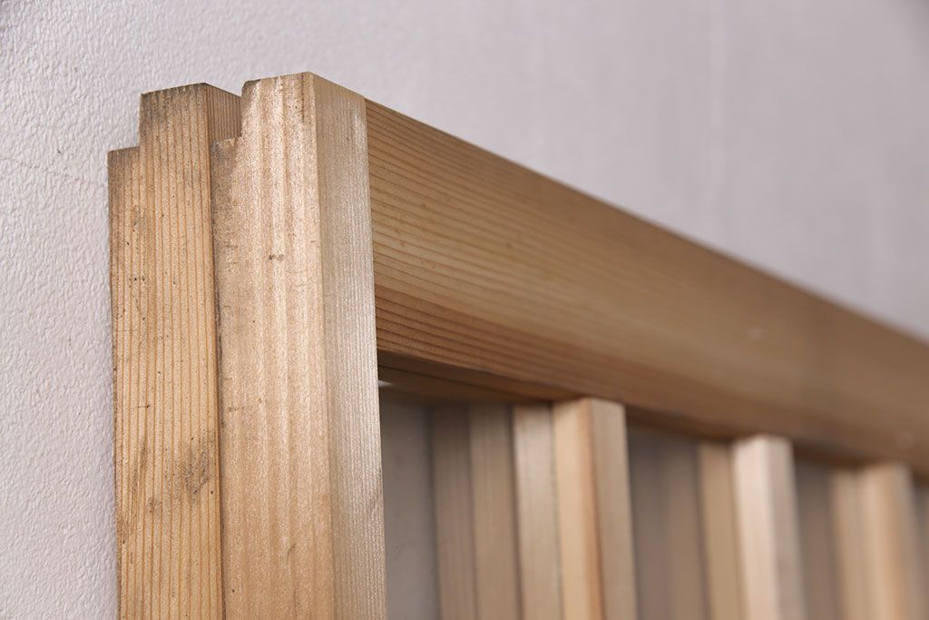 状態が気になる方には現状販売はおすすめできませんので、慎重なご検討をお願いいたします。昭和レトロ 和モダンにおすすめ!明るい木色が魅力的な升目格子のガラス戸2枚セット(引き戸、建具、格子戸)(R-049210)です。