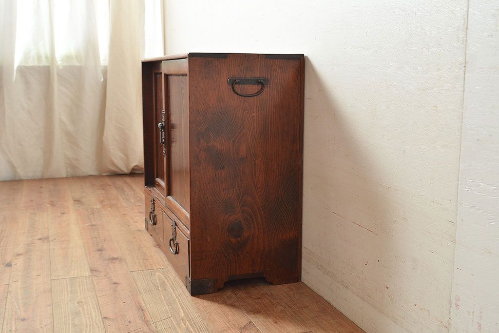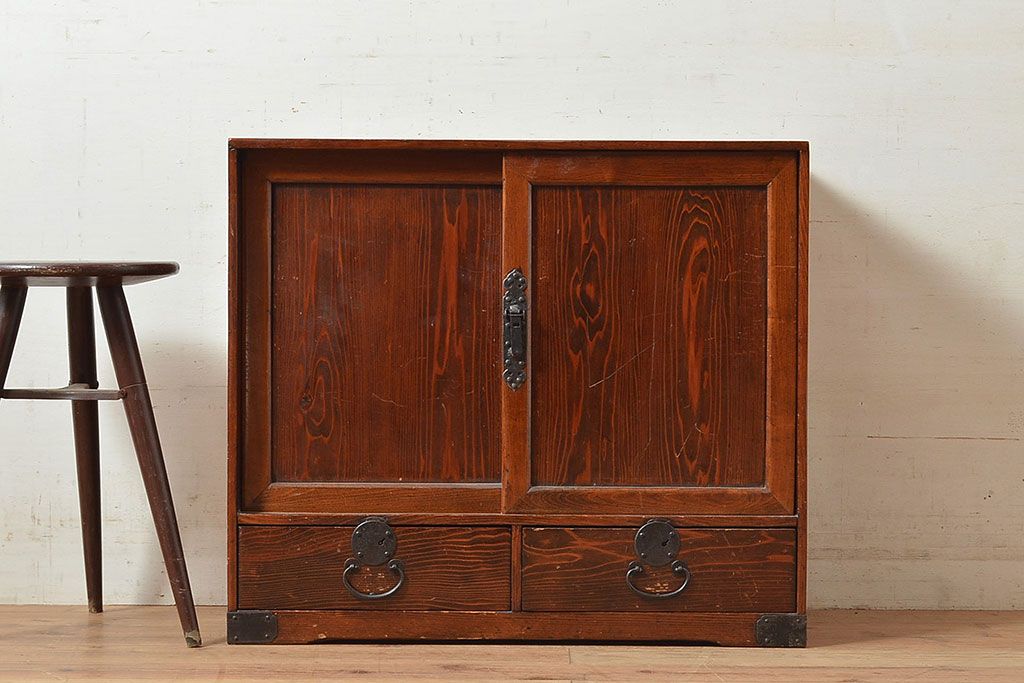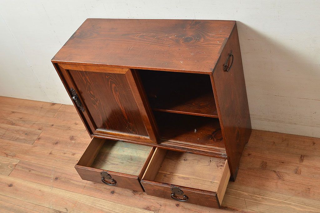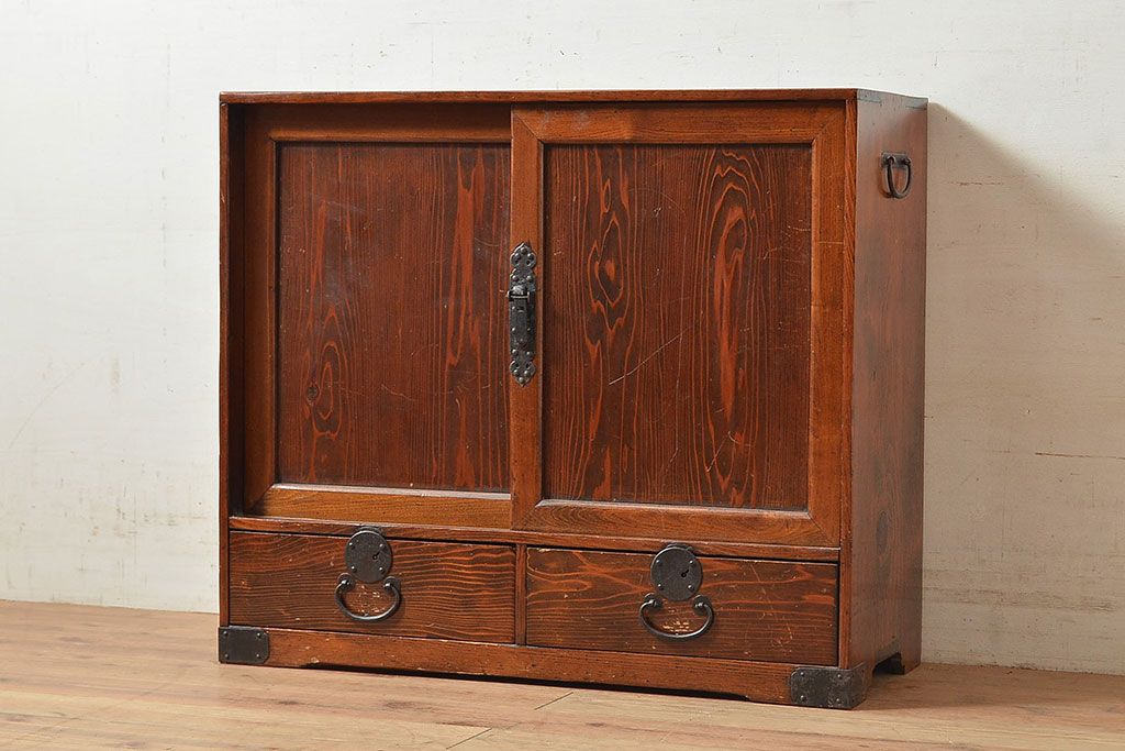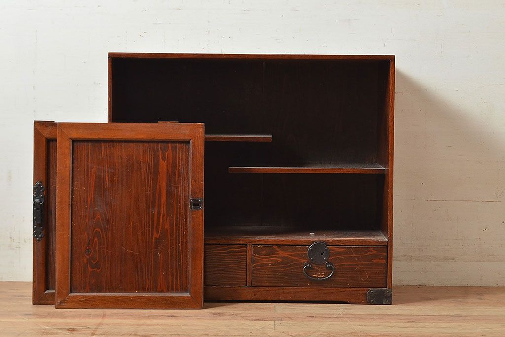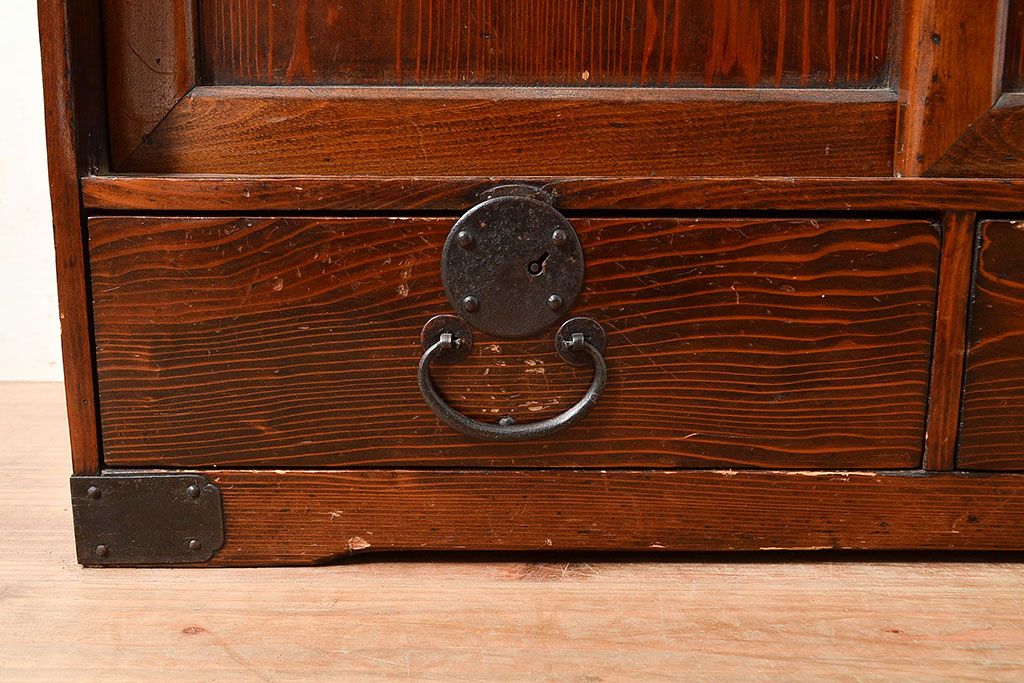 和製アンティーク 前面ケヤキ材 年月を重ねた木の味わいが楽しめる明治期の古い戸棚(収納棚)(R-048185)です。