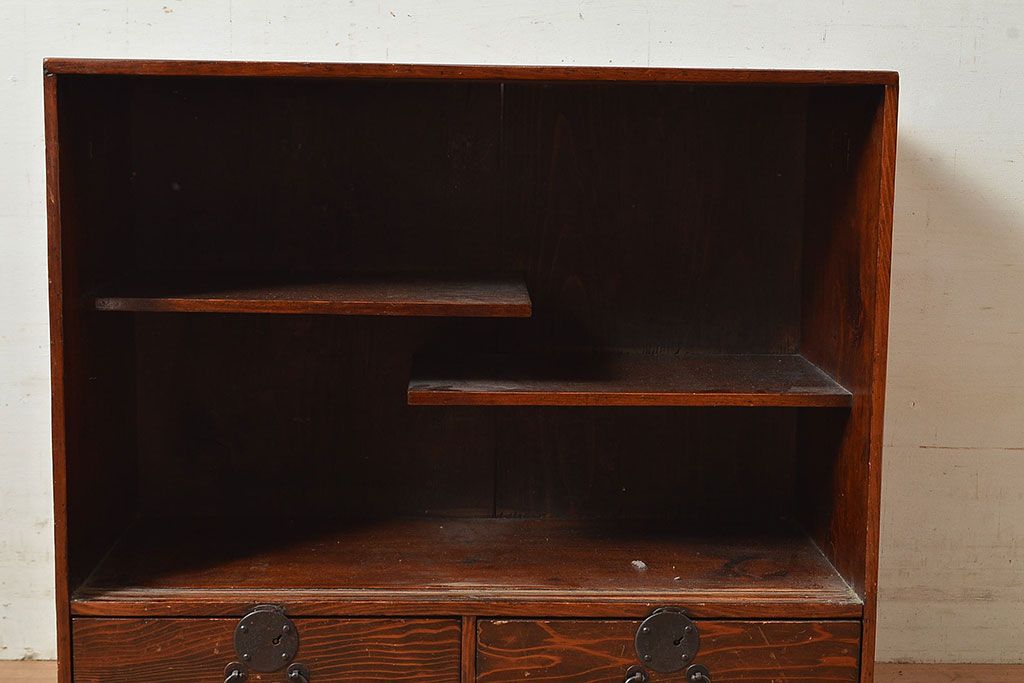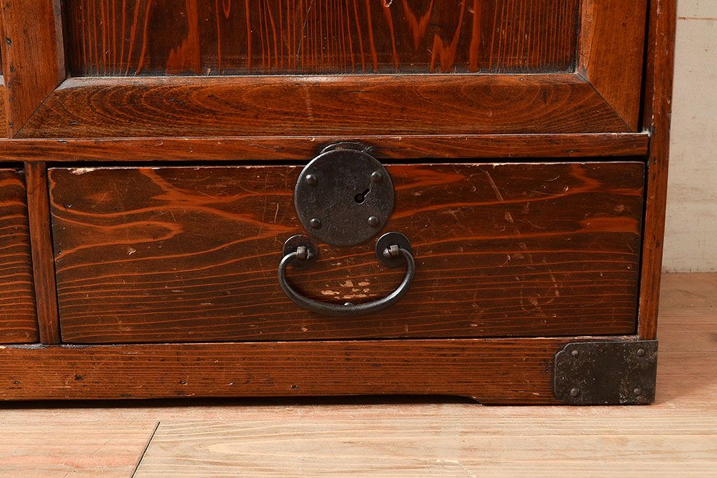 キャビネット・戸棚 > 和製アンティーク 前面ケヤキ材 年月を重ねた木の味わいが楽しめる明治期の古い戸棚(収納棚)(R-048185)
