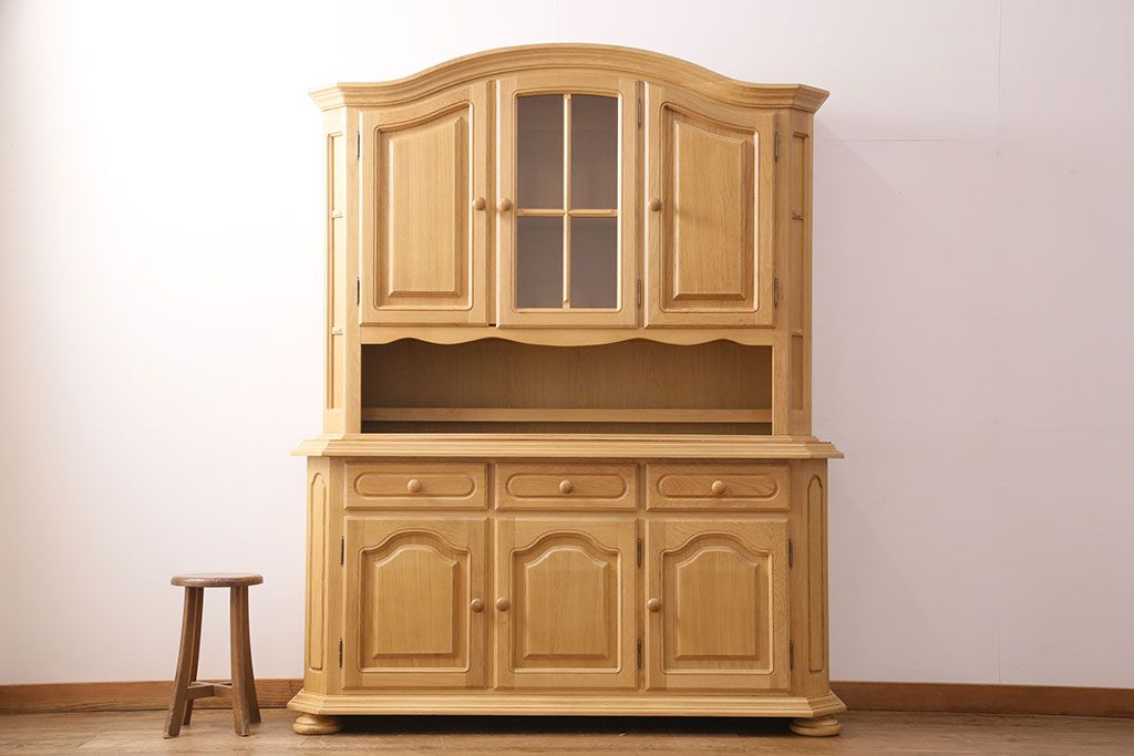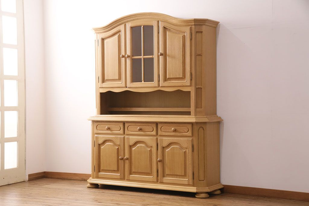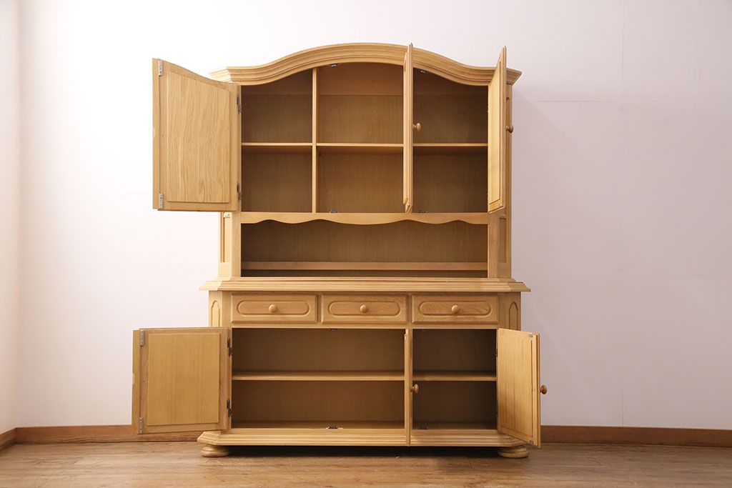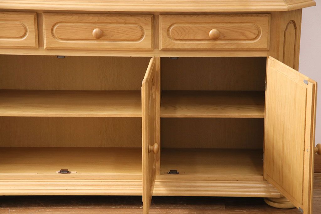 新古品 展示品 ベルギー輸入家具 明るい色合いが木のぬくもりを感じるオーク材製のキャビネット(定価約38万円)(食器棚、収納棚)(R-049304)