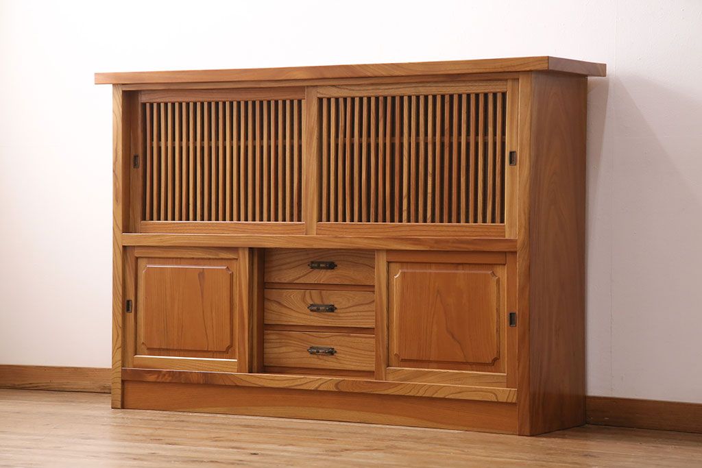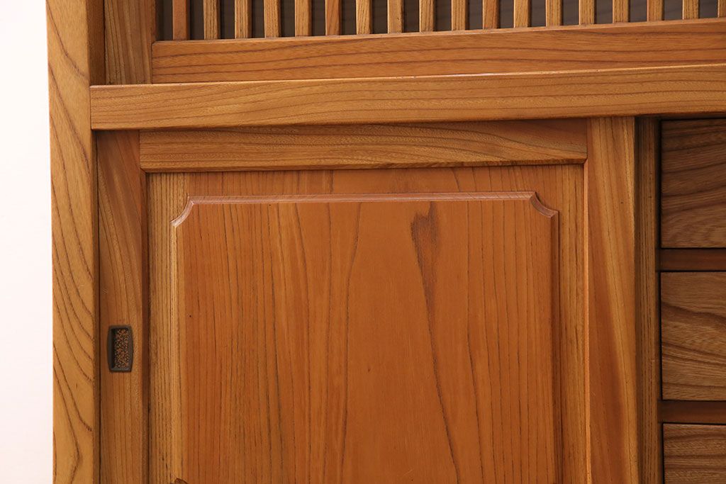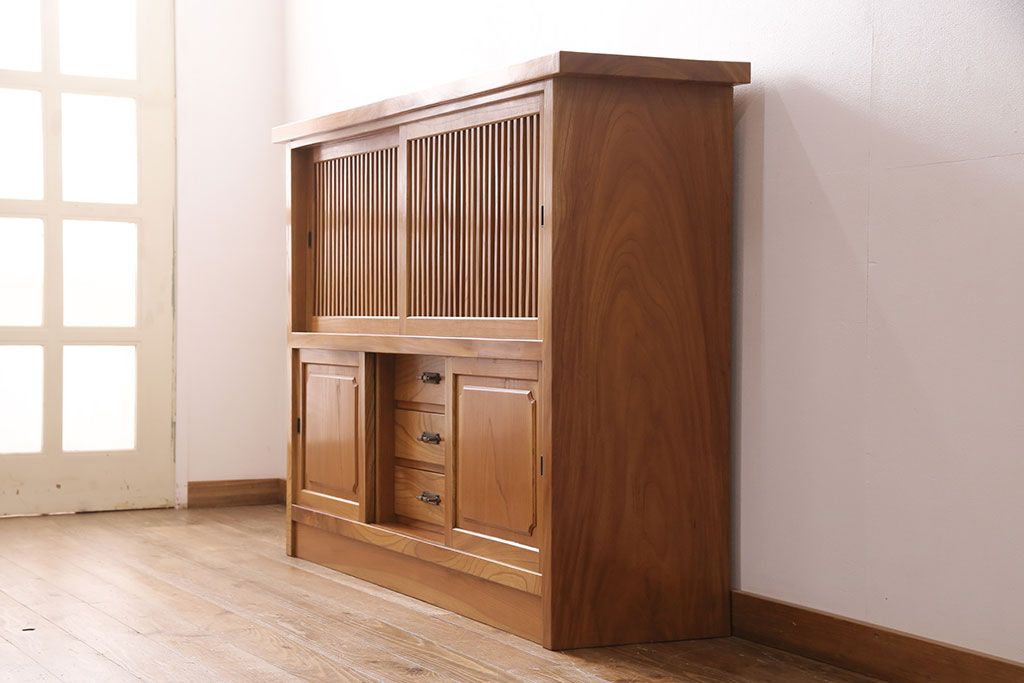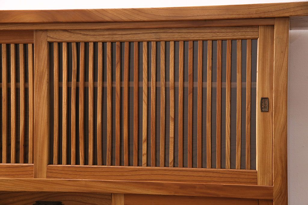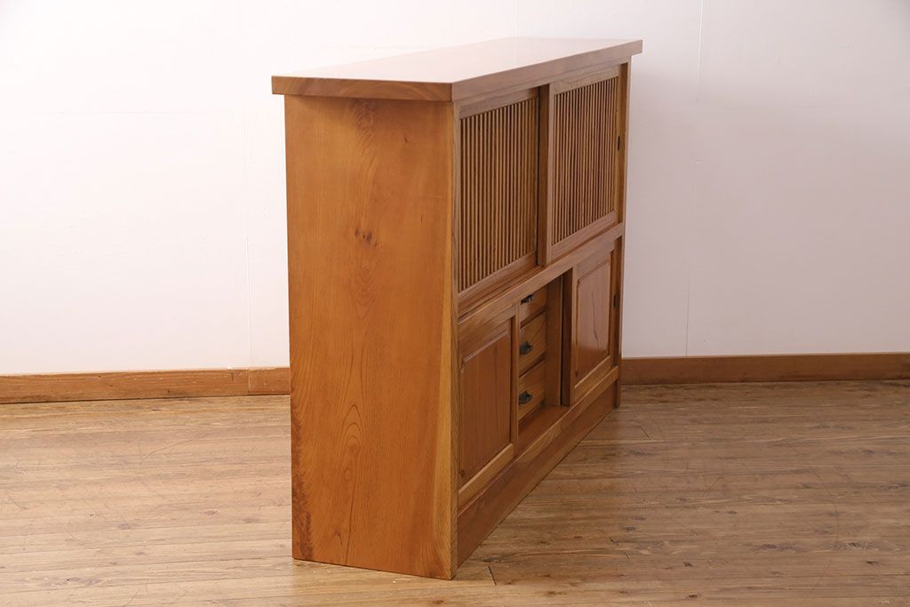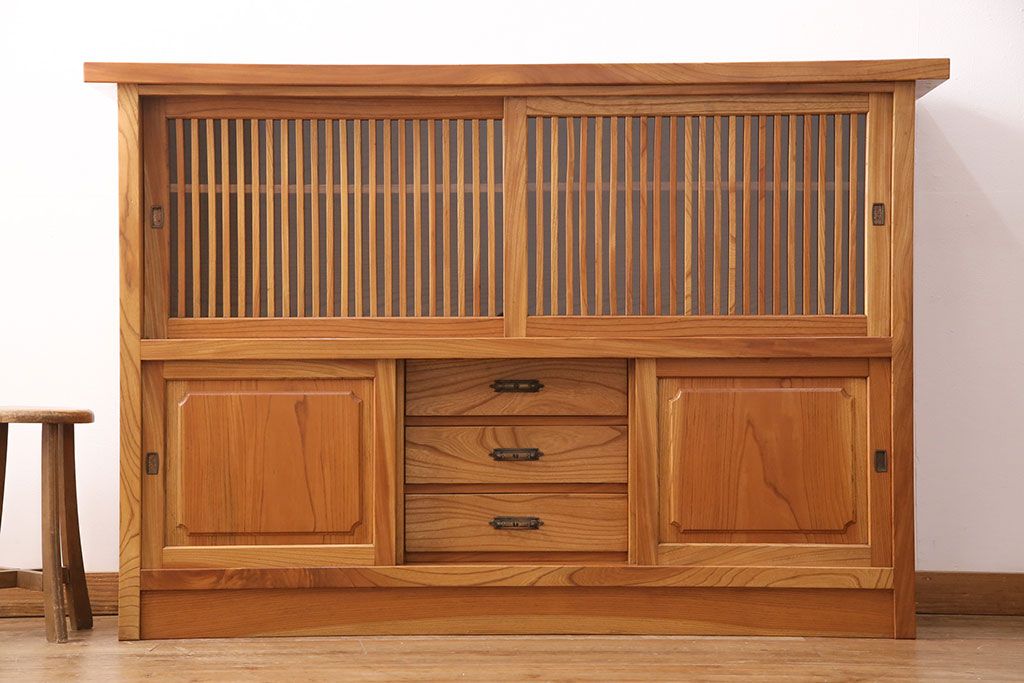 和箪笥 > 和製ヴィンテージ 民芸家具 総ケヤキ材 風情漂う空間作りに!厚みのある材でつくられた重厚な佇まいの戸棚(定価約120万円)(サイドボード、収納棚、キャビネット、ビンテージ)(R-049307)
