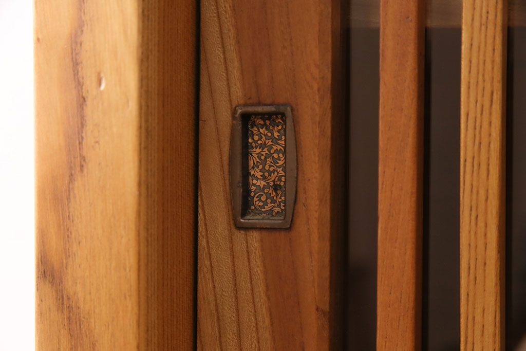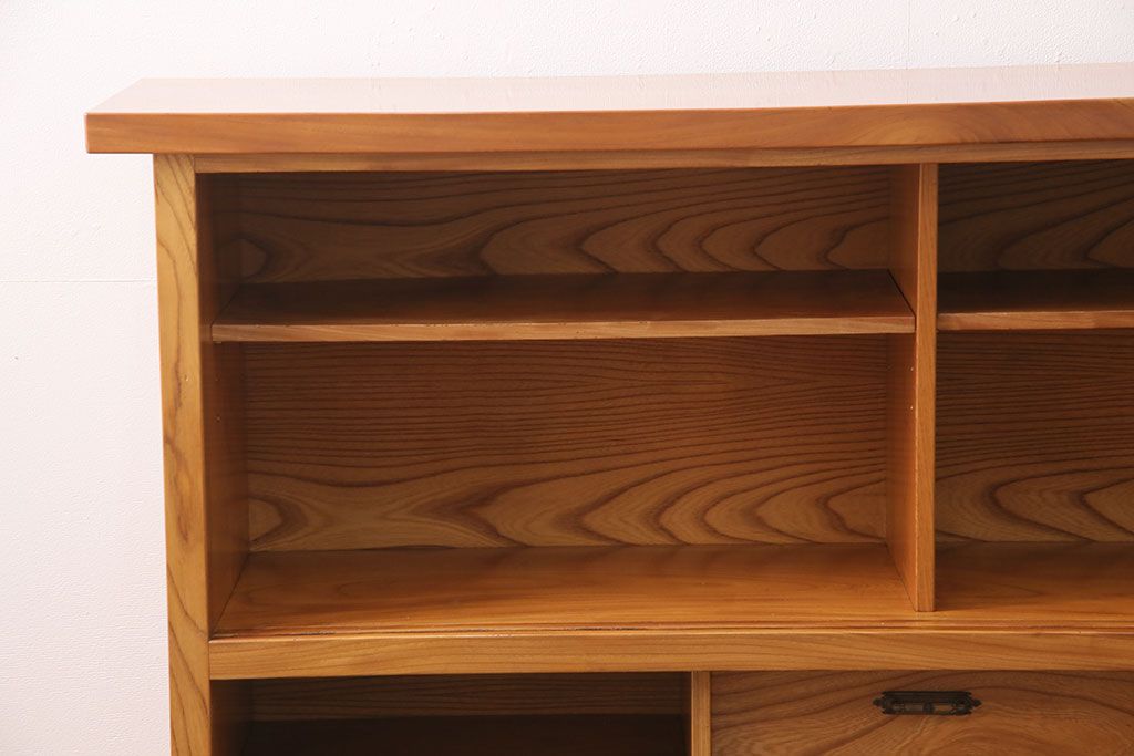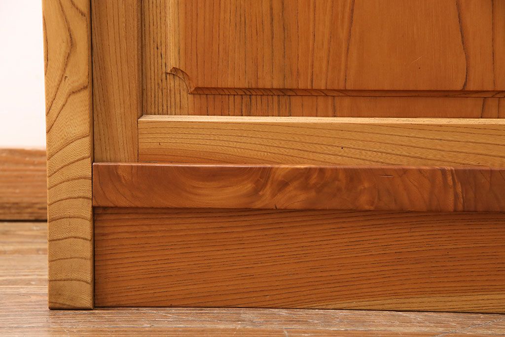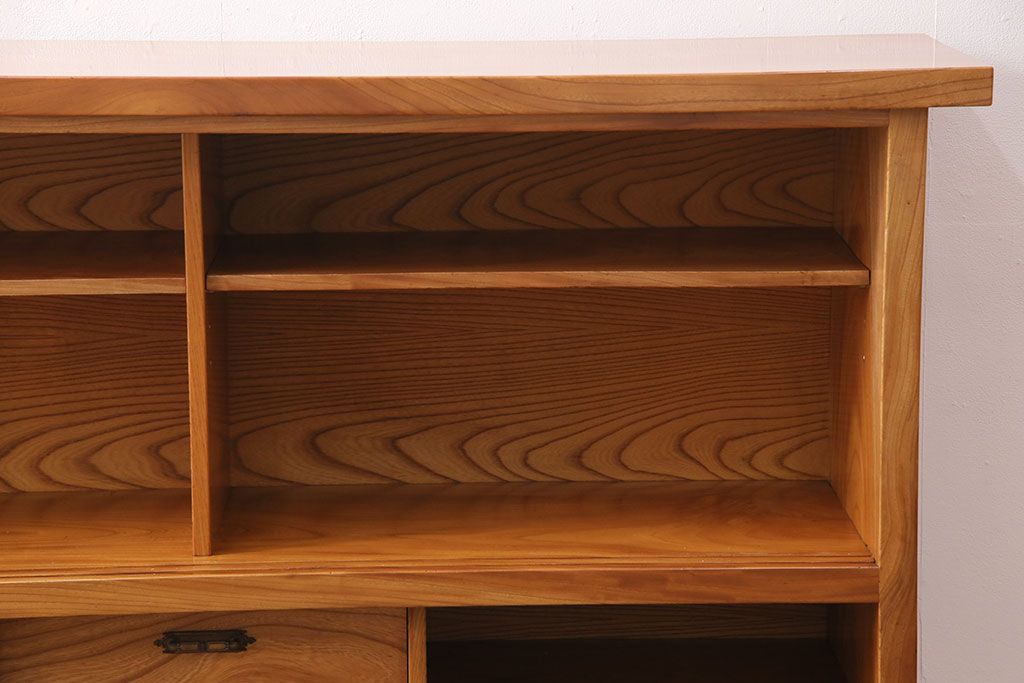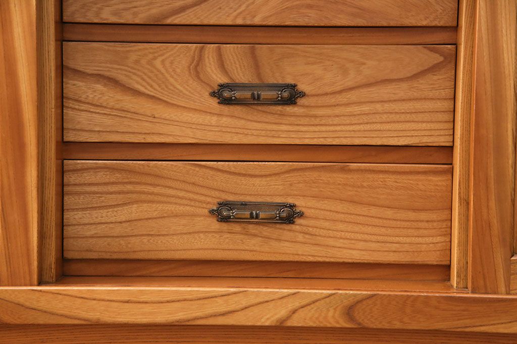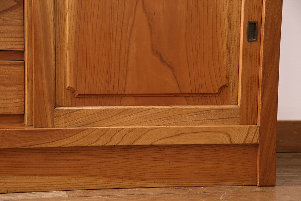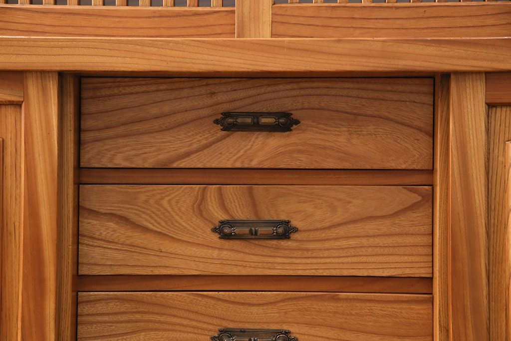 和箪笥 > 和製ヴィンテージ 民芸家具 総ケヤキ材 風情漂う空間作りに!厚みのある材でつくられた重厚な佇まいの戸棚(定価約120万円)(サイドボード、収納棚、キャビネット、ビンテージ)(R-049307)