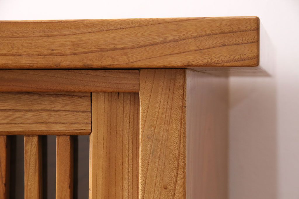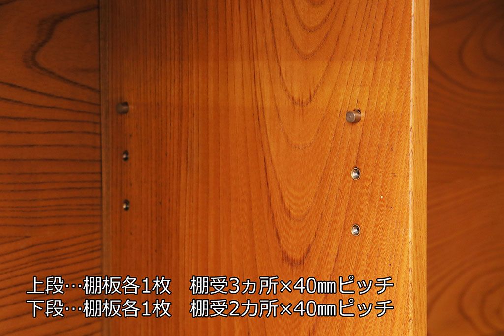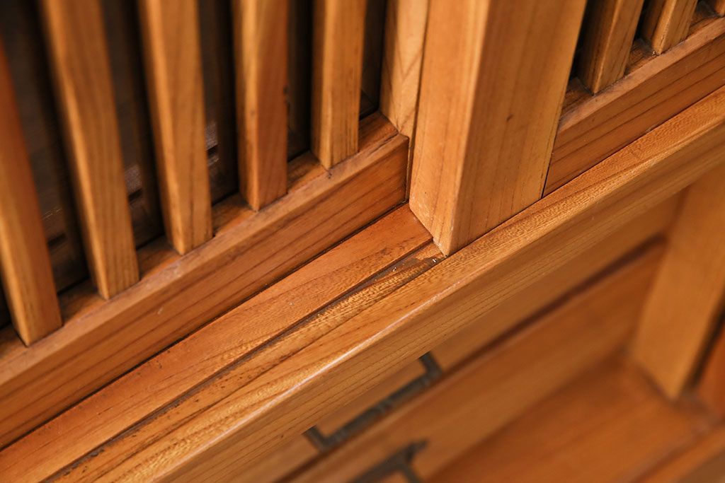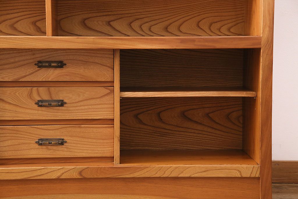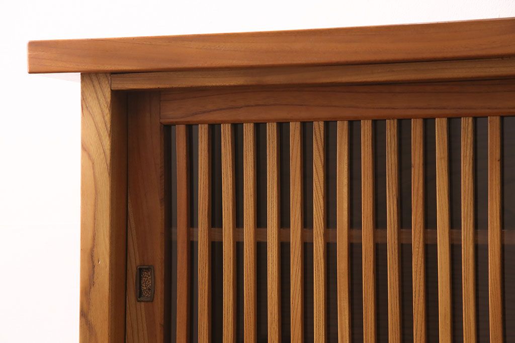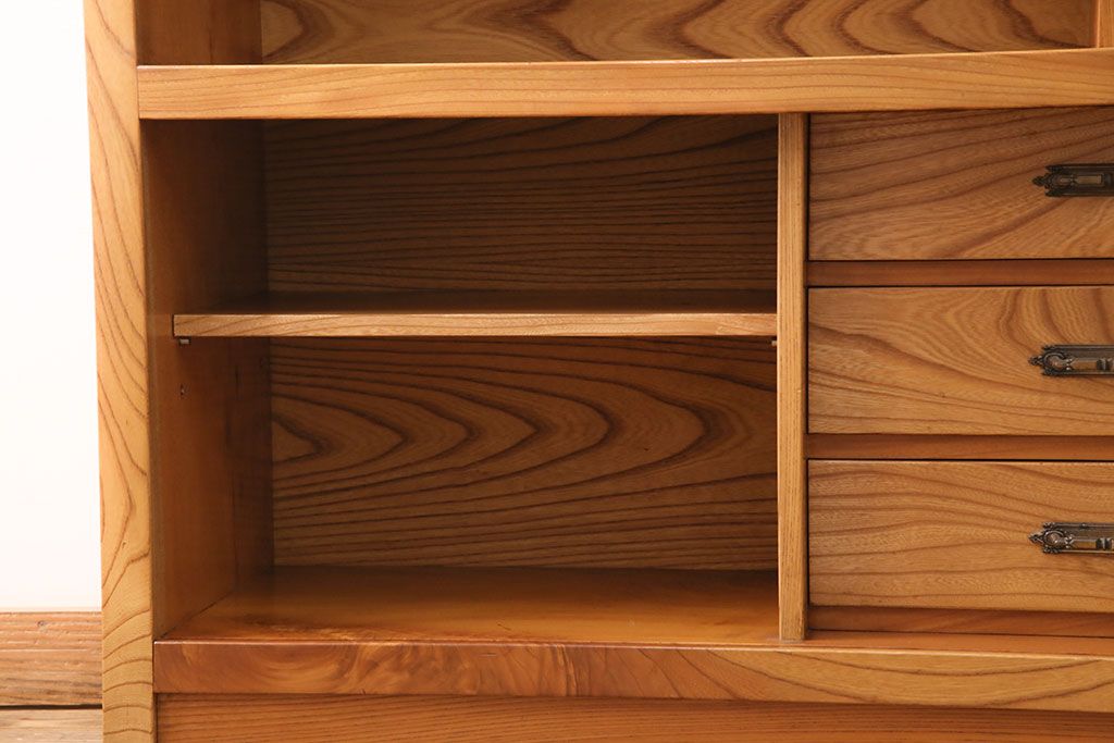 和箪笥 > 和製ヴィンテージ 民芸家具 総ケヤキ材 風情漂う空間作りに!厚みのある材でつくられた重厚な佇まいの戸棚(定価約120万円)(サイドボード、収納棚、キャビネット、ビンテージ)(R-049307)