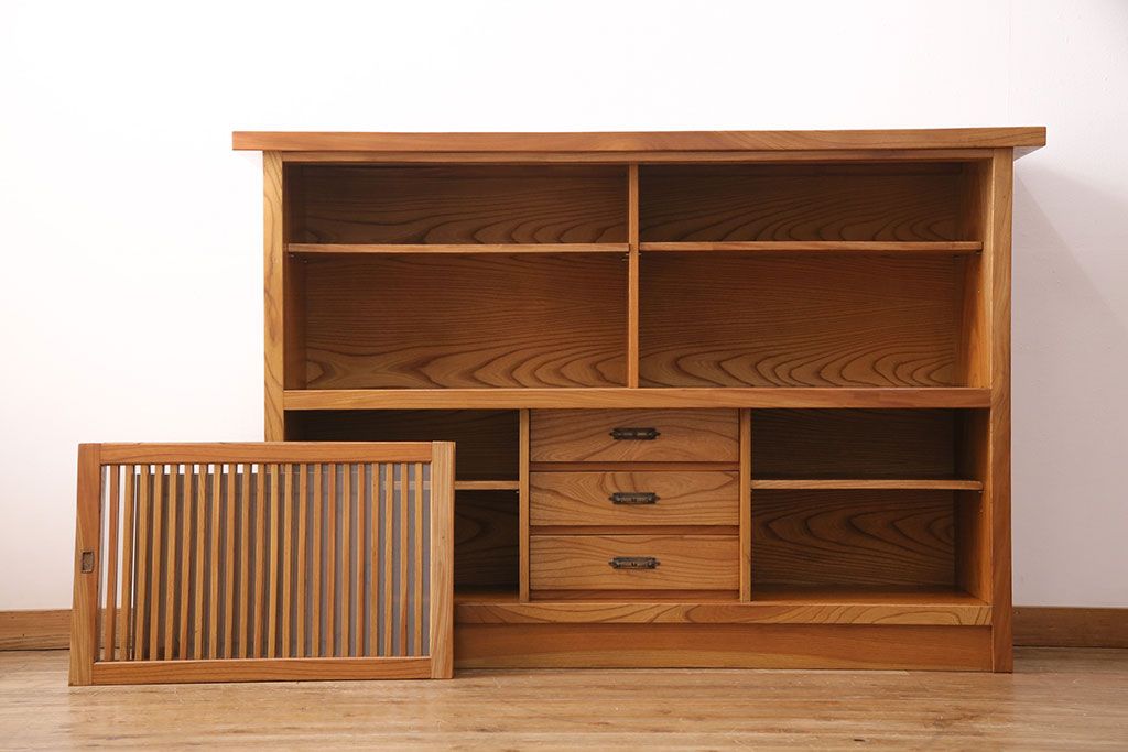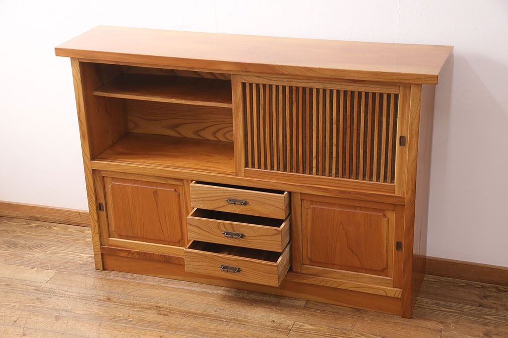 和製ヴィンテージ 民芸家具 総ケヤキ材 風情漂う空間作りに!厚みのある材でつくられた重厚な佇まいの戸棚(定価約120万円)(サイドボード、収納棚、キャビネット)(R-049307)です。