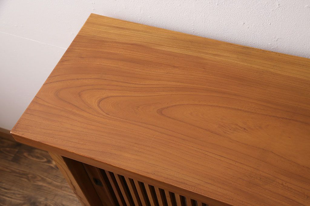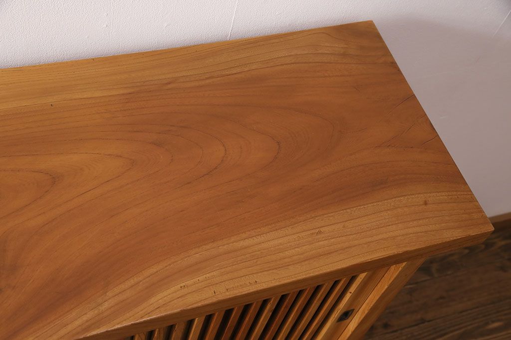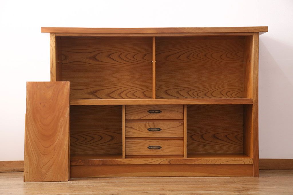和製ヴィンテージ 民芸家具 総ケヤキ材 風情漂う空間作りに!厚みのある材でつくられた重厚な佇まいの戸棚(定価約120万円)(サイドボード、収納棚、キャビネット、ビンテージ)(R-049307)