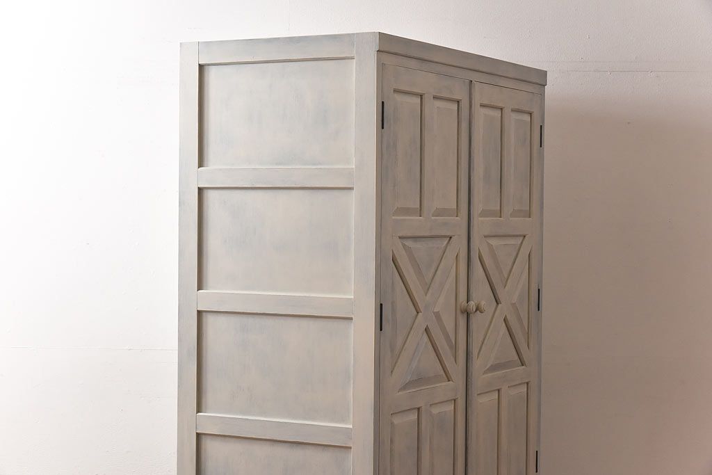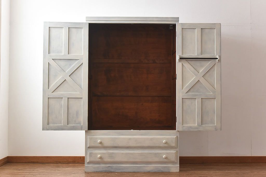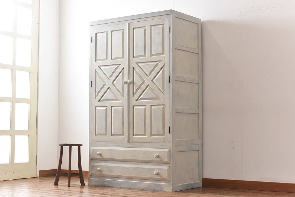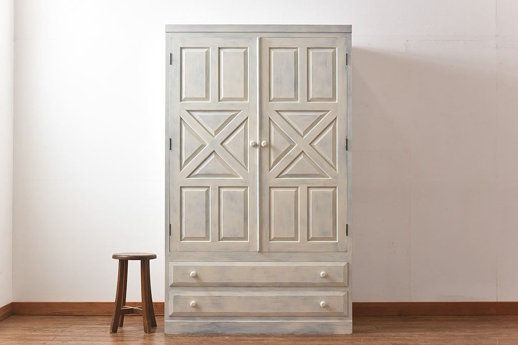 ワードローブ・ロッカー> ワードローブ > 松本民芸家具のD型洋服箪笥をリペア&カスタム!可動部の調整を行い、アンティークホワイトのペイント仕上げ。(収納箪笥、引き出し)