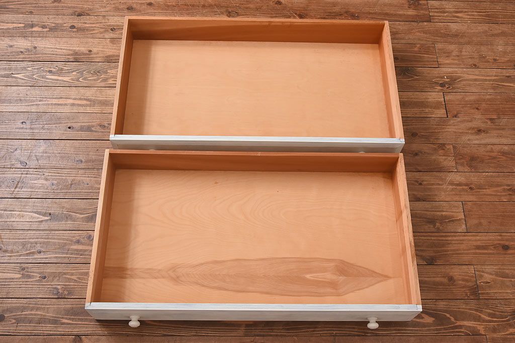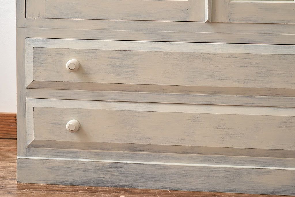 松本民芸家具のD型洋服箪笥をリペア&カスタム!可動部の調整を行い、アンティークホワイトのペイント仕上げ。(収納箪笥、引き出し)