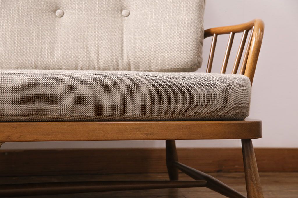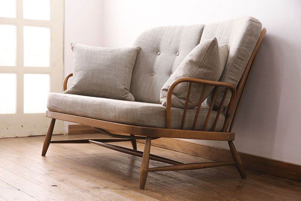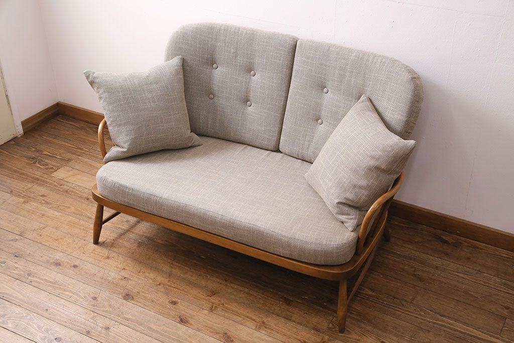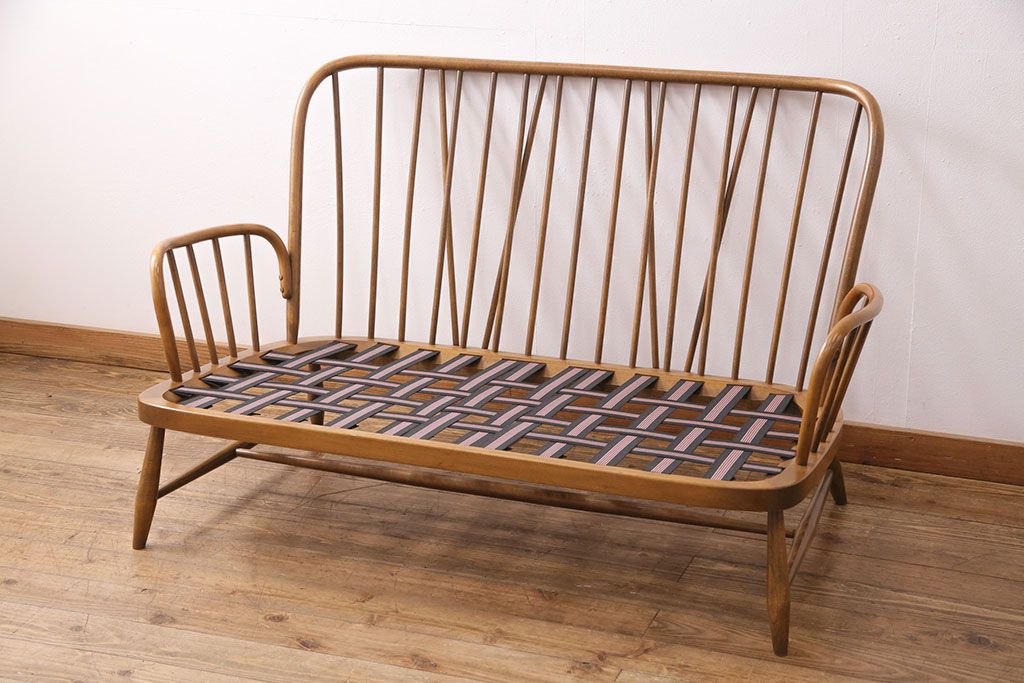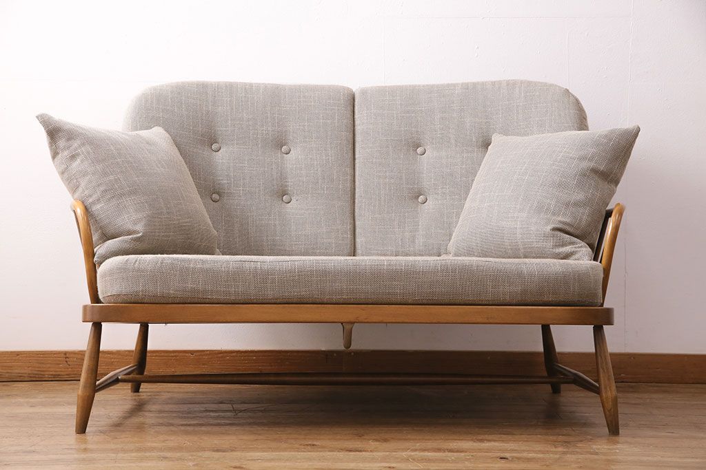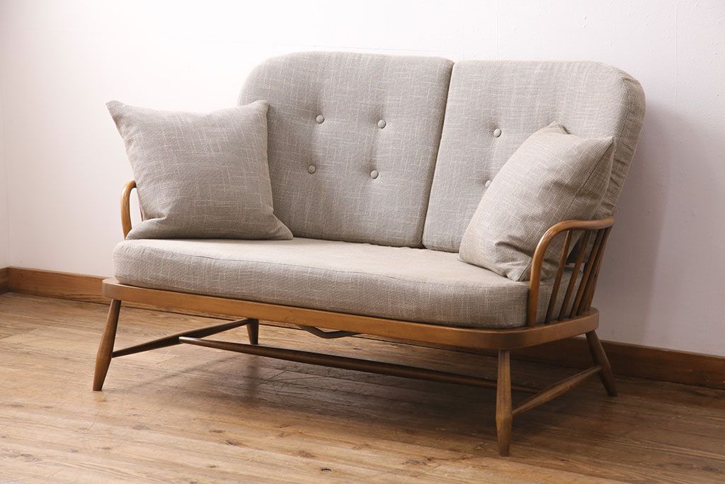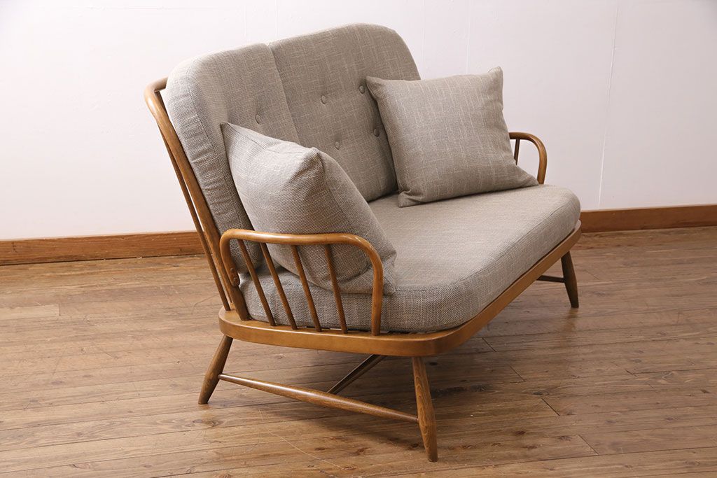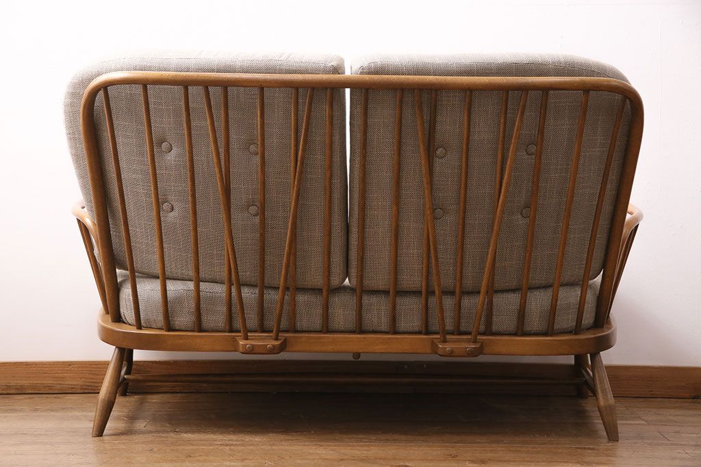 ビンテージ家具 イギリスヴィンテージ ERCOL(アーコール) 木のぬくもりとナチュラルな雰囲気が魅力的な二人掛けソファ(2Pソファ)(R-049335)