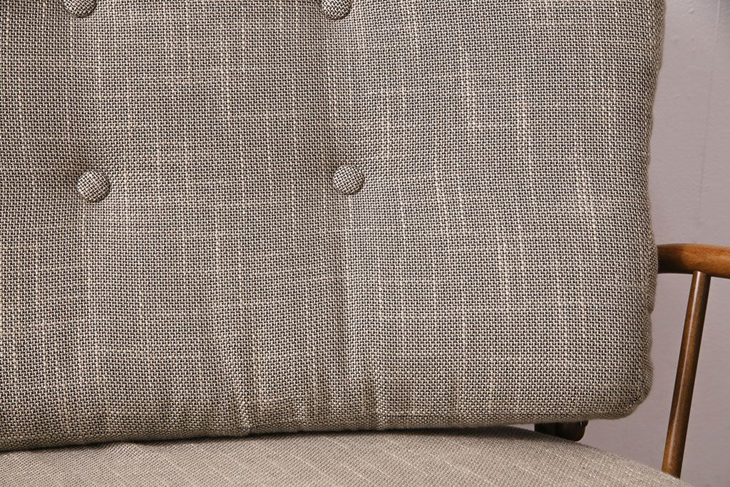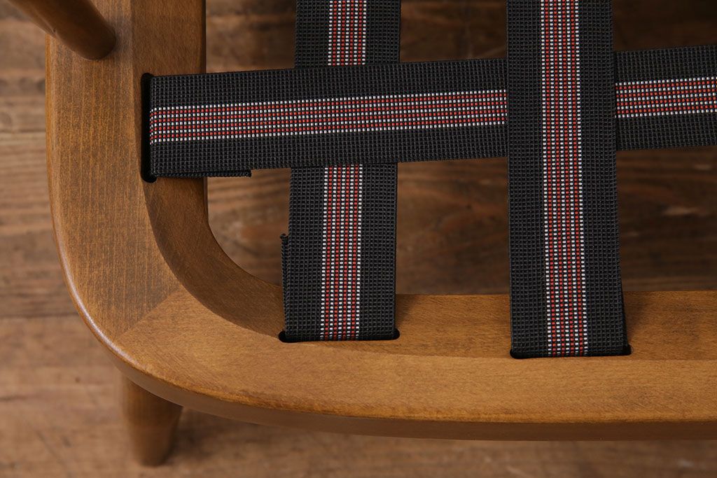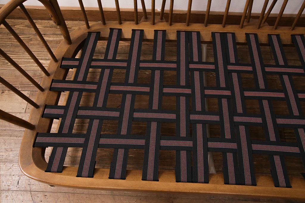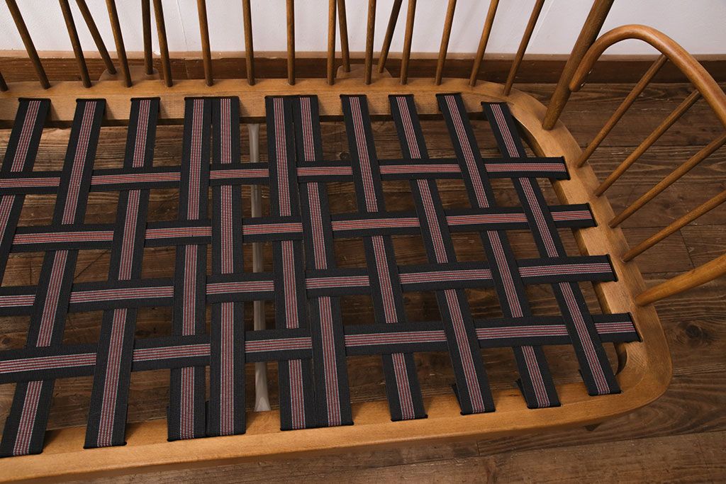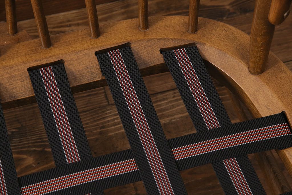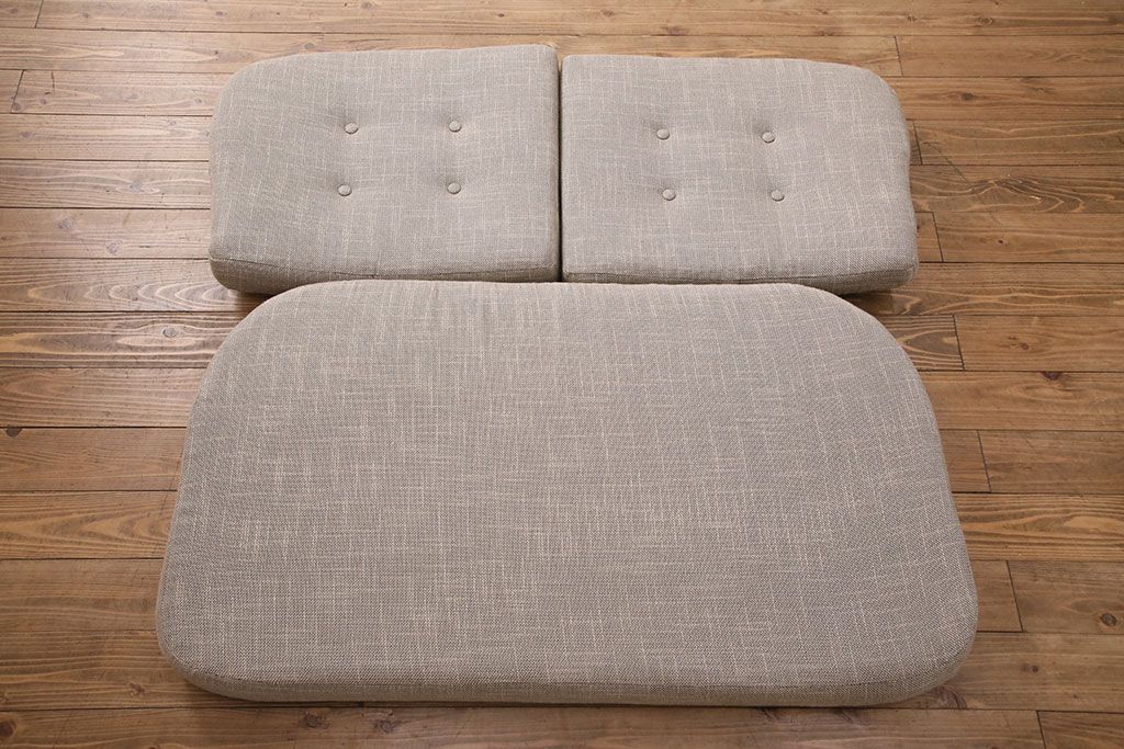 座面生地とクッション(座面内スポンジ)は当店にて張り替えておりますので、しっかりとしております。